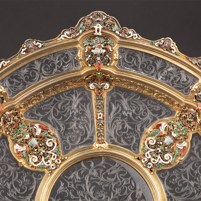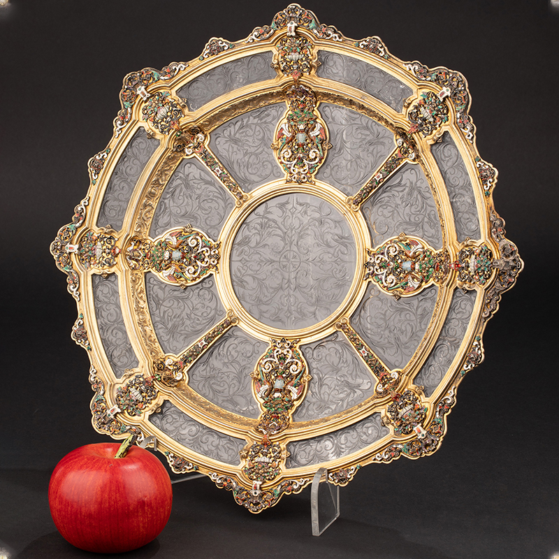 1870年代奥地利出品新文艺复兴风格天然水晶蚀刻嵌珐琅及银镀金装饰赏盘
