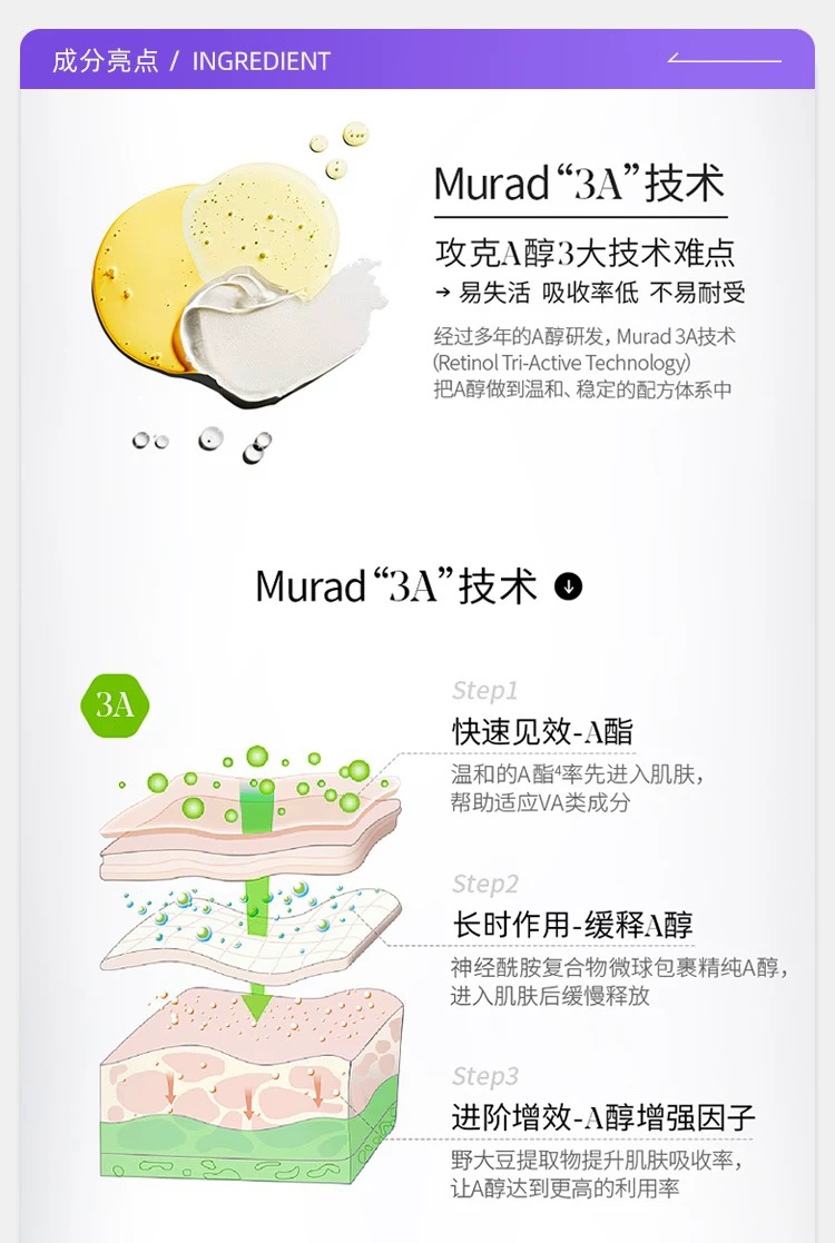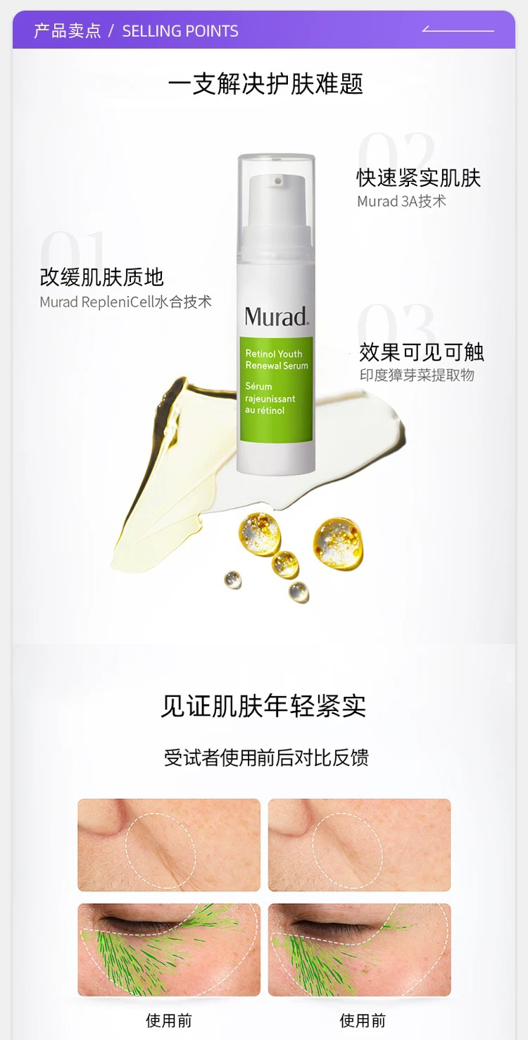 【专柜小样】美国 Murad慕拉得 a醇紧致3A视黄醇面部精华(细纹-平滑-紧致 三重黑科技)5ml