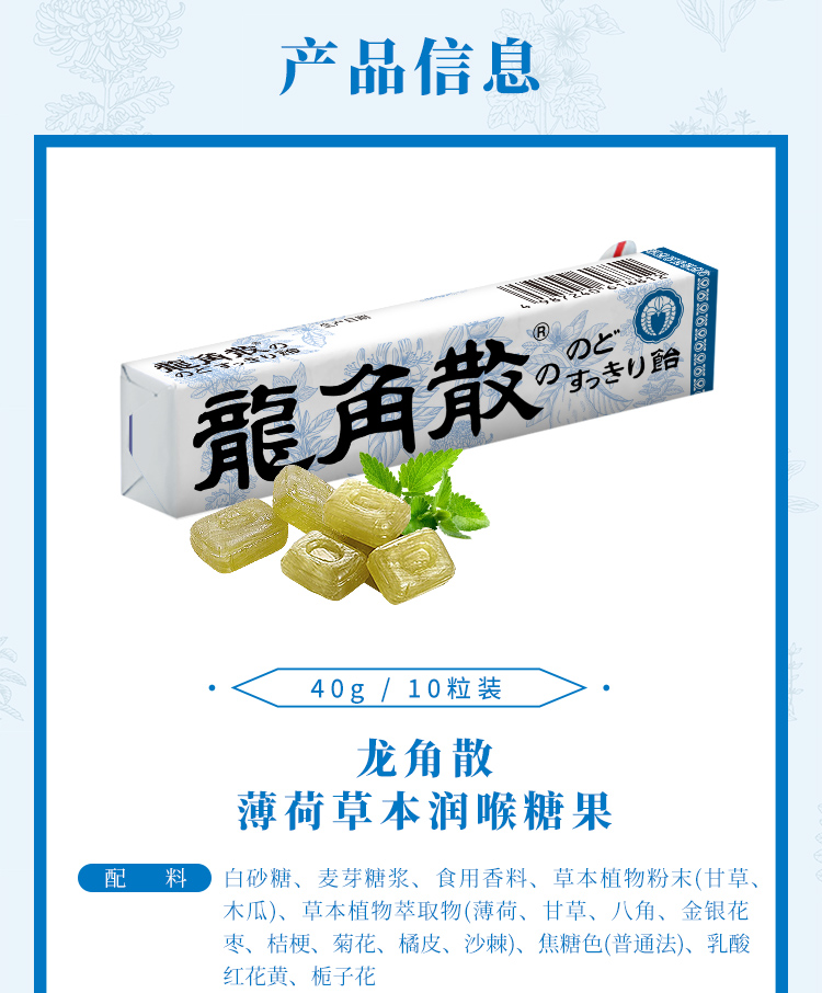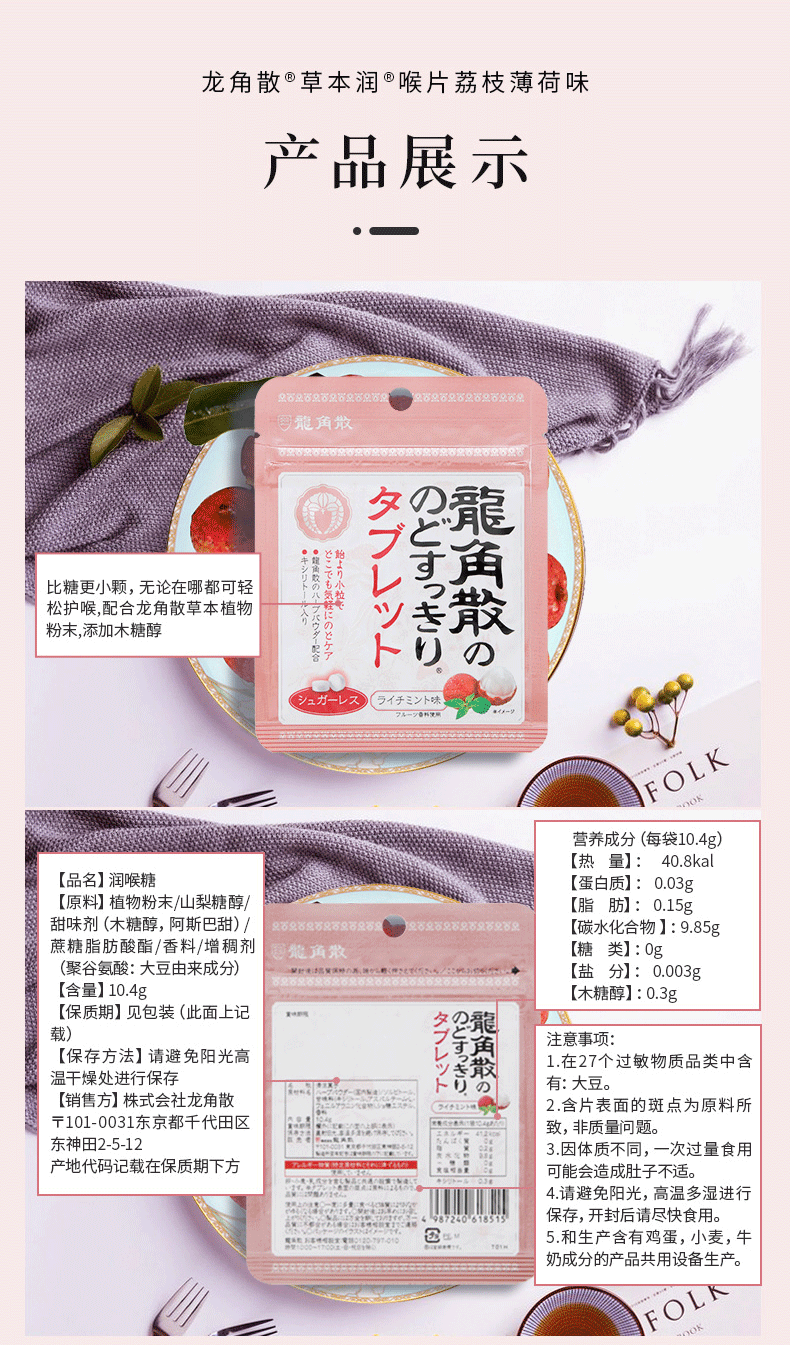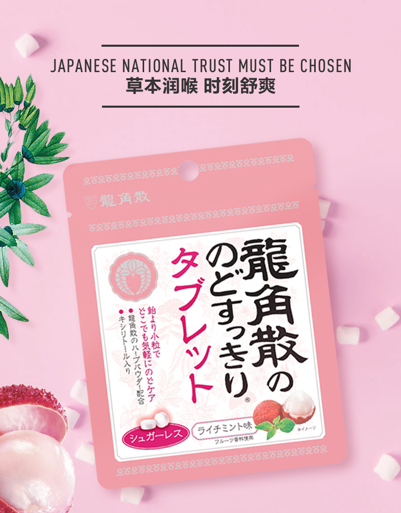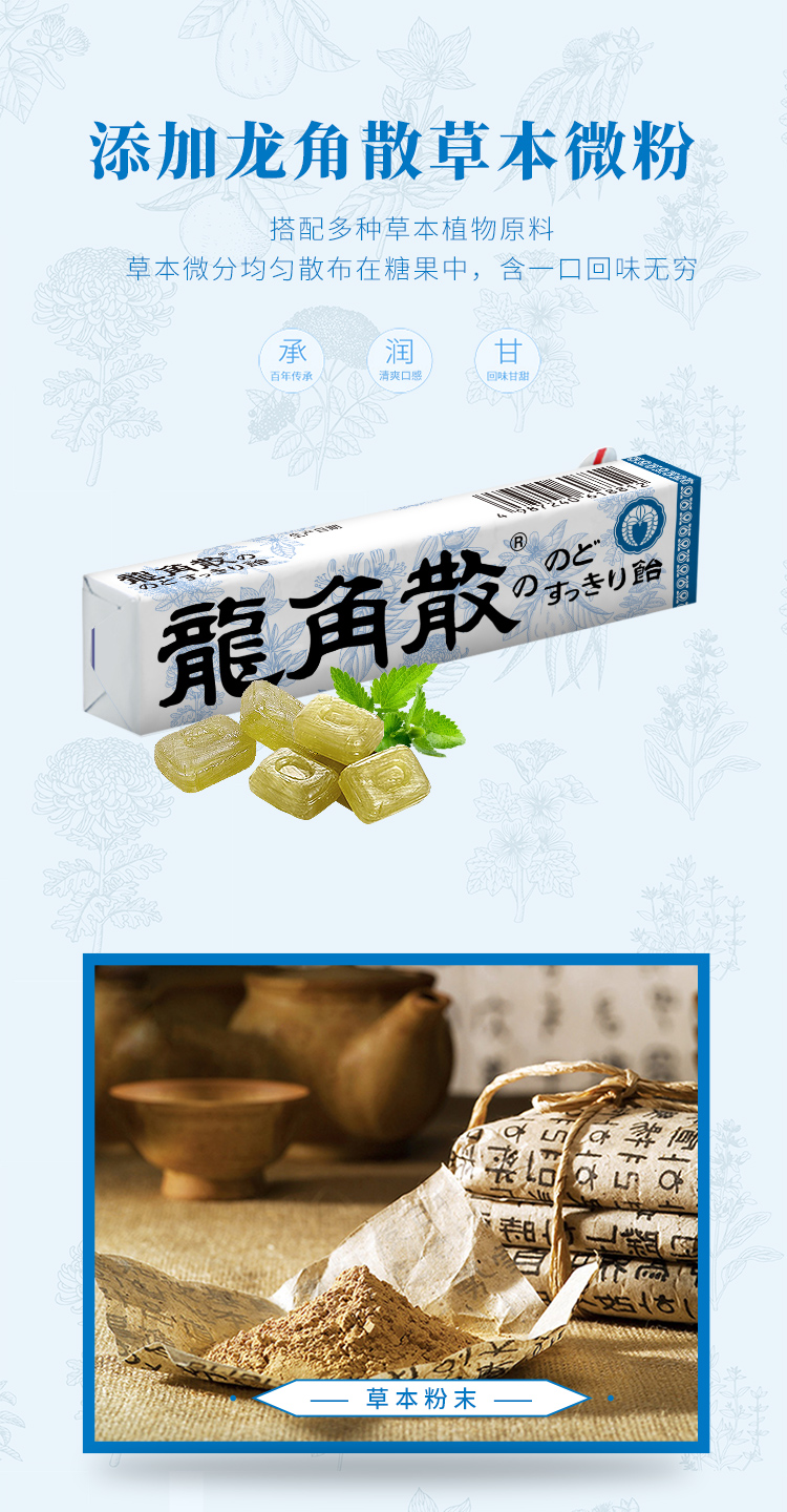龙角散白桃味粉末夹心润喉糖80g