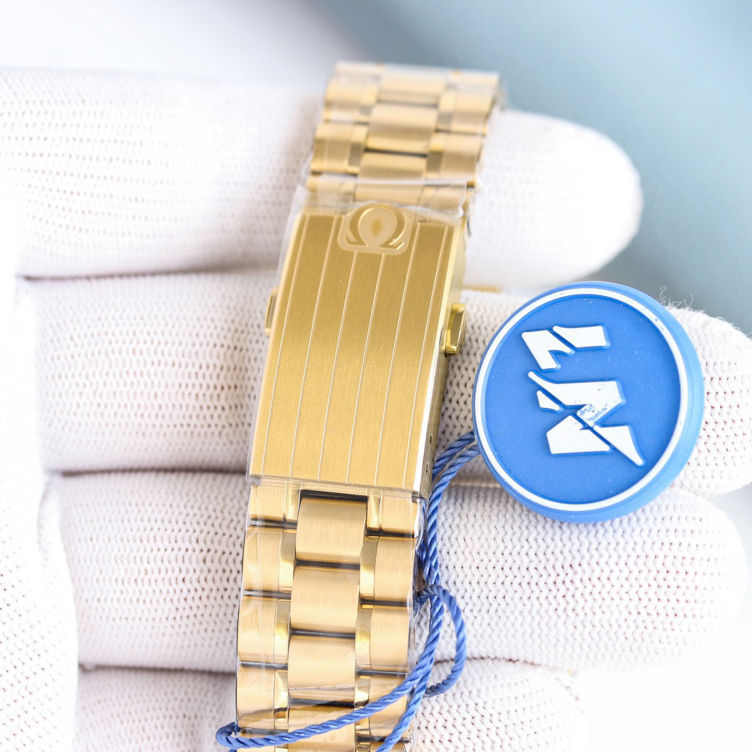 The speedometer scale on the ceramic bezel is made of OMEGA Ceramic technology and features the "Dot Over Ninety" (DON, with a 90 degree dot above the number) logo of early Superb models. After polishing treatment, it adopts a double slope design style and is engraved with the words "THE FIRST WATCH WORN ON THE MOON" and "CO-AXIAL MASTER CHRONOMETER". Through the flat sapphire glass back, one can appreciate the exquisite operation of the 3861 Ultimate Observatory movement.