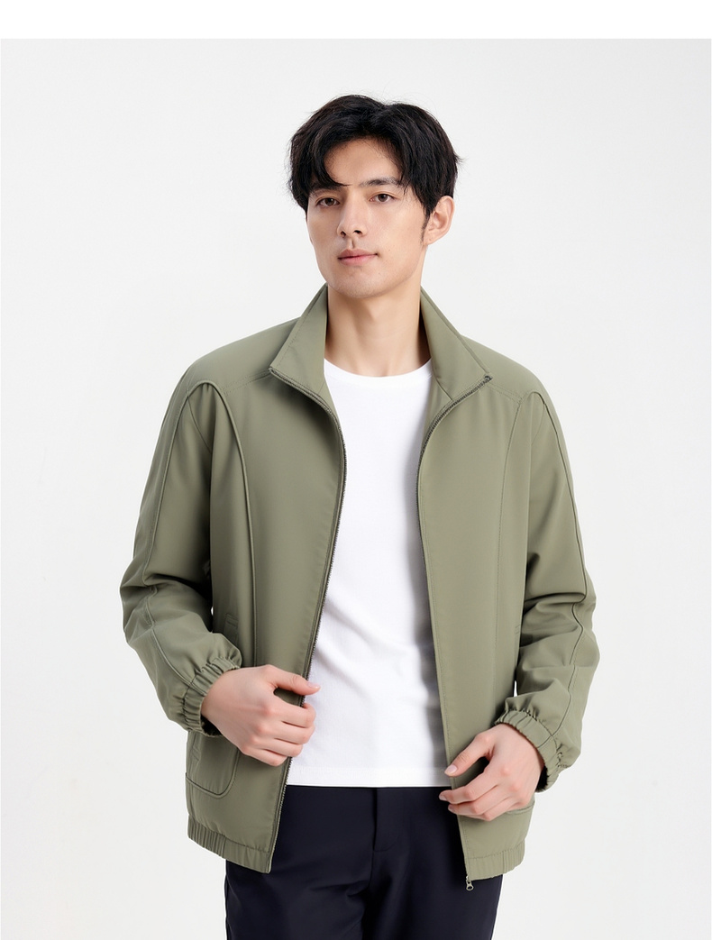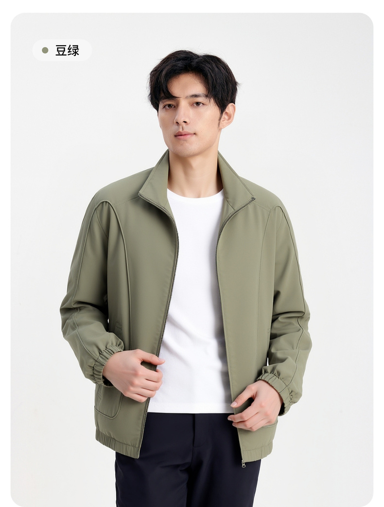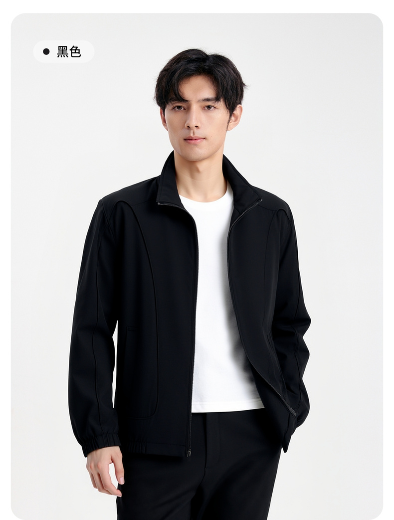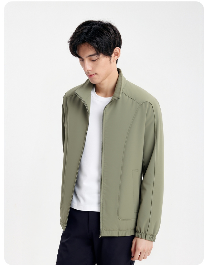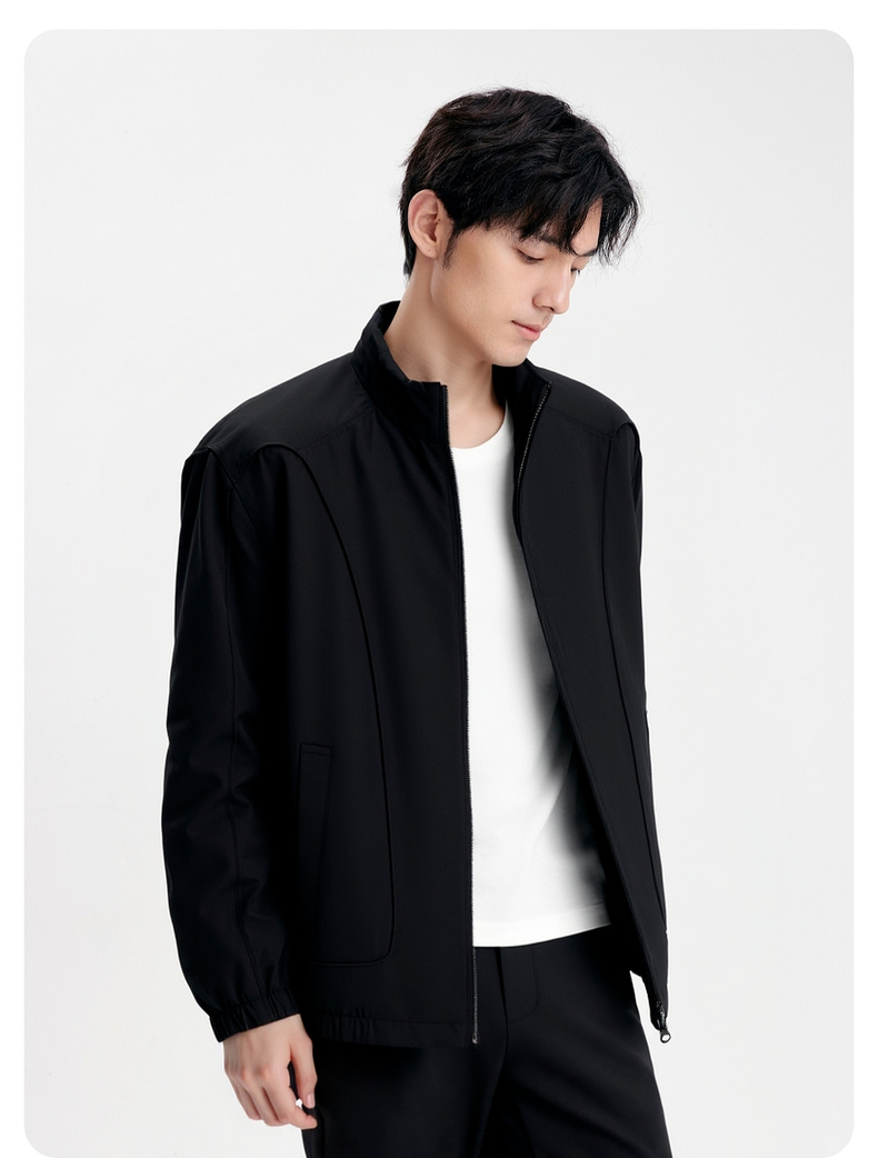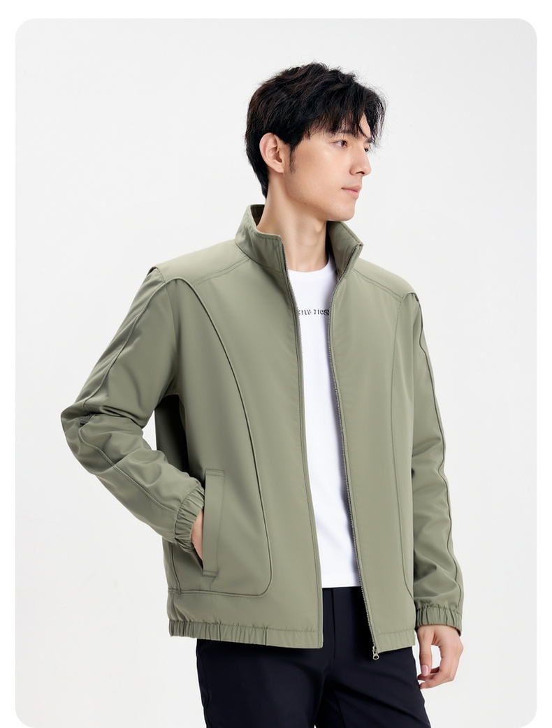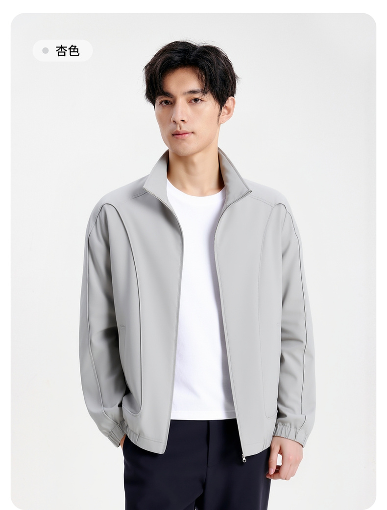 圣得西男士落肩立领夹克2025年秋季新款易打理几何拼接休闲外套