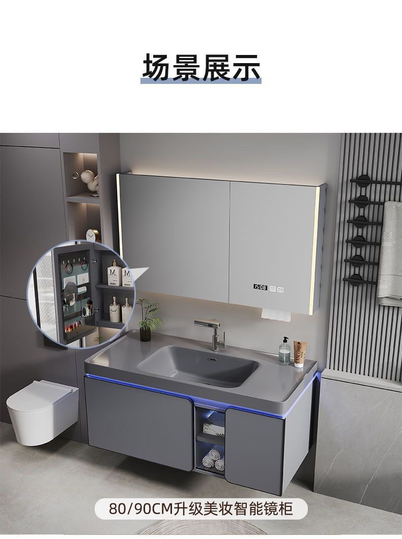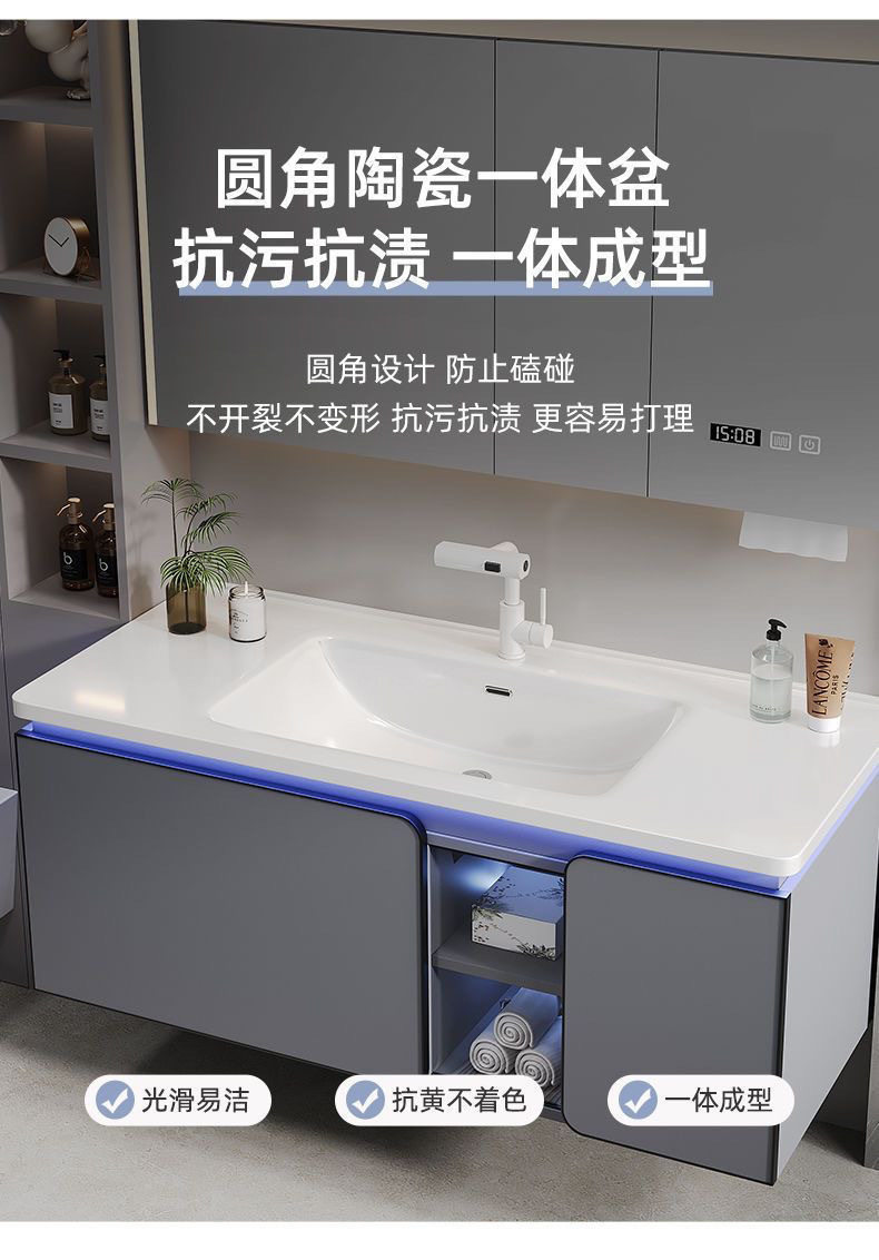 柜组合洗脸盆洗漱卫生间智能台陶瓷一体盆浴室柜新款