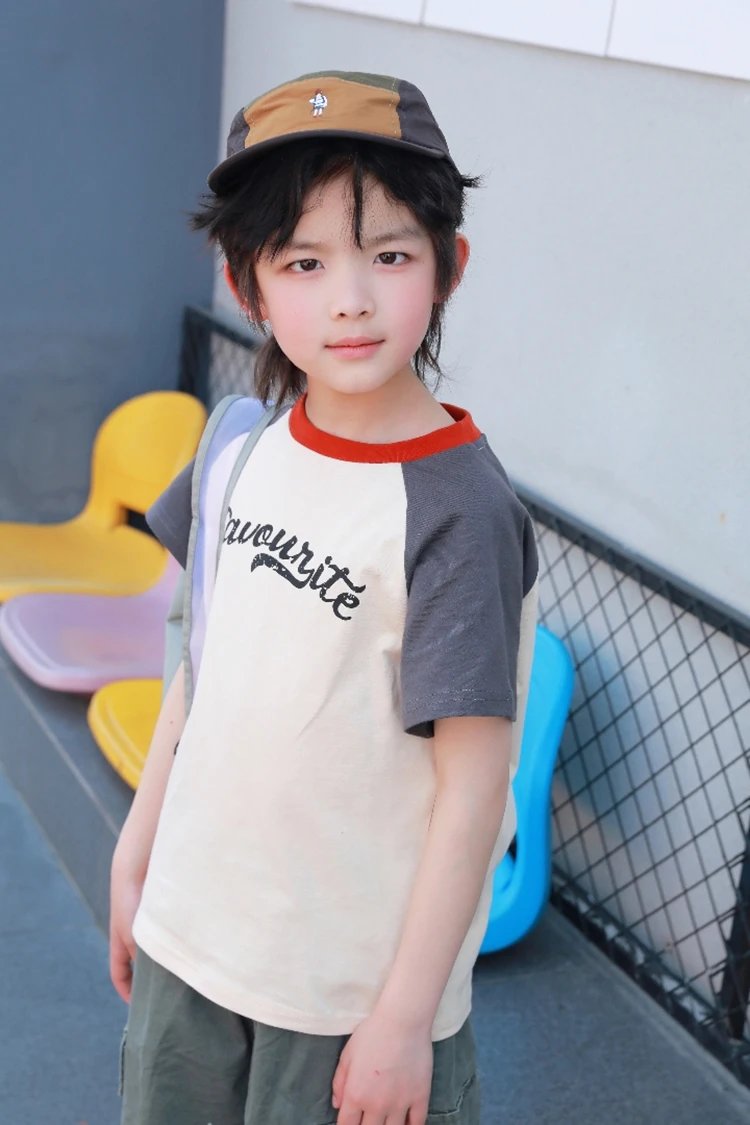 【品名】活力撞色儿童夏日短T