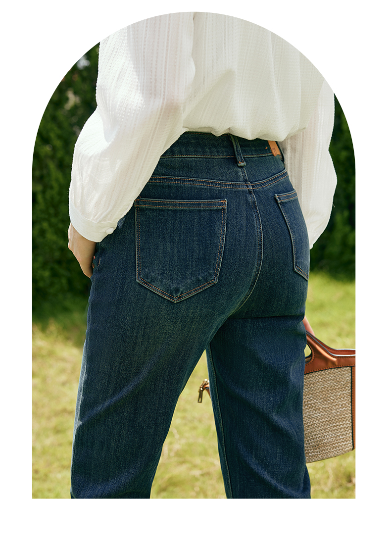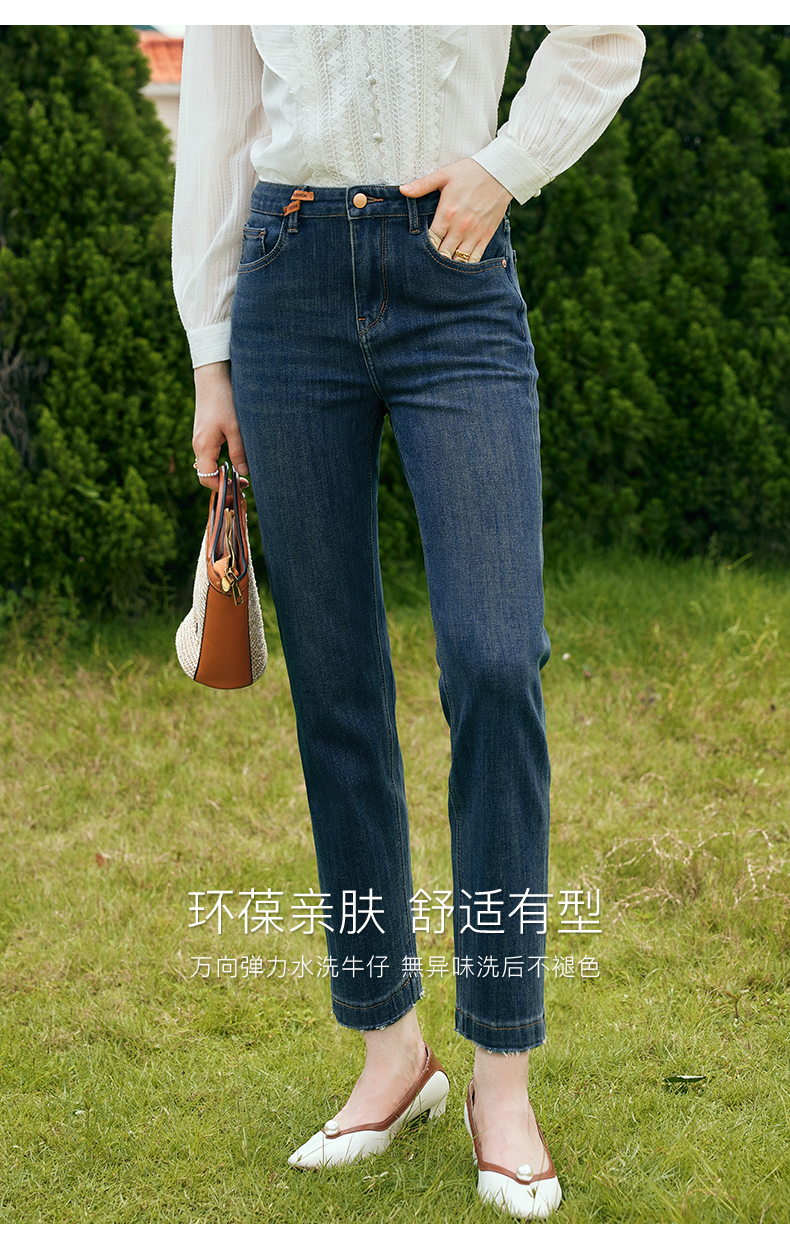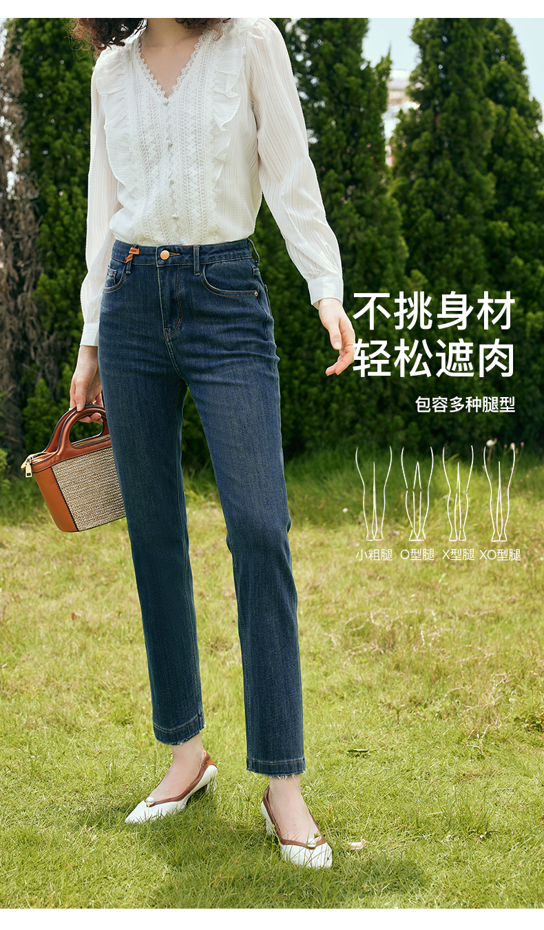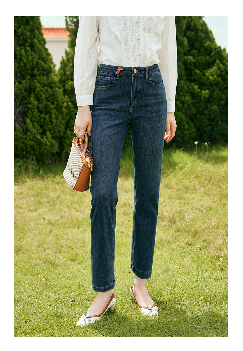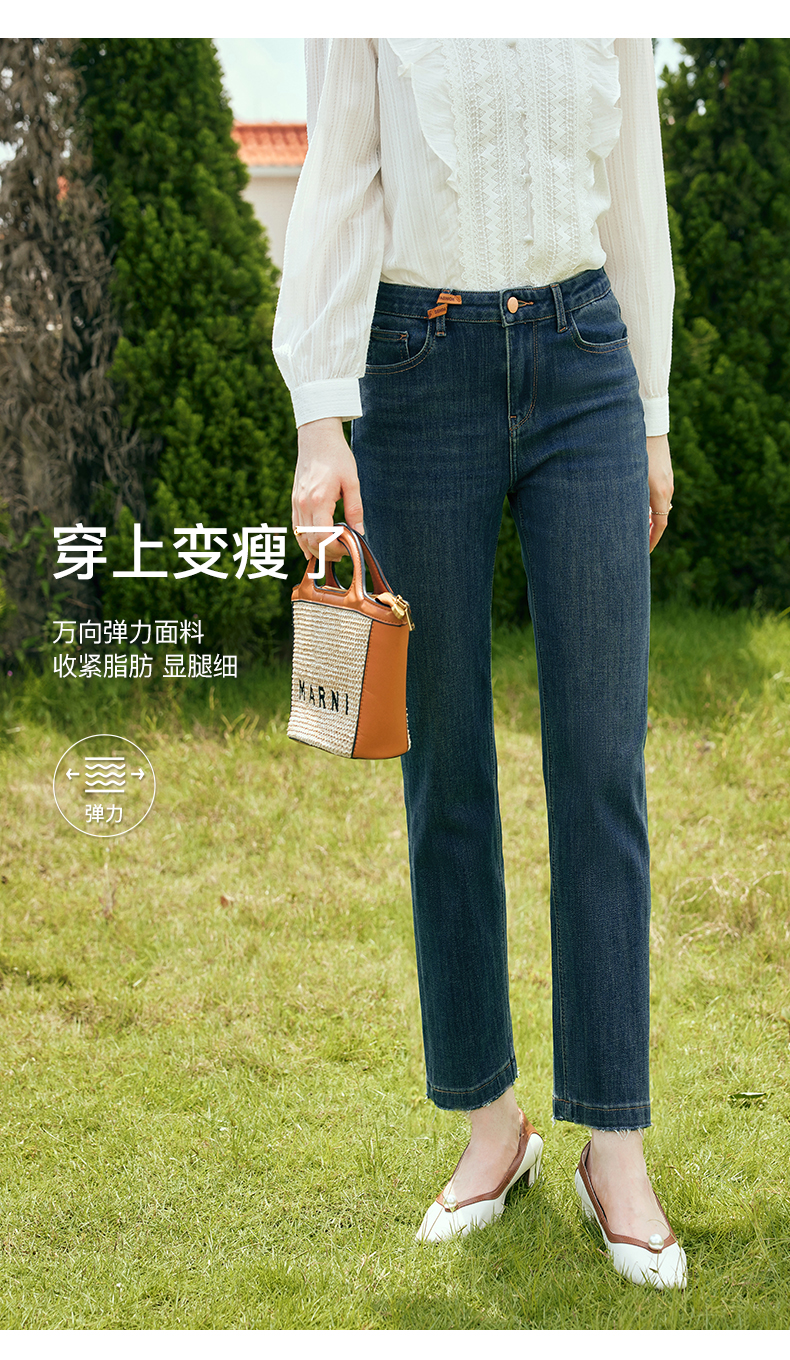 OLrain欧芮儿深色直筒牛仔裤女初秋2023年新款高腰显瘦百搭九分裤