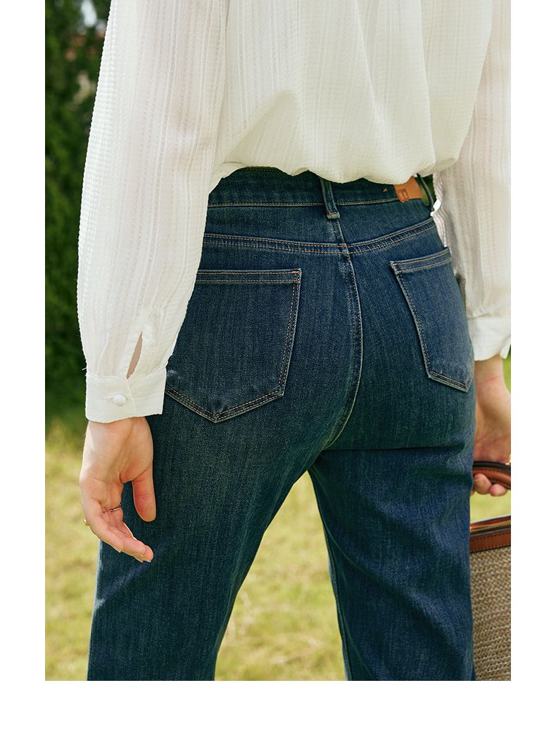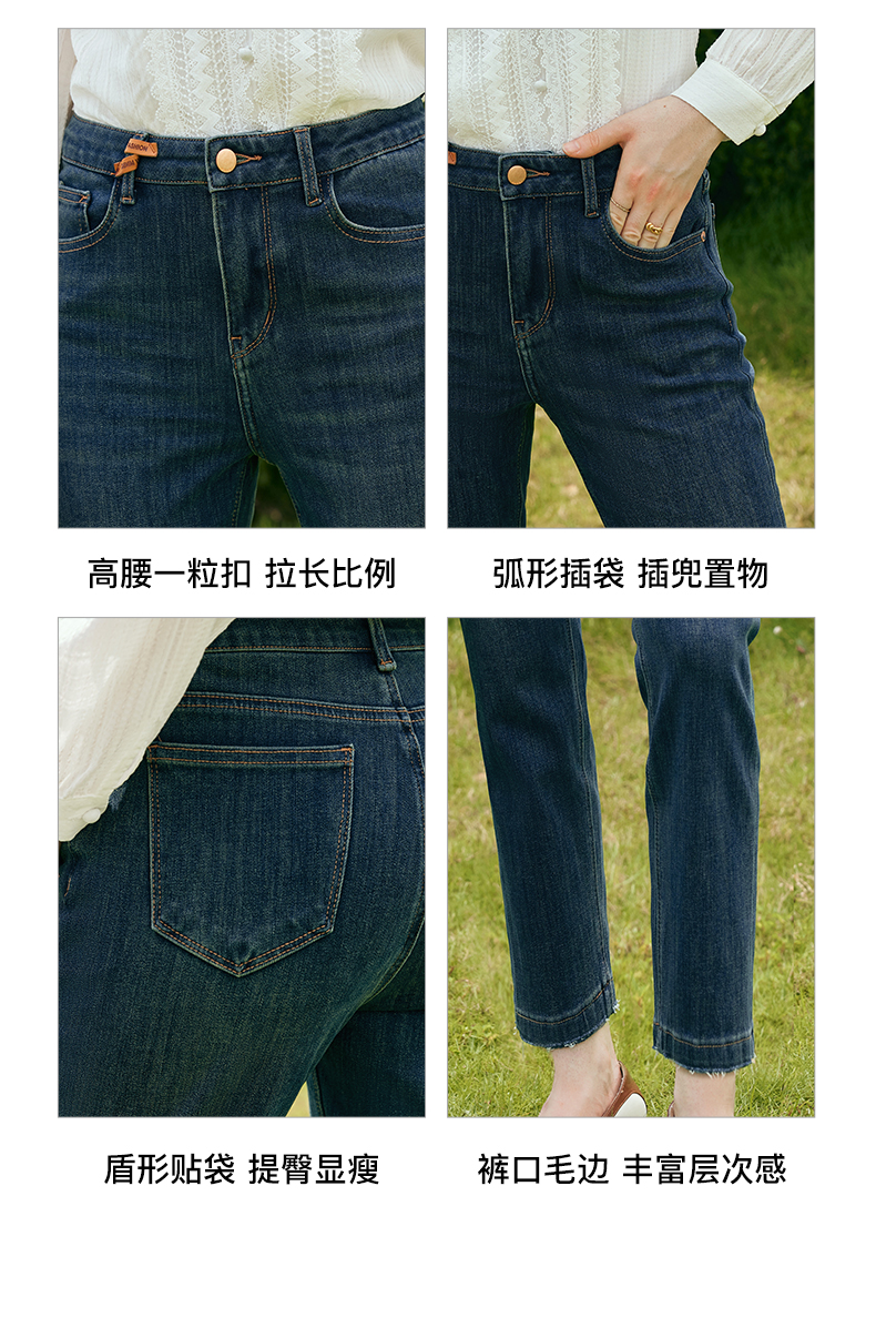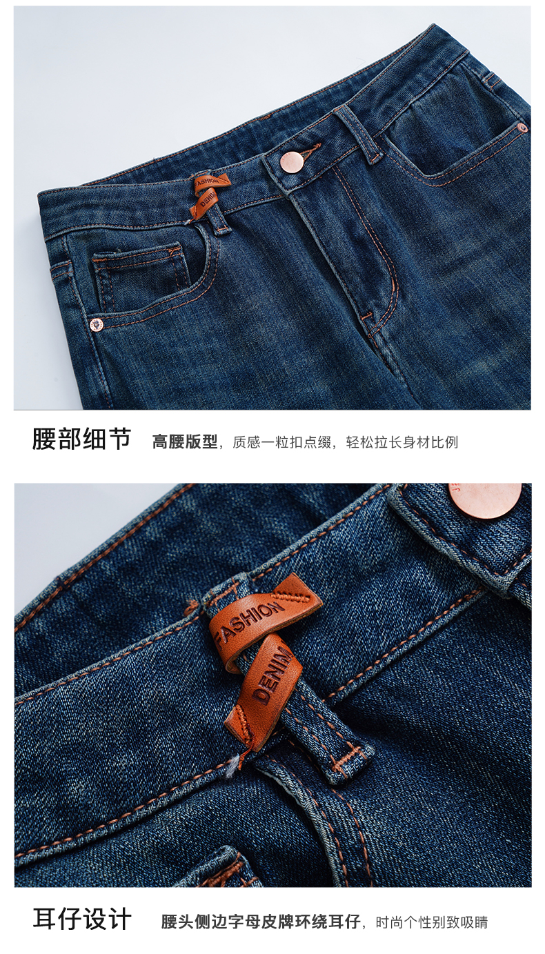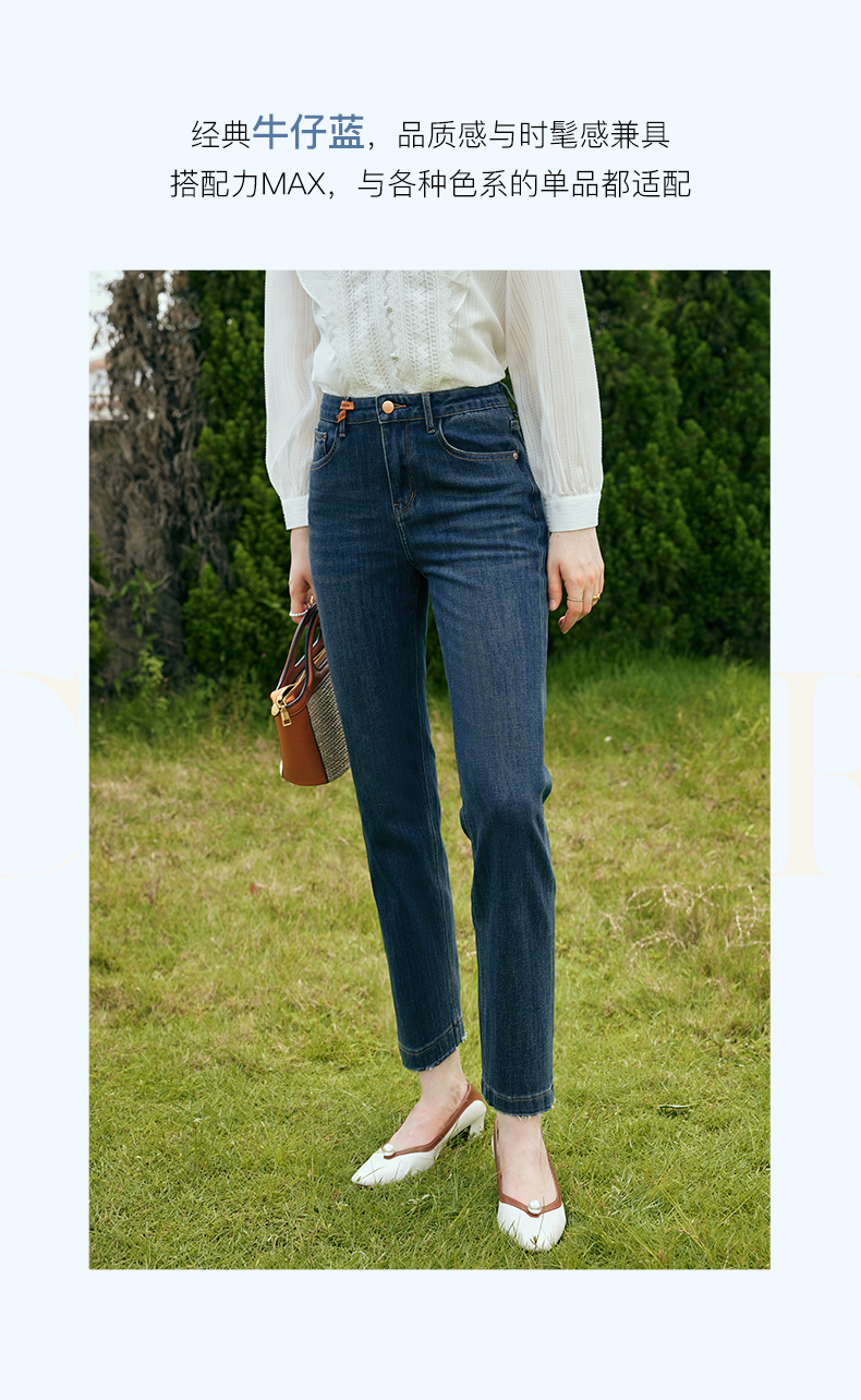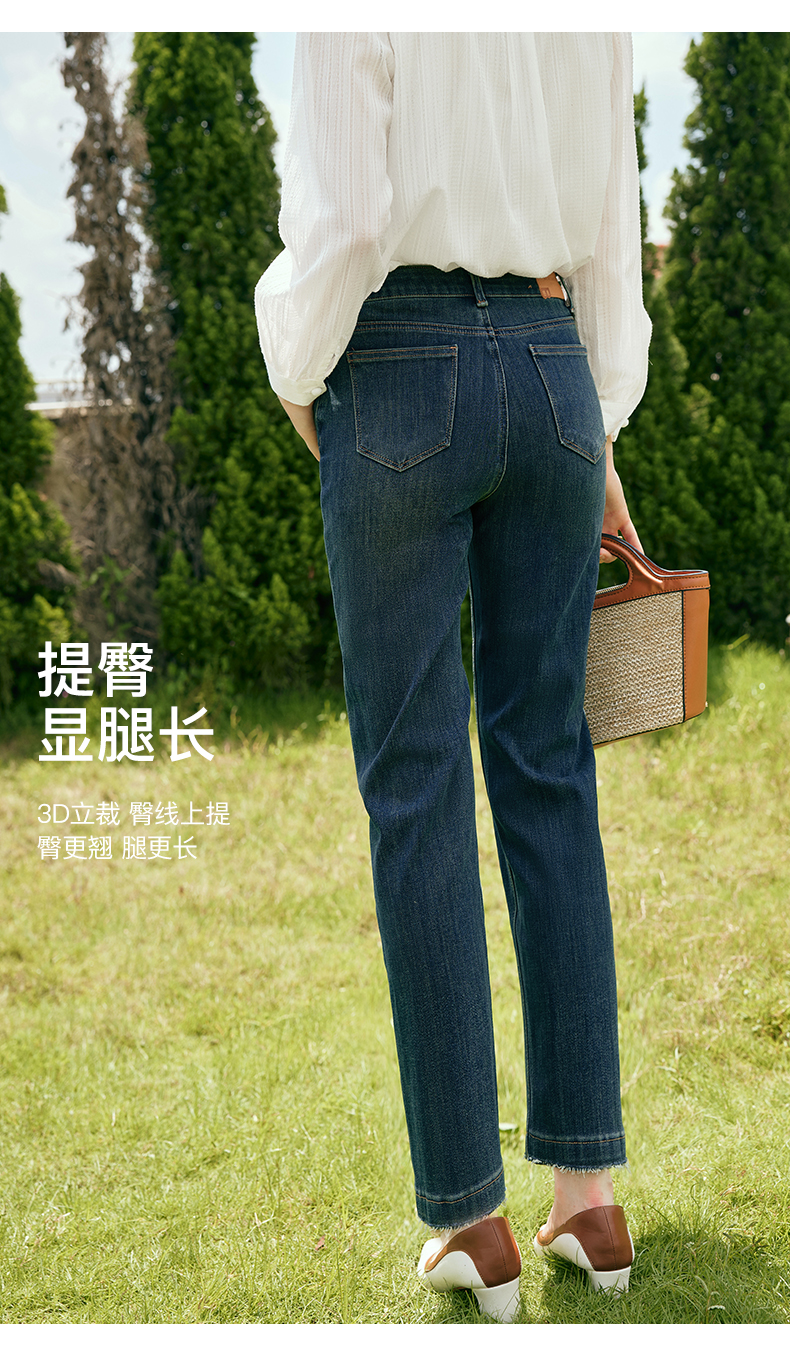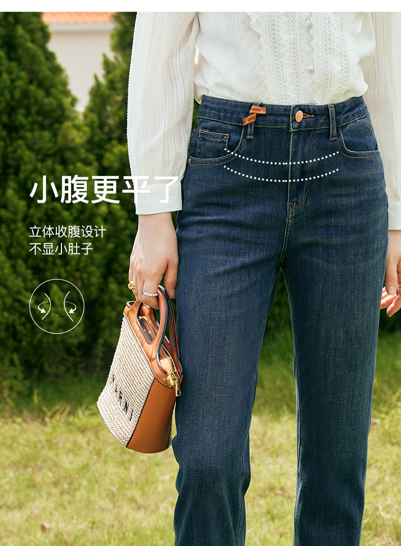 OLrain欧芮儿深色直筒牛仔裤女初秋2023年新款高腰显瘦百搭九分裤