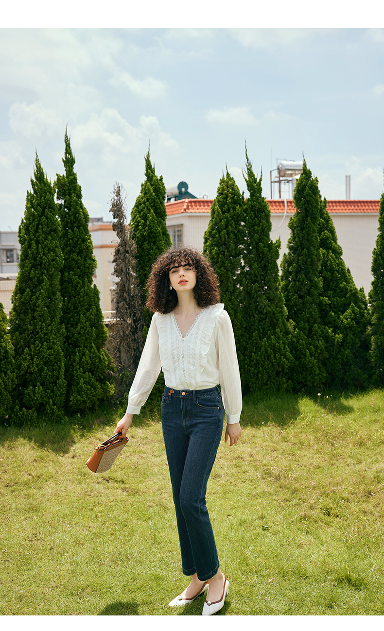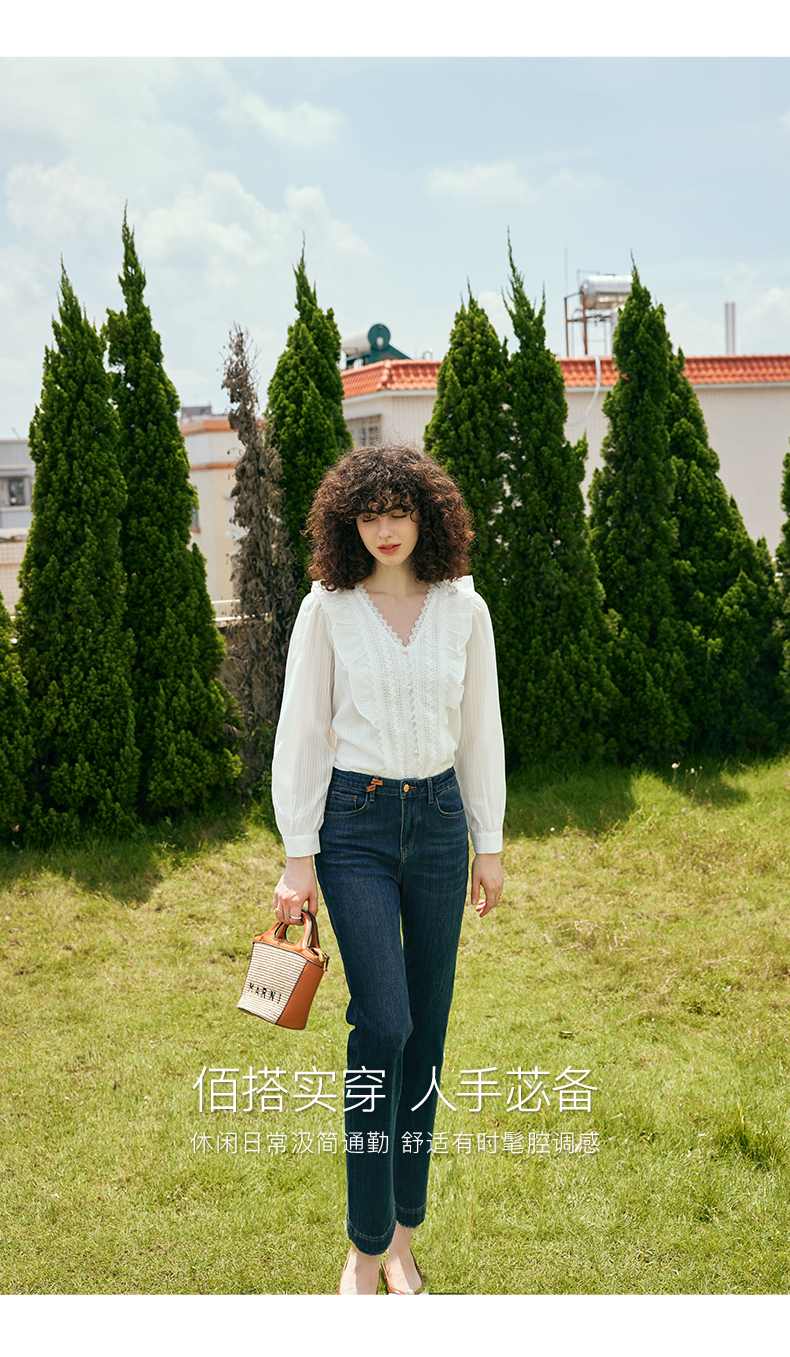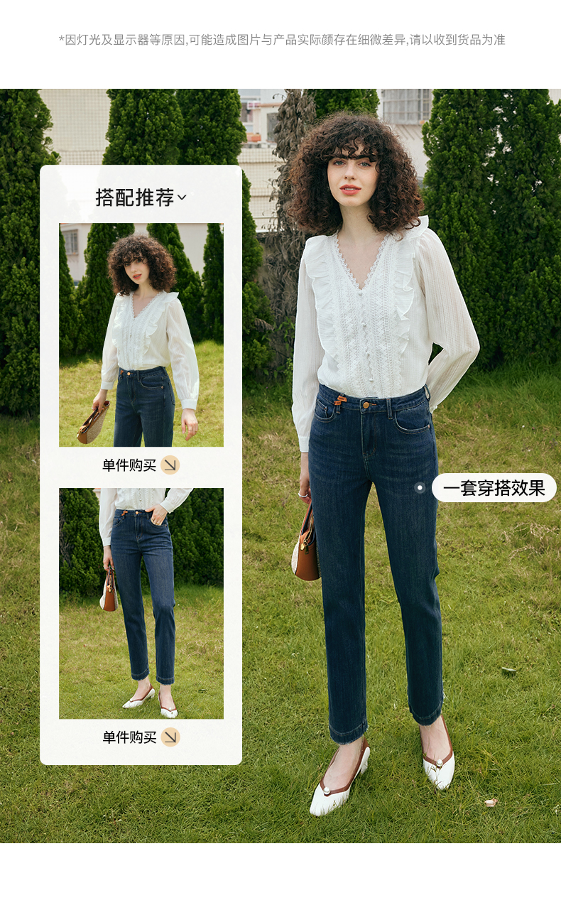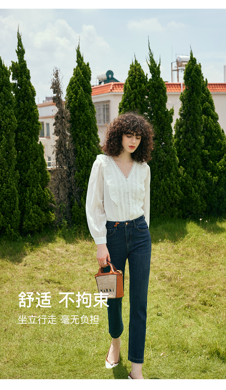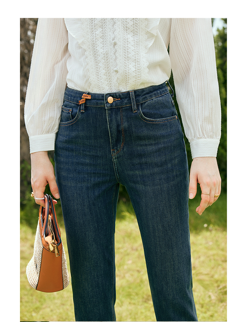 OLrain欧芮儿深色直筒牛仔裤女初秋2023年新款高腰显瘦百搭九分裤