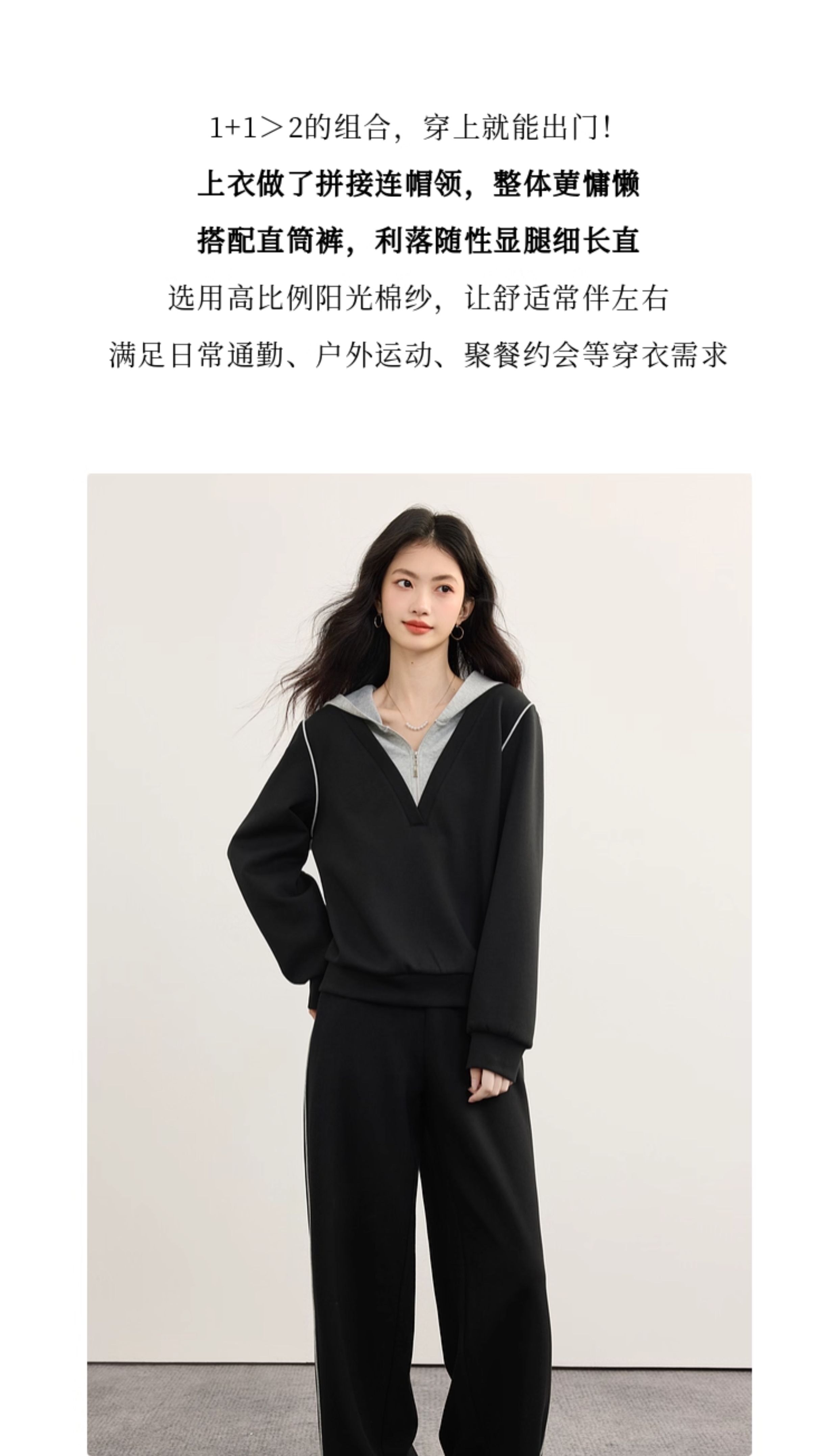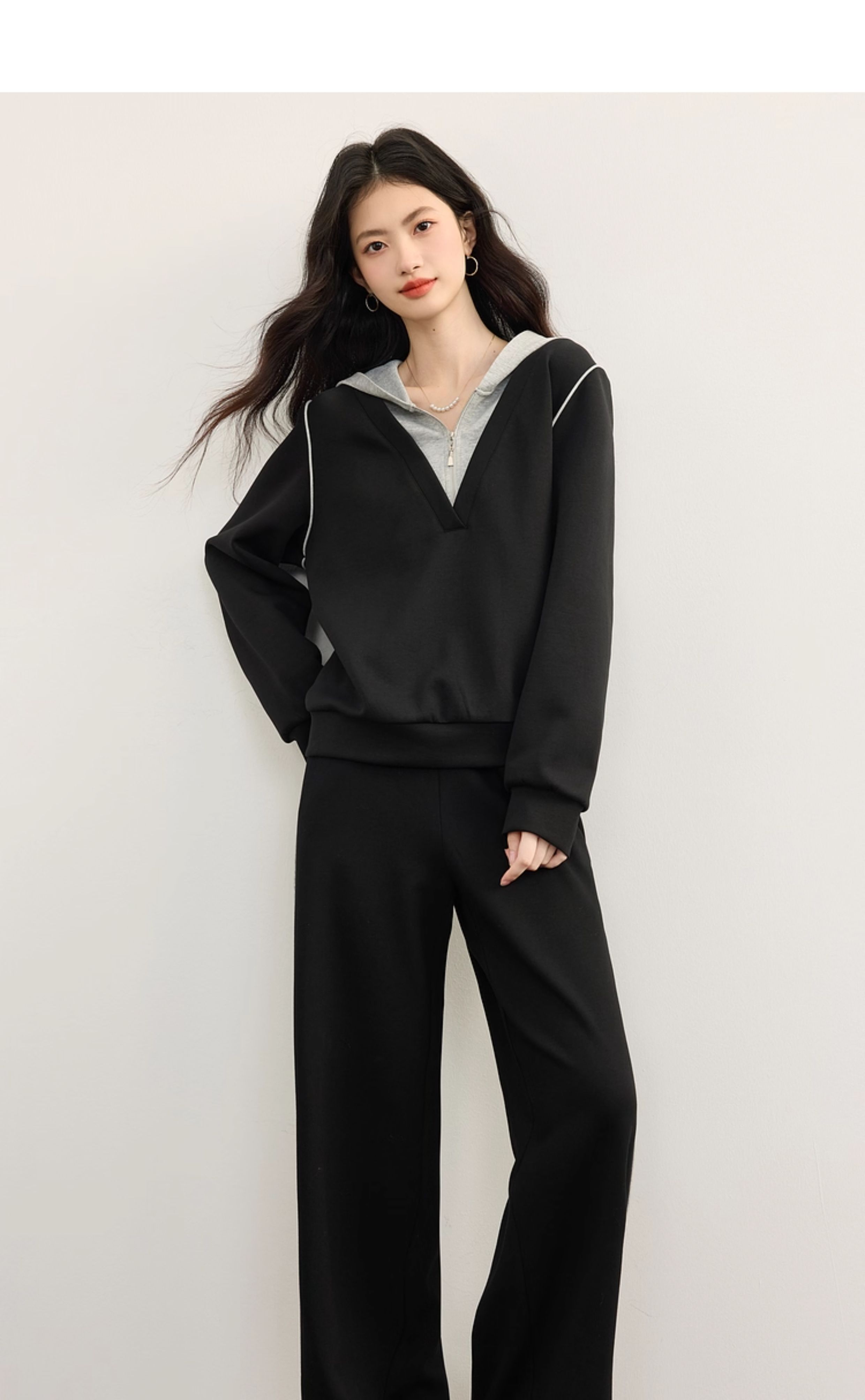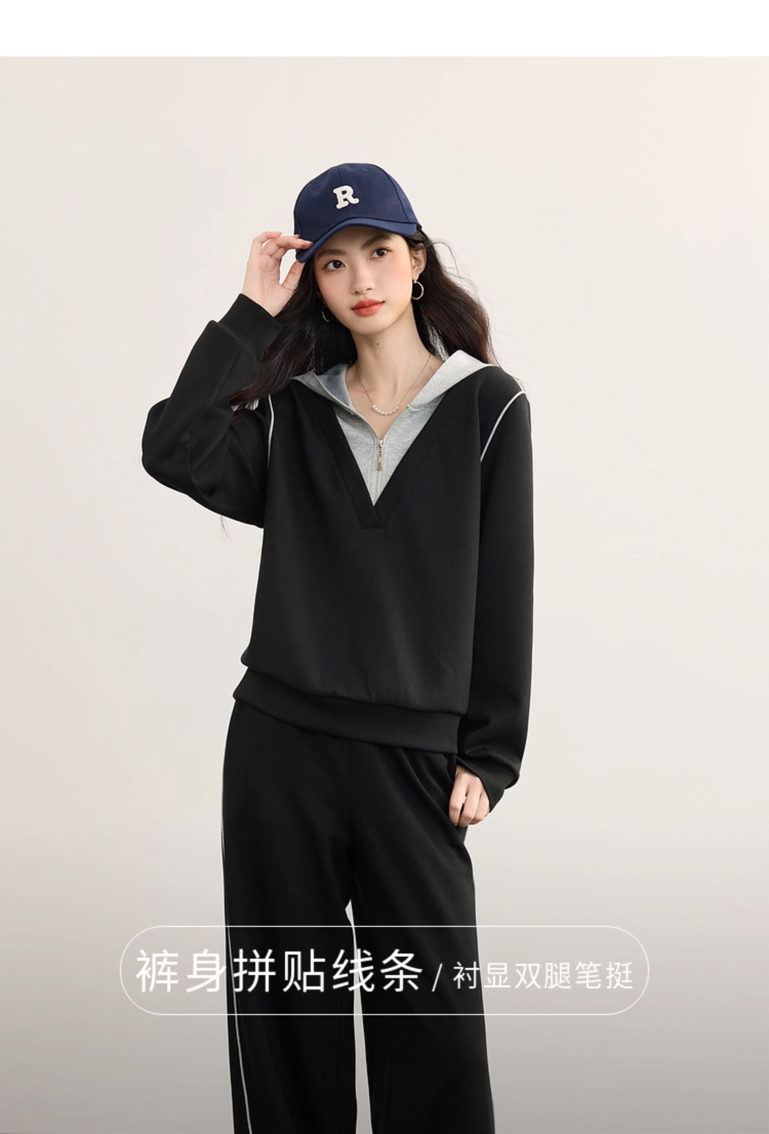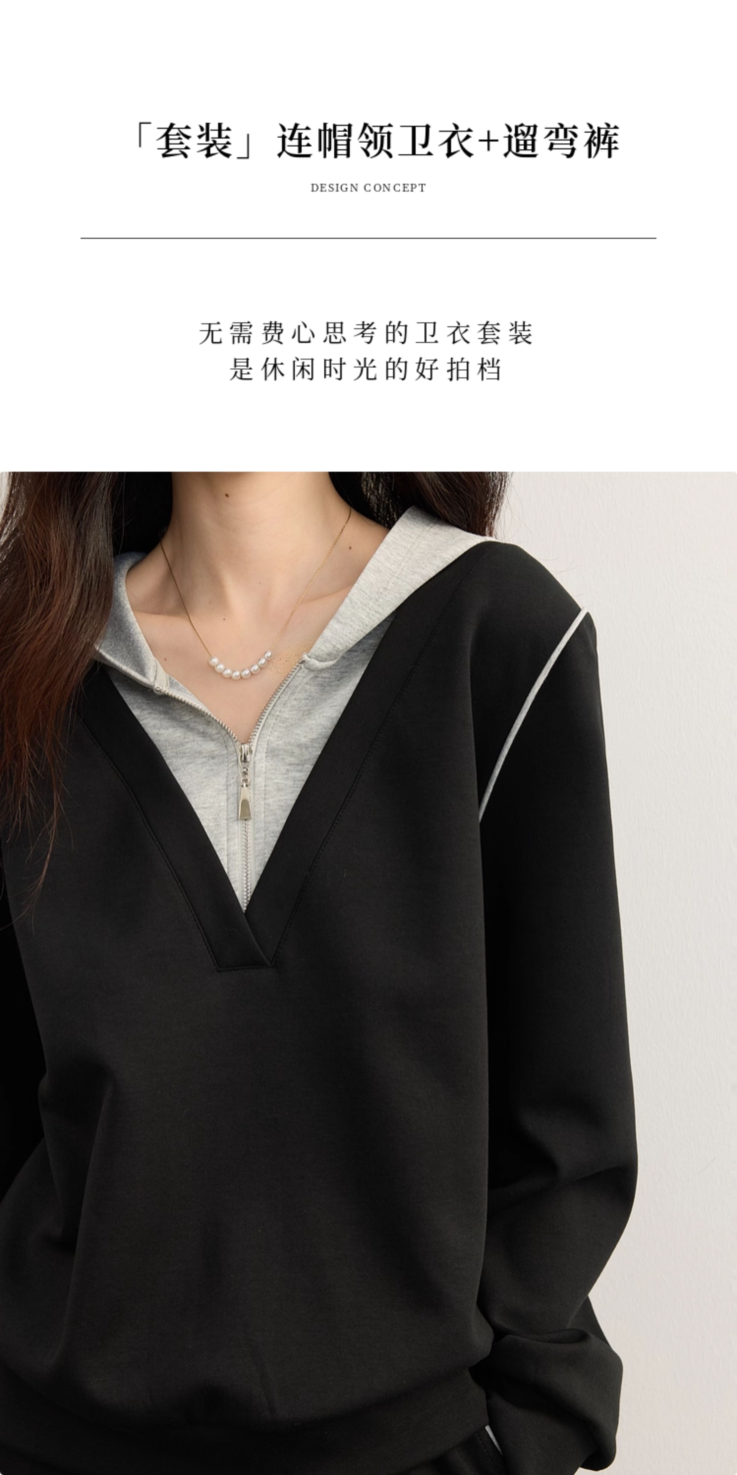 【09/17新品】熙世界懒人休闲套装女2025秋季新款运动风连帽卫衣阔腿长裤两件套