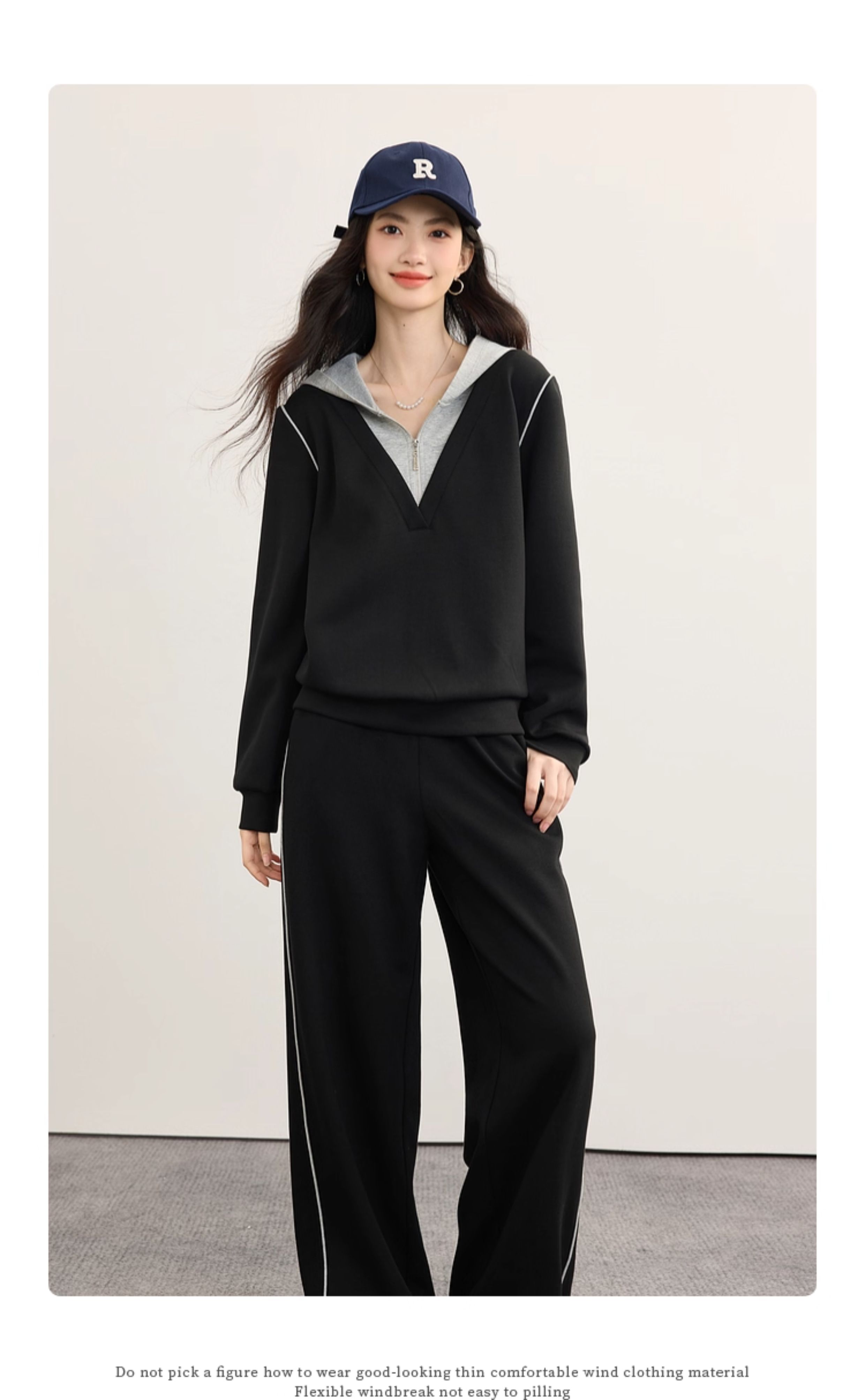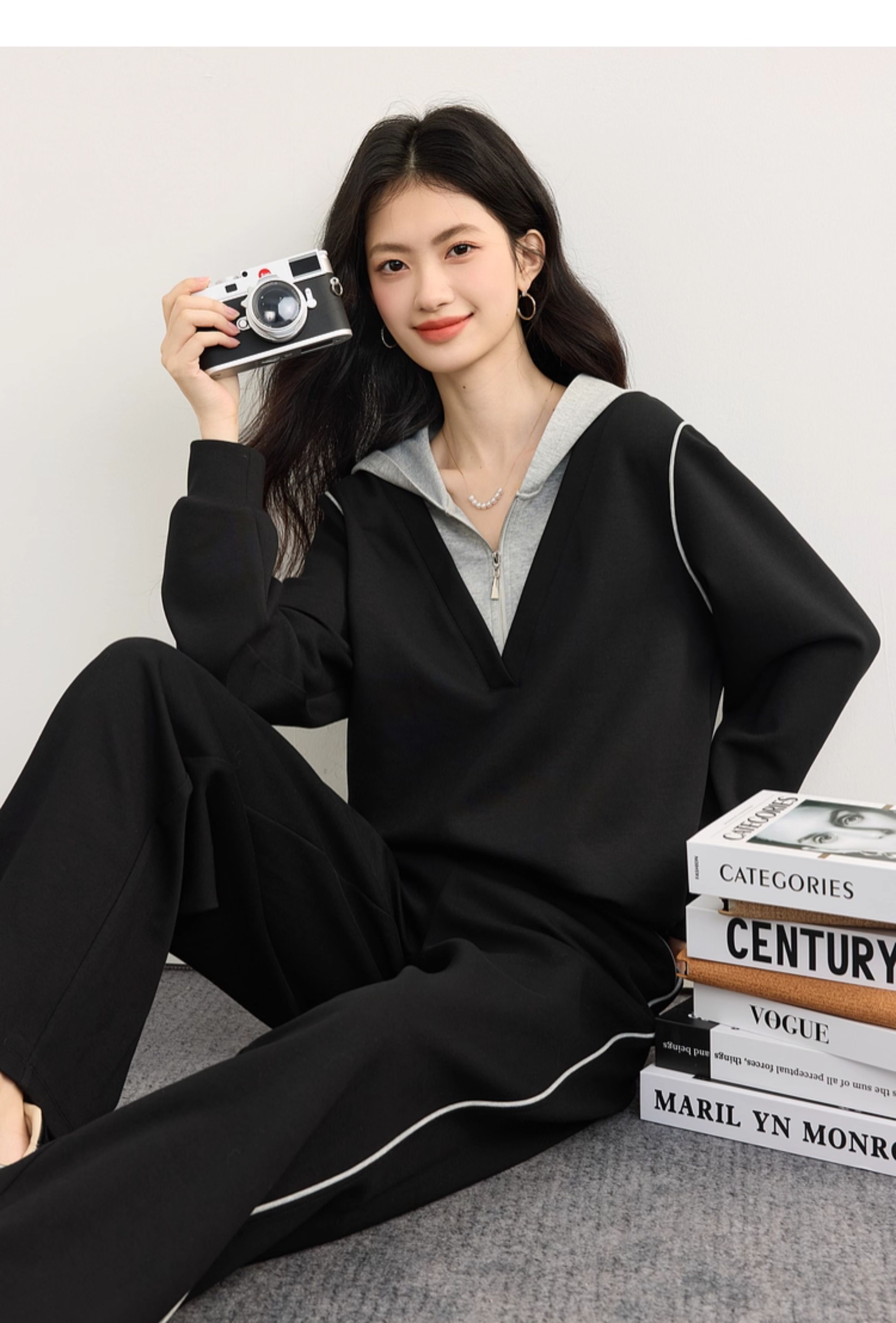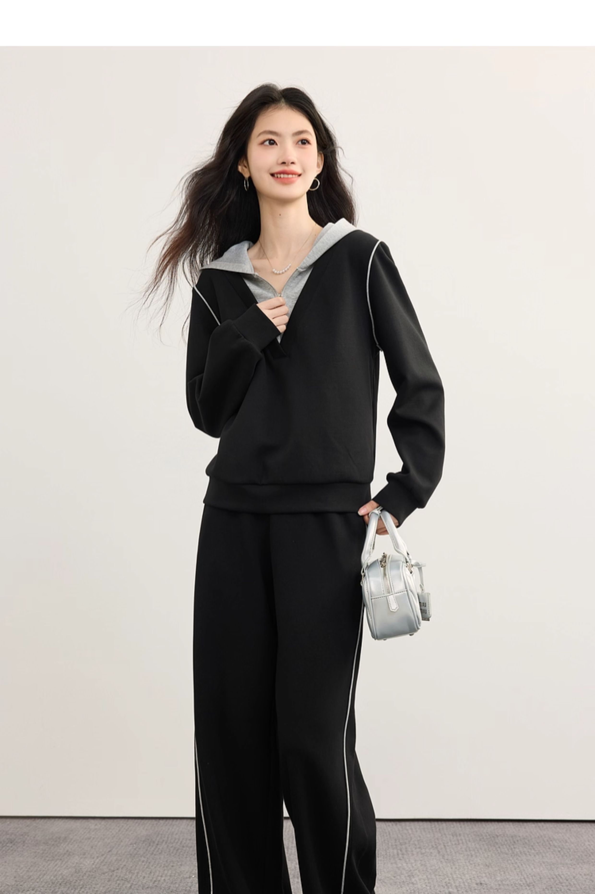 【09/17新品】熙世界懒人休闲套装女2025秋季新款运动风连帽卫衣阔腿长裤两件套