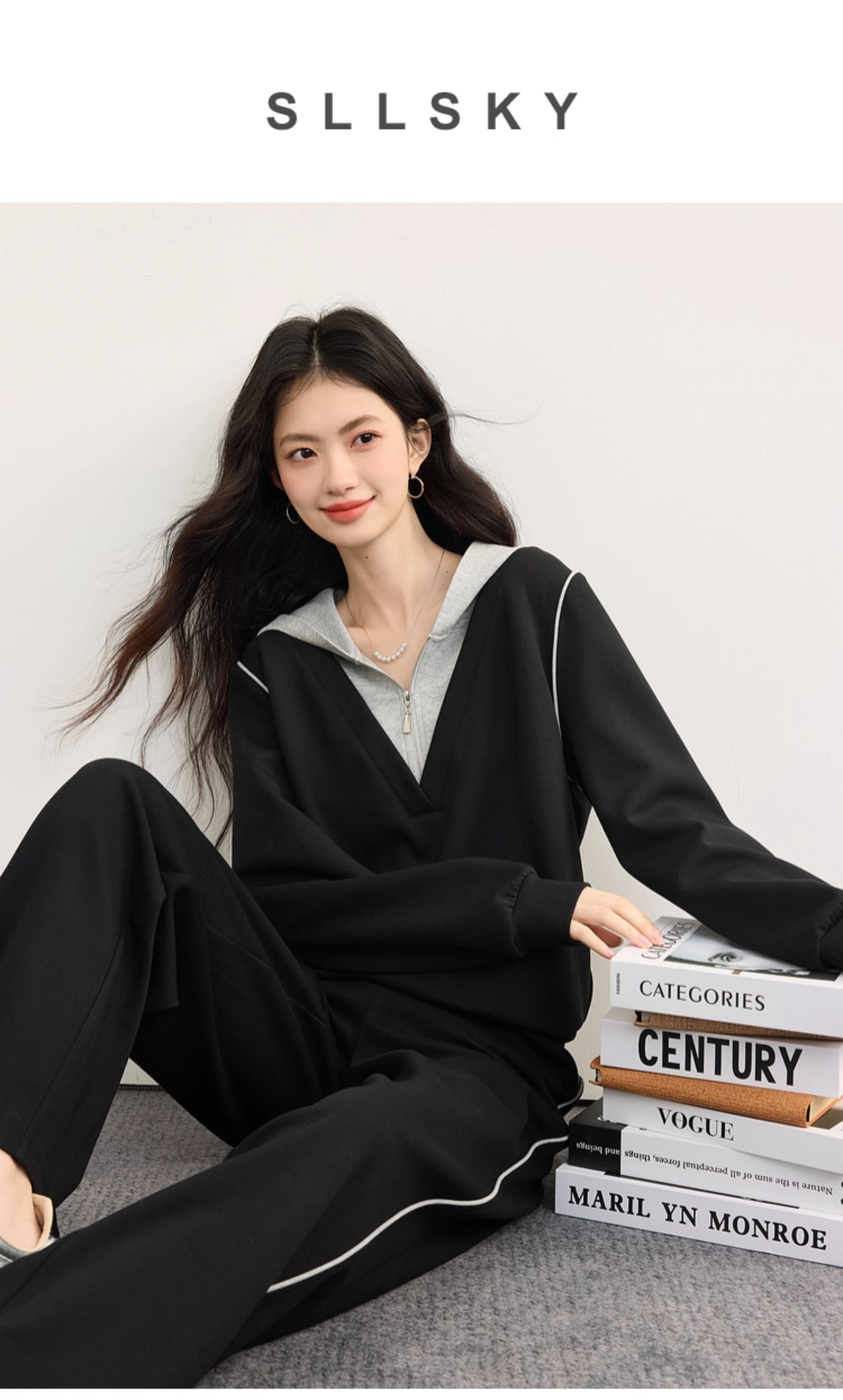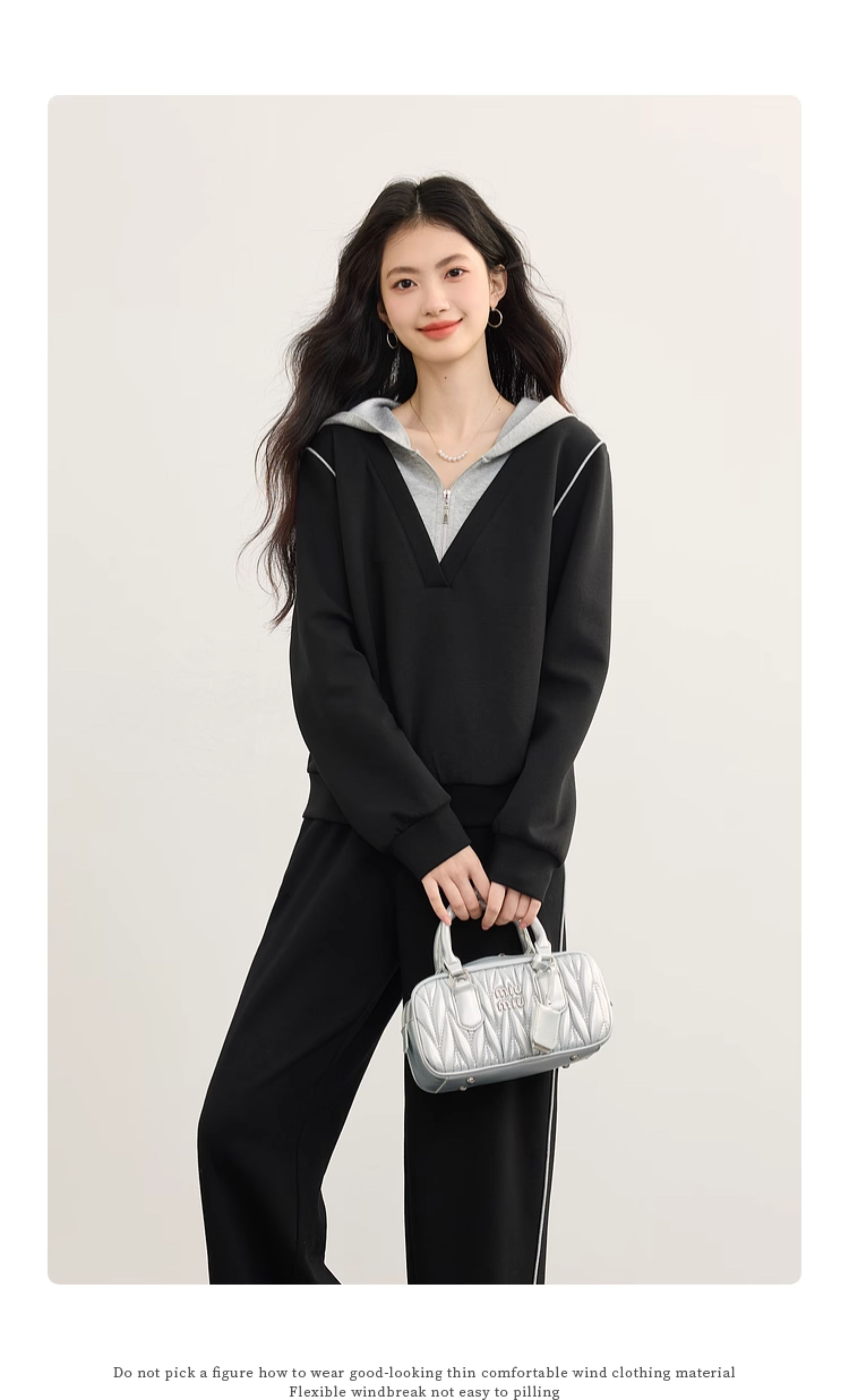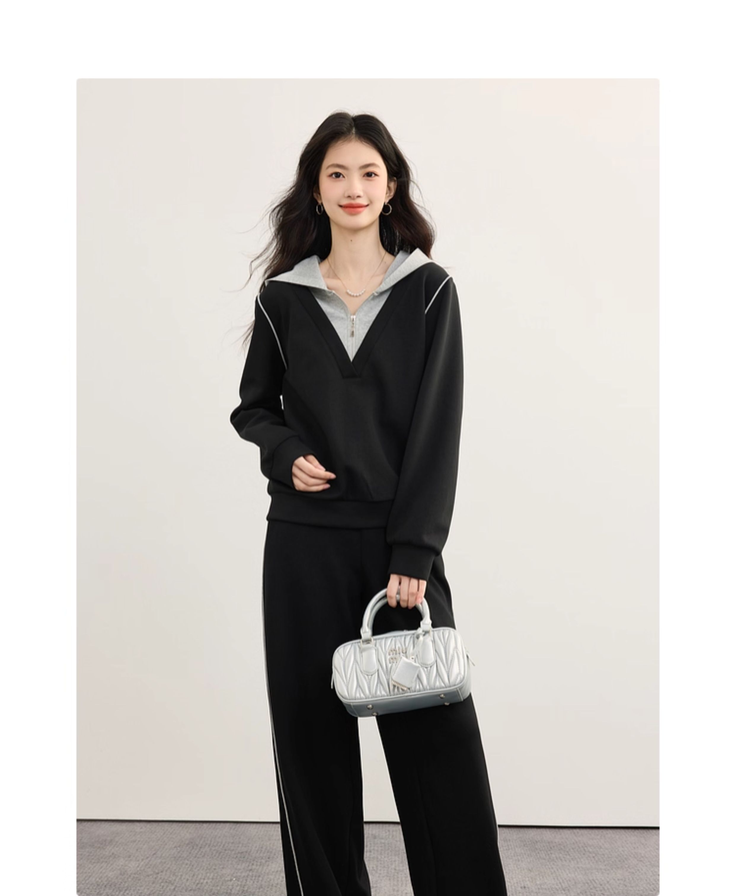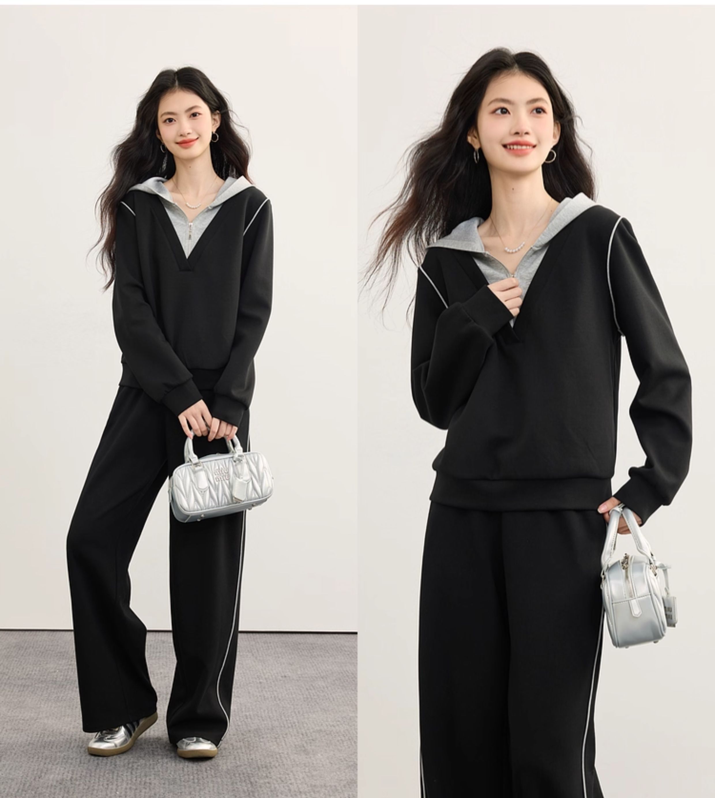 【09/17新品】熙世界懒人休闲套装女2025秋季新款运动风连帽卫衣阔腿长裤两件套