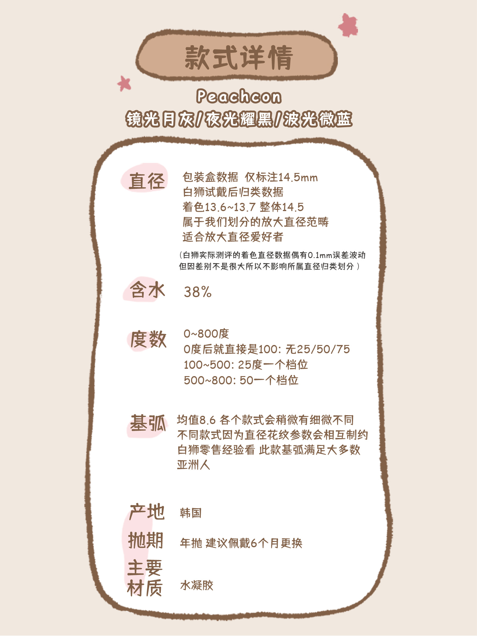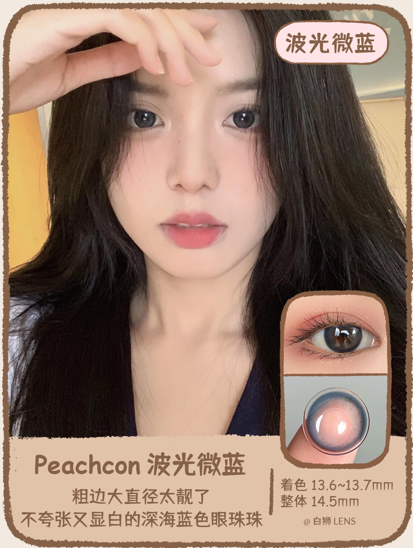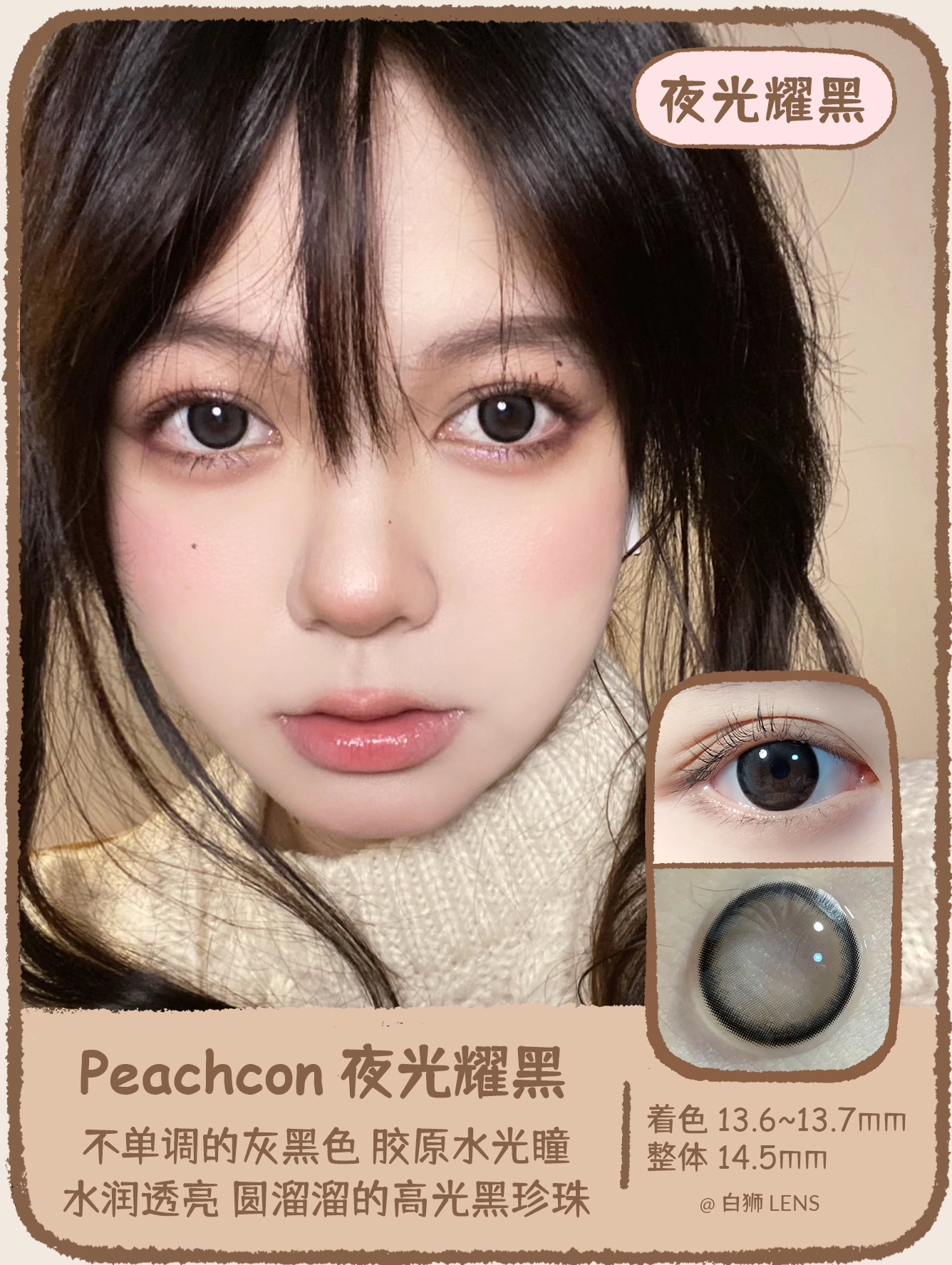 Peachcon旗下 · 水润微光系列 | 镜光月灰 · 夜光耀黑 · 波光微蓝 | 14.5mm大直径 年抛美瞳