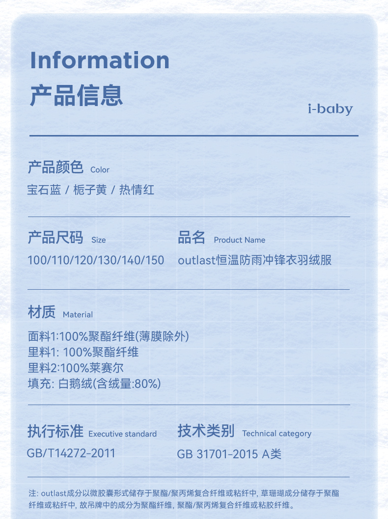 i-baby outlast恒温防雨冲锋羽绒服白鹅绒服