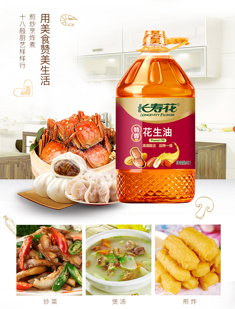 长寿花特香花生5L/桶 压榨一级 物理压榨食用油 新日期
