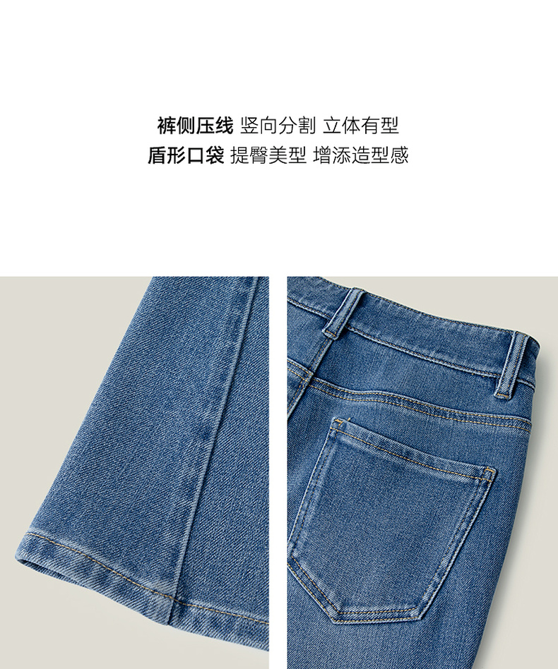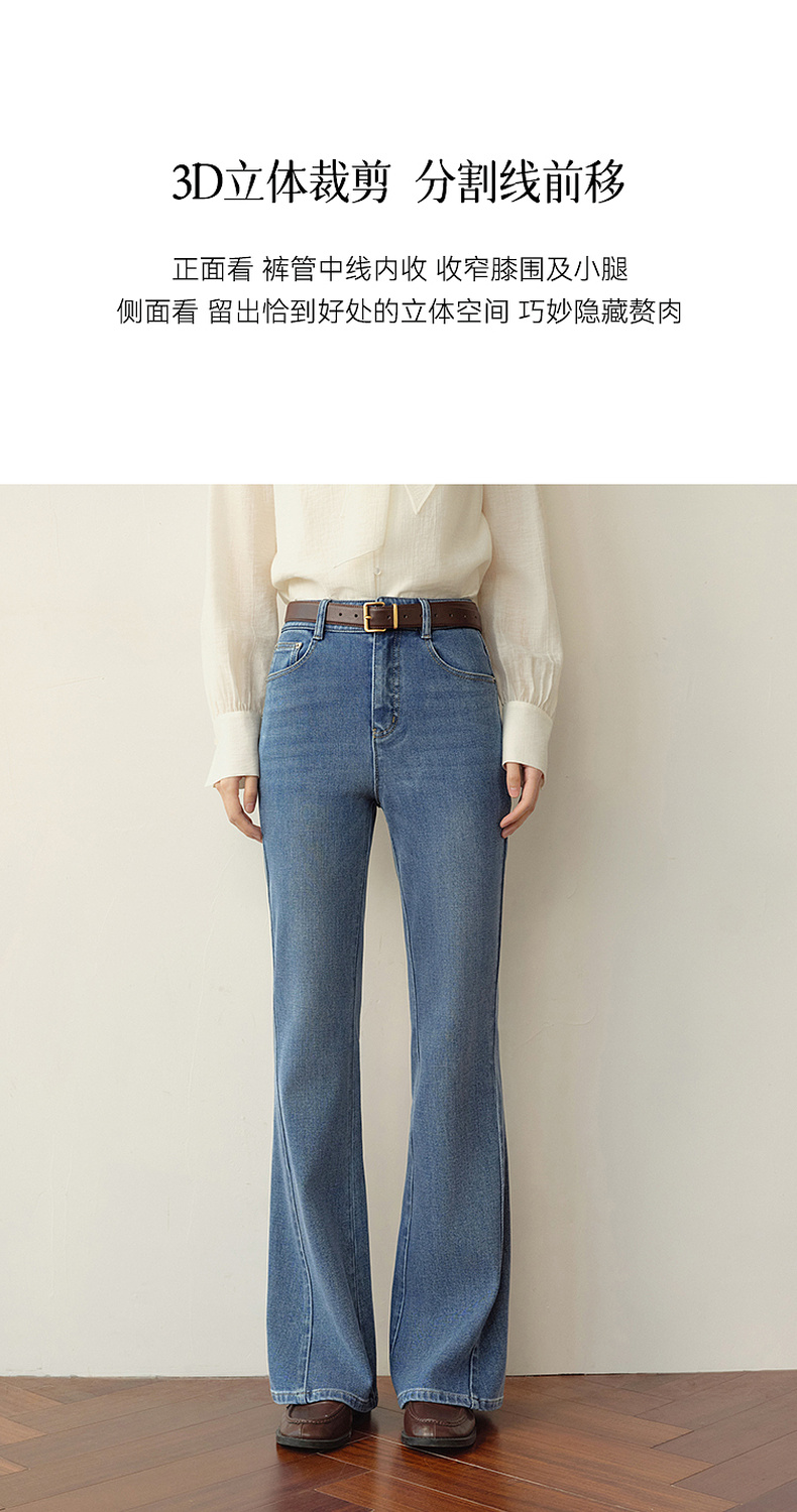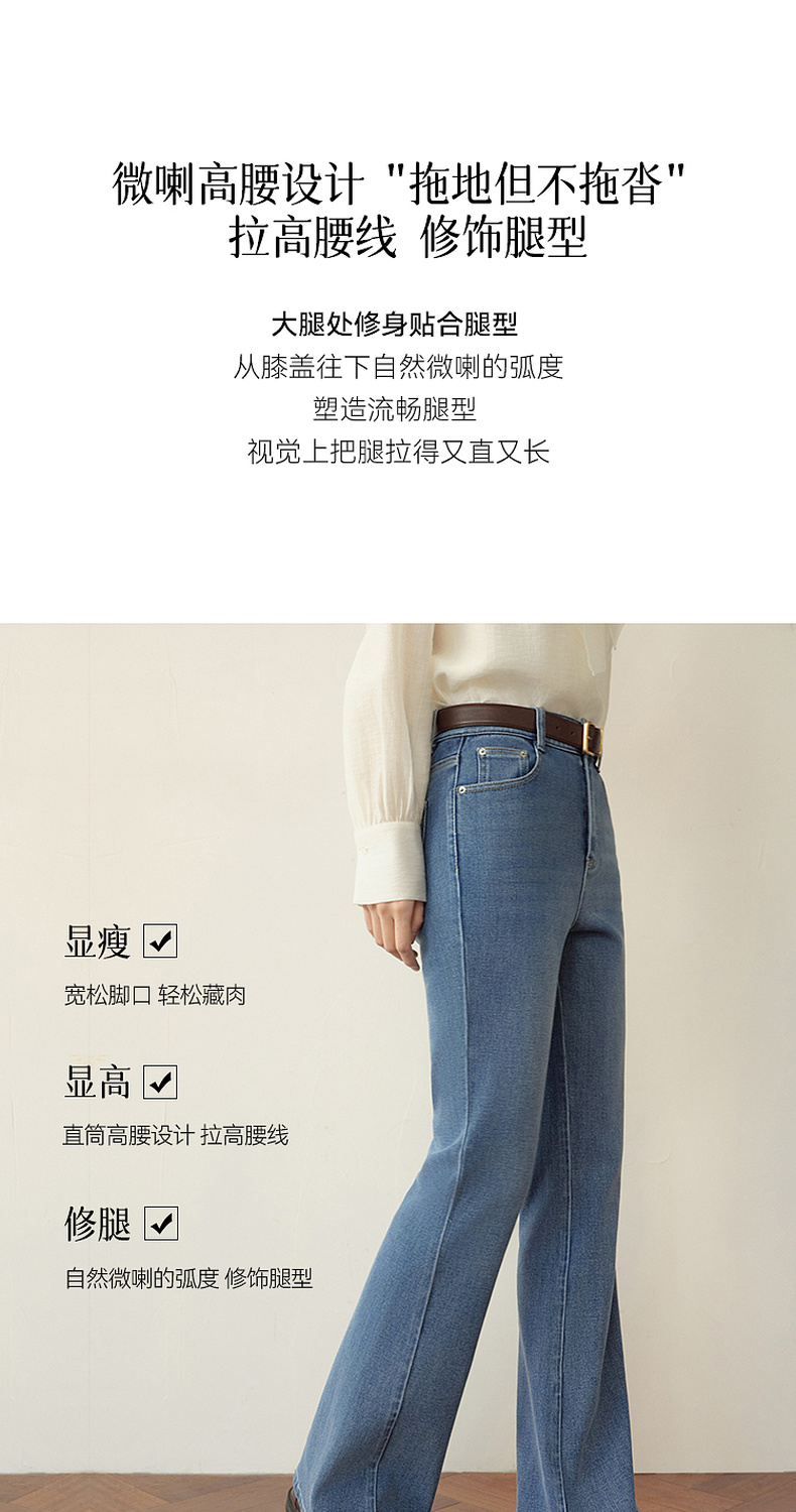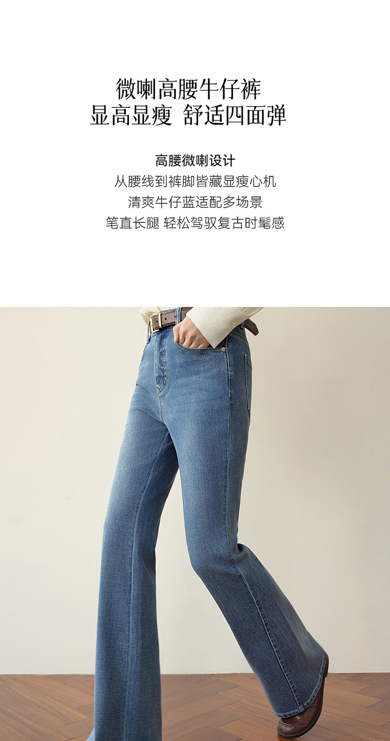 【严选】诗凡黎四面弹高腰微喇牛仔裤26春新款天丝棉休闲通勤显瘦百搭长裤7H2250231