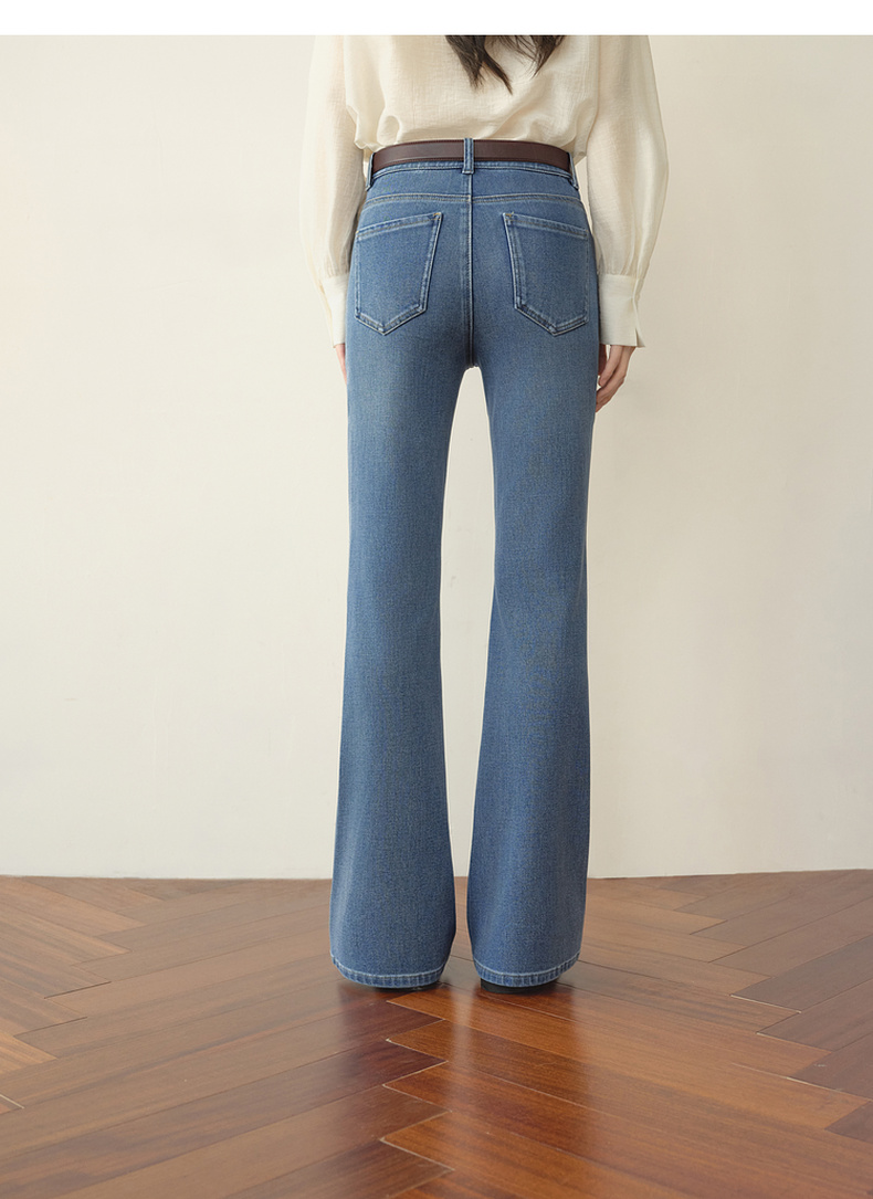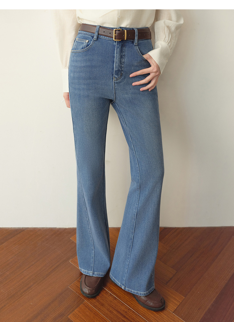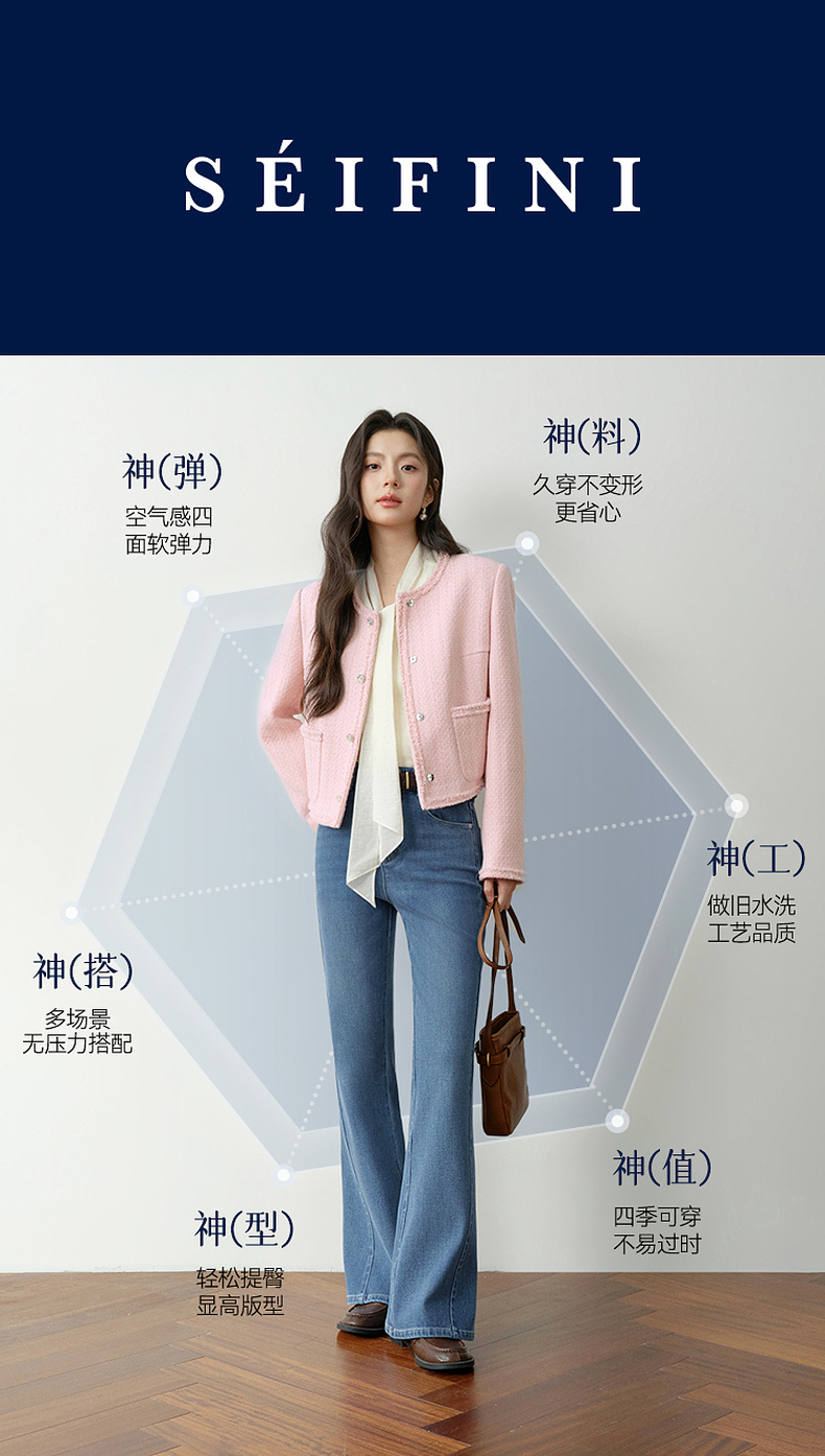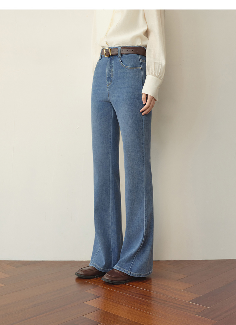【严选】诗凡黎四面弹高腰微喇牛仔裤26春新款天丝棉休闲通勤显瘦百搭长裤7H2250231
