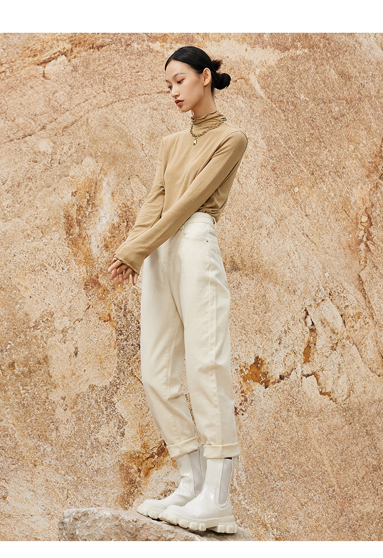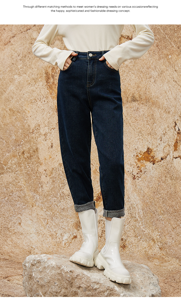 NUTS秋冬款气质百搭休闲高腰显瘦直筒水洗牛仔长裤女342112083