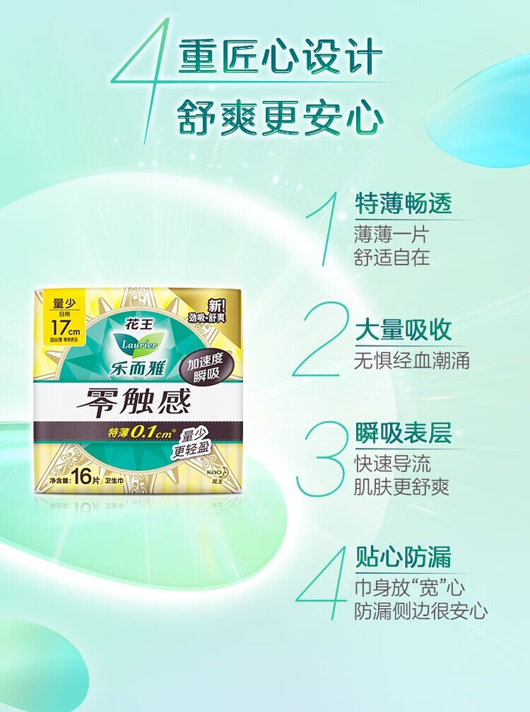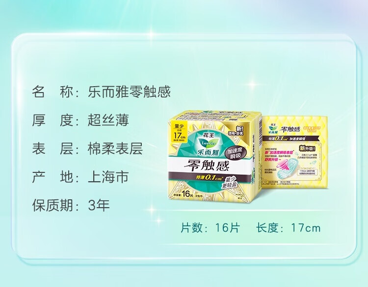 花王乐而雅 零触感特薄日用卫生巾170mm*16p