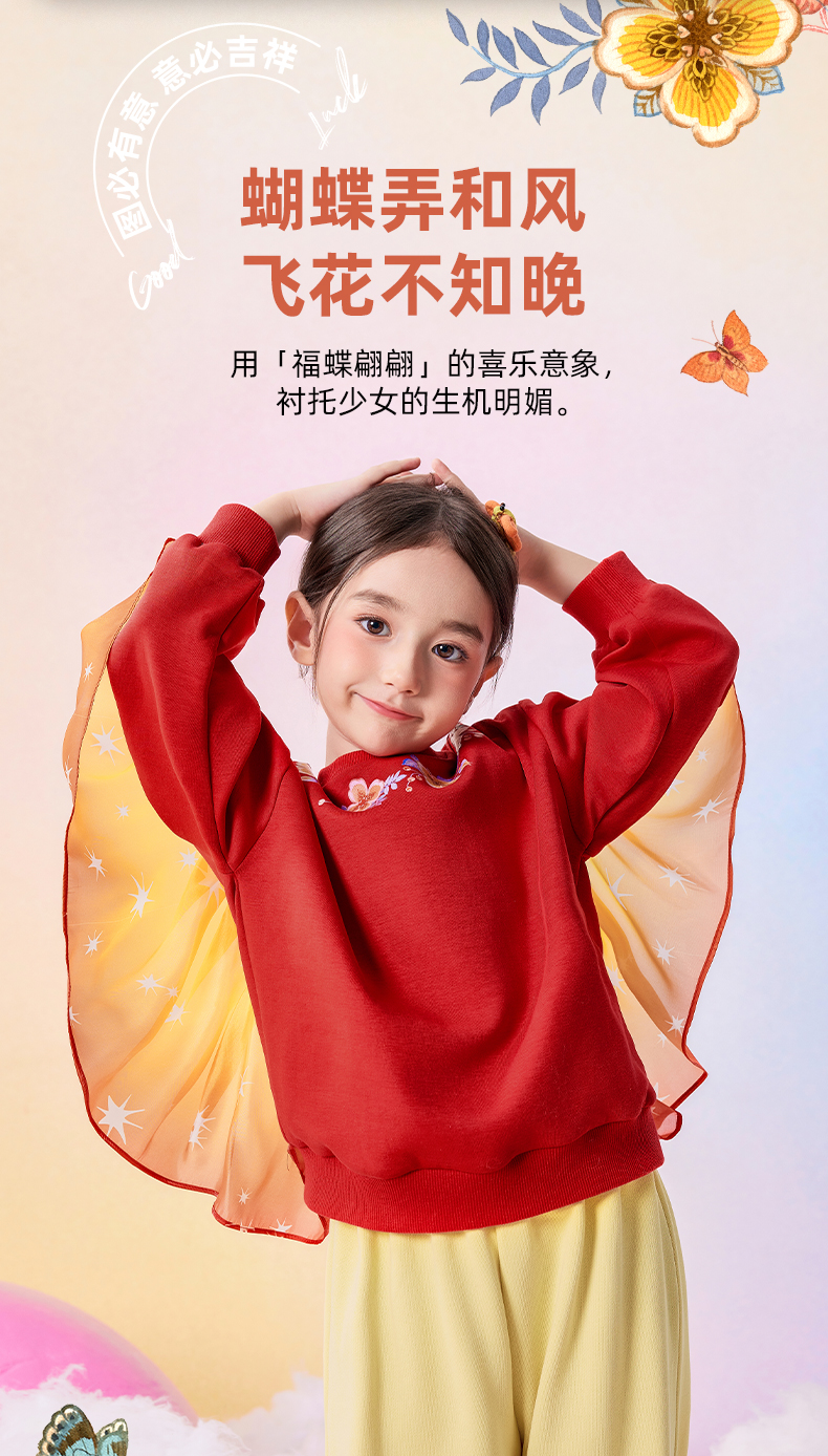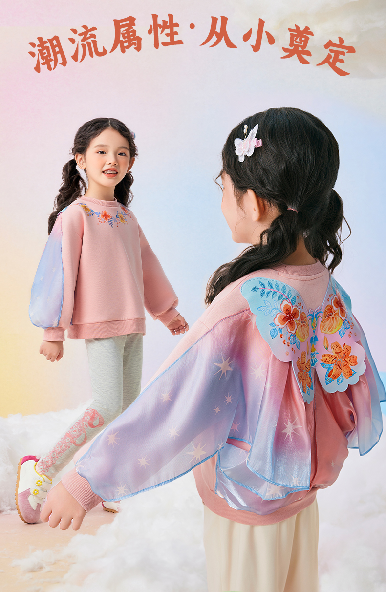 年衣童装女童卫衣长袖早秋新款儿童印花上衣女宝甜美蝴蝶造型T恤