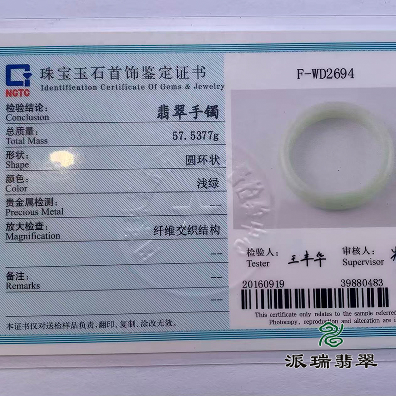 派瑞翡翠 翡翠手镯 糯种 浅绿