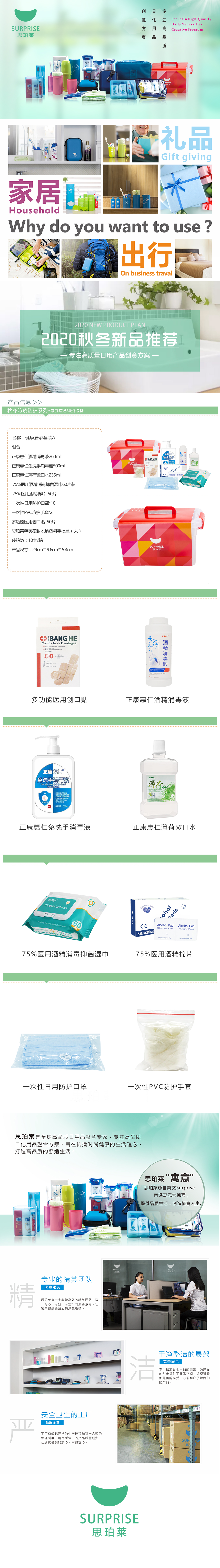 【全民防护】健康居家套装A 消毒液漱口水酒精棉片口罩手套创可贴