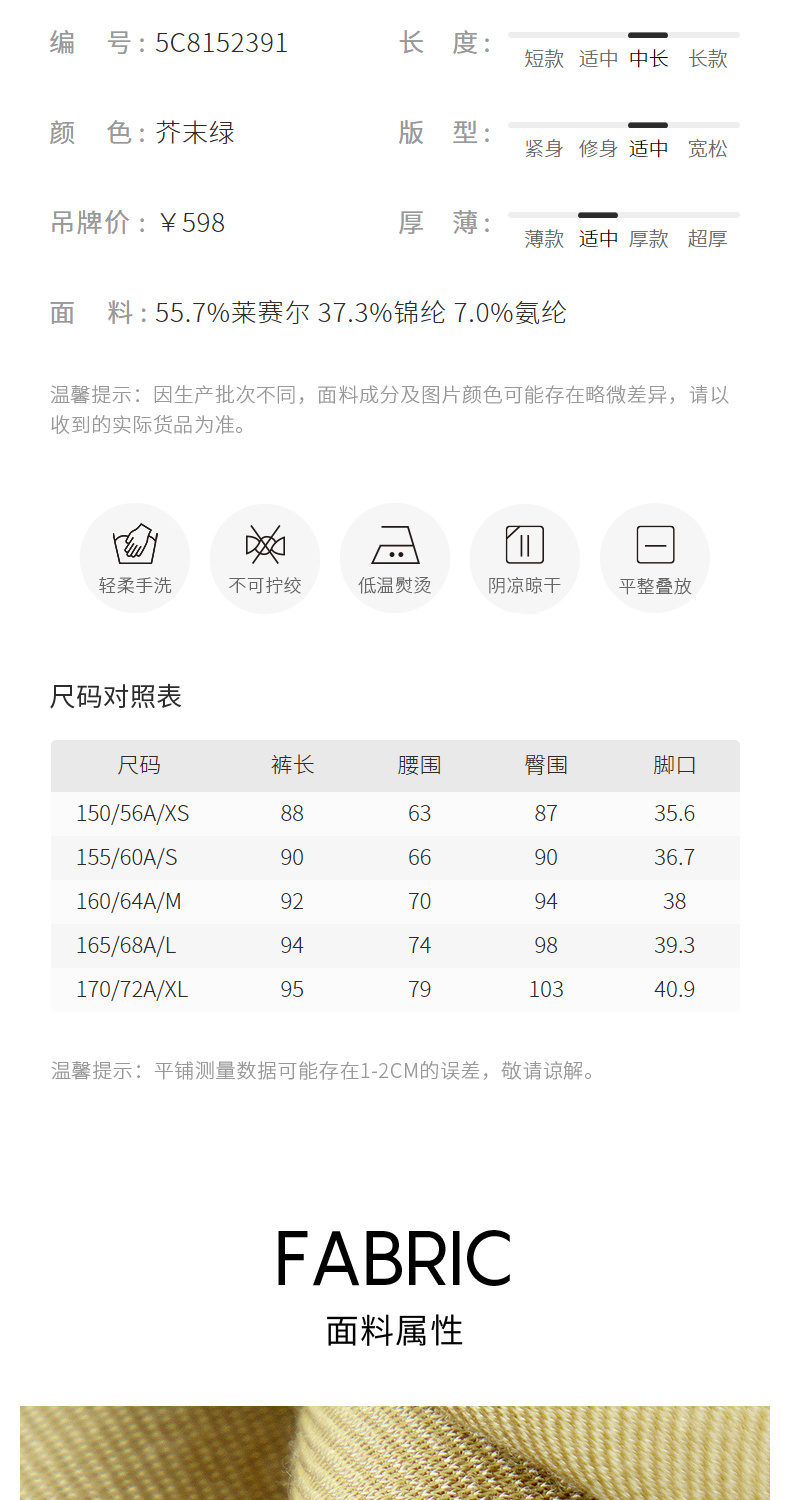 【商场同款】麦檬秋百搭通勤风锥形裤5C8152391
