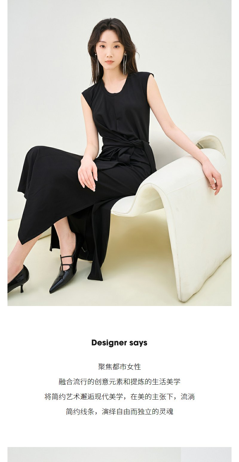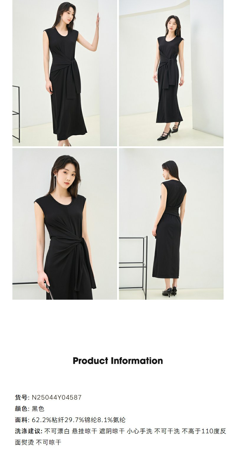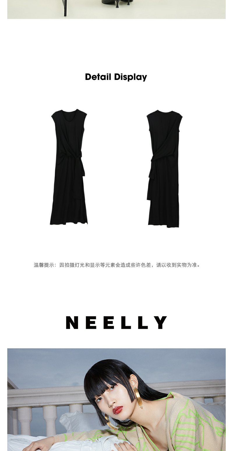 NEELLY纳俪商场同款夏季新款法式优雅收腰连衣裙女套头开叉长裙N25044Y04587