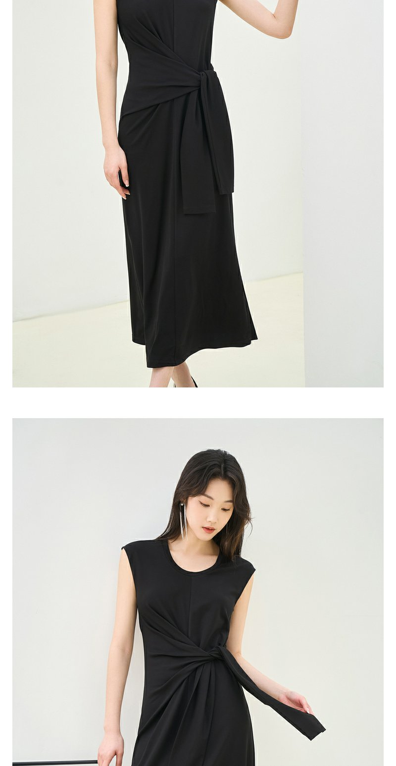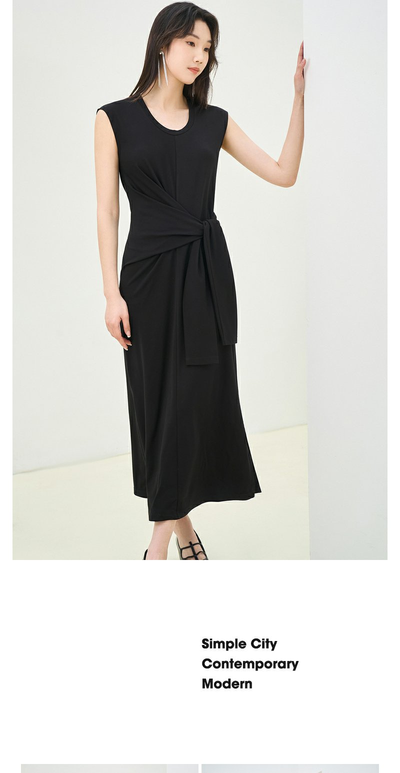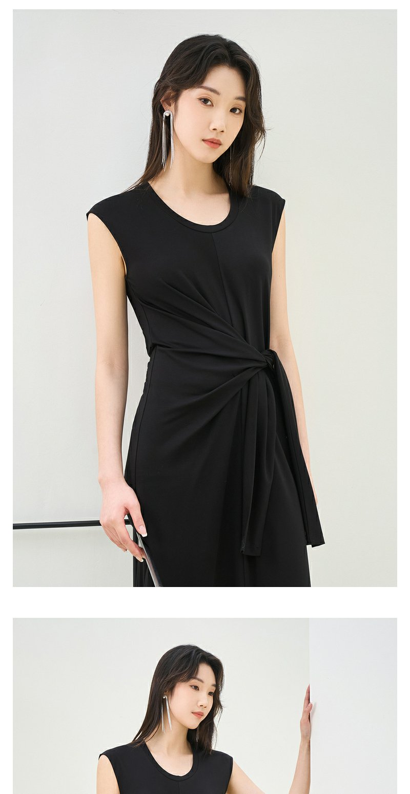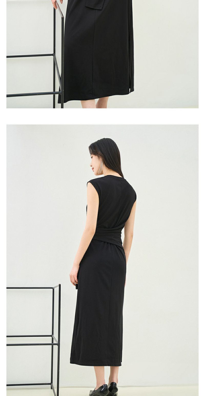 NEELLY纳俪商场同款夏季新款法式优雅收腰连衣裙女套头开叉长裙N25044Y04587