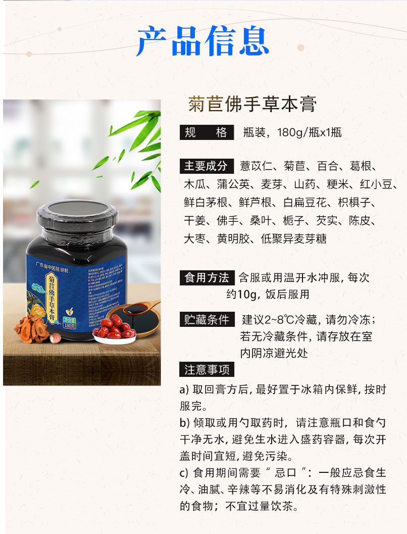【祛湿气降尿酸去痛风】菊苣佛手草本膏(180g/瓶)