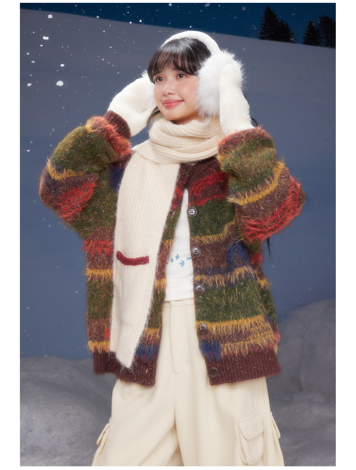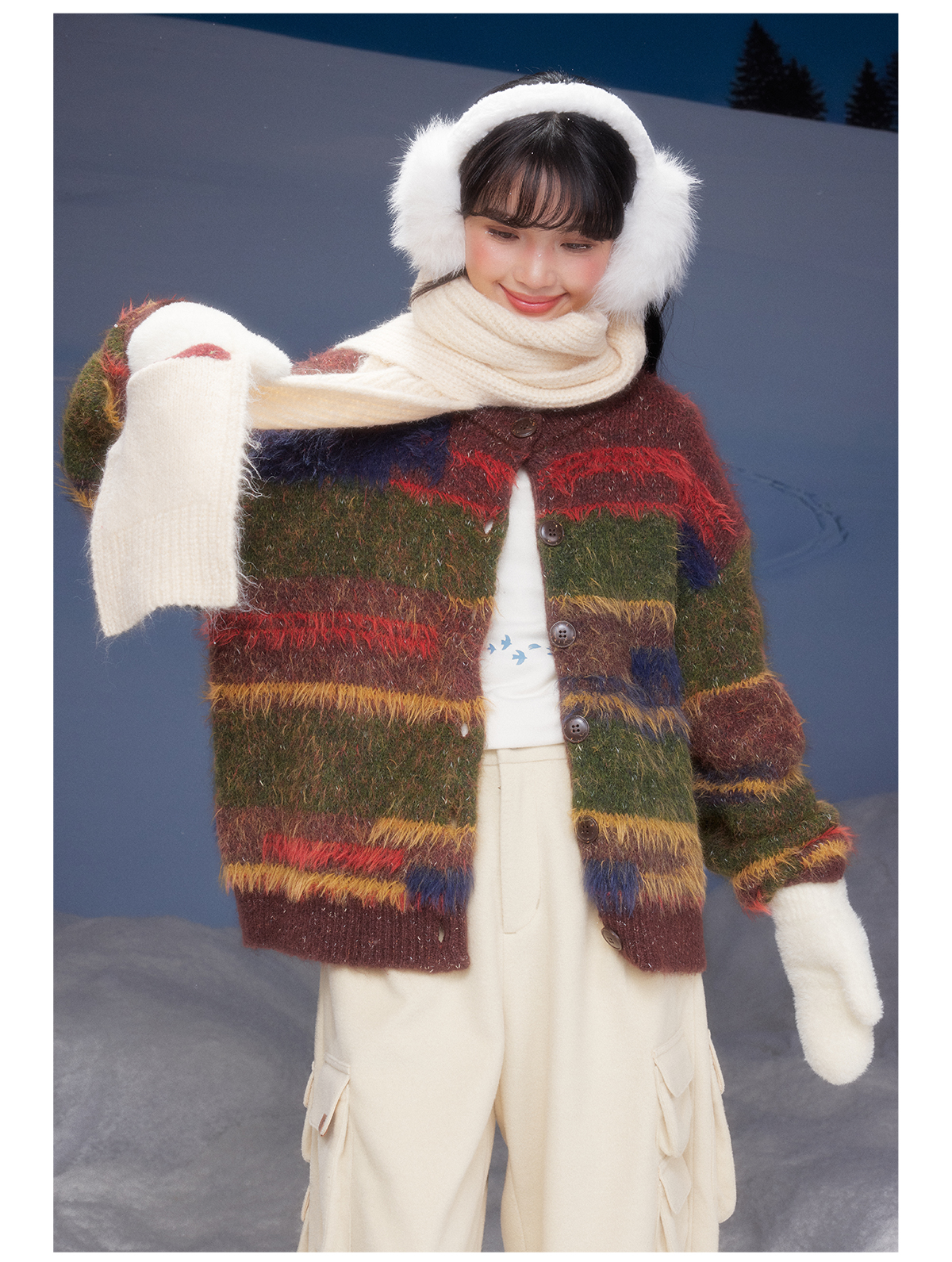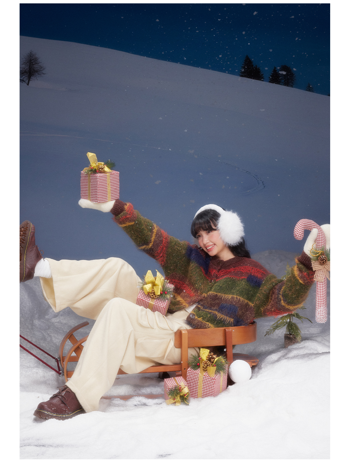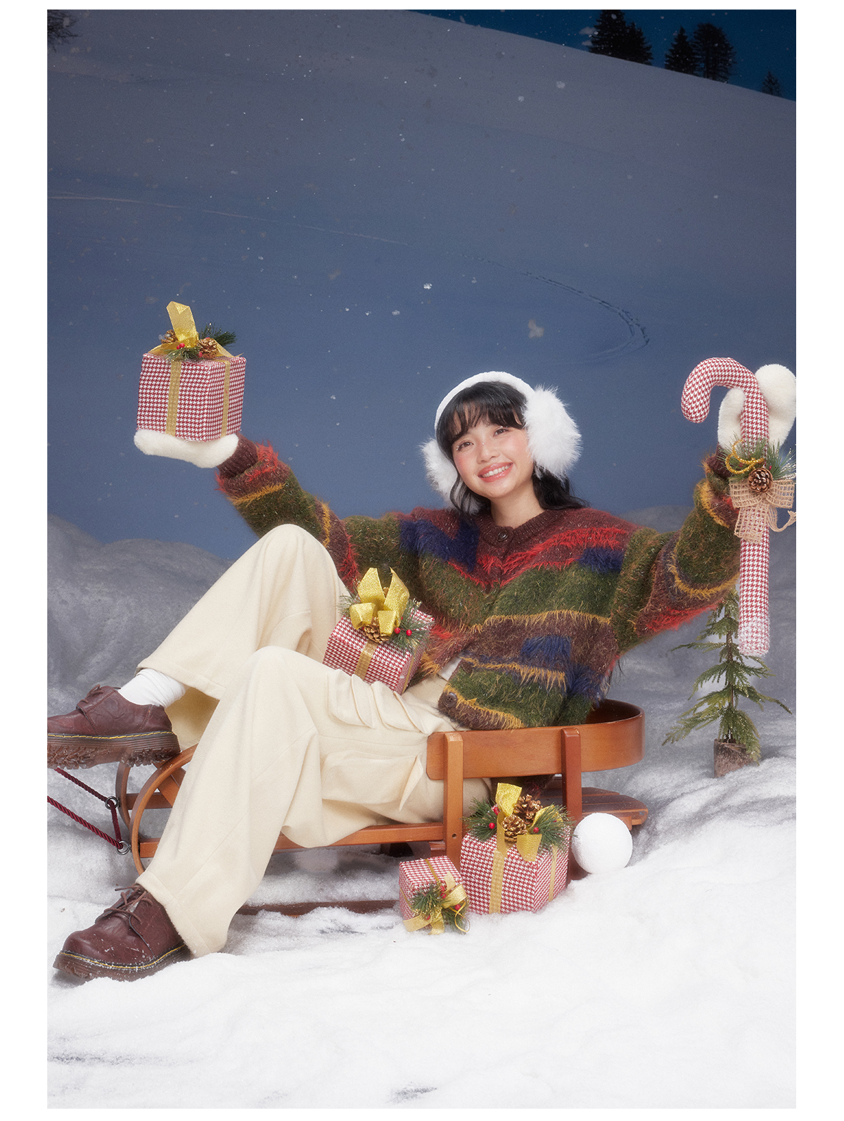 早乙女惠子saotome/STMMY141109/圣诞彩条毛衣开衫