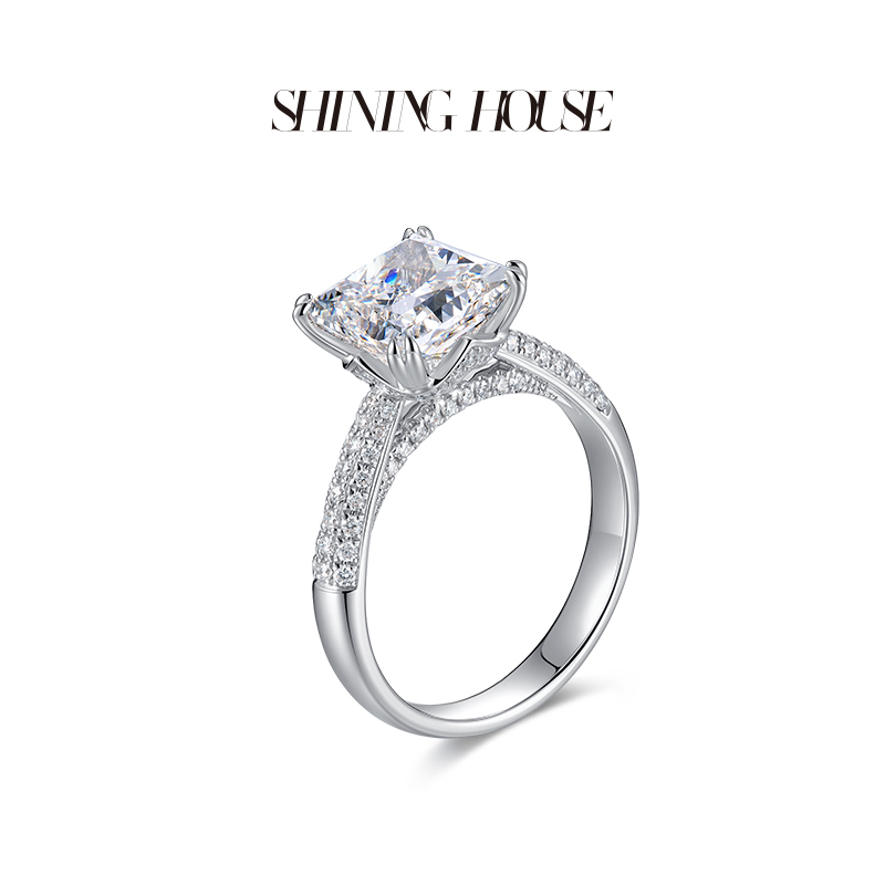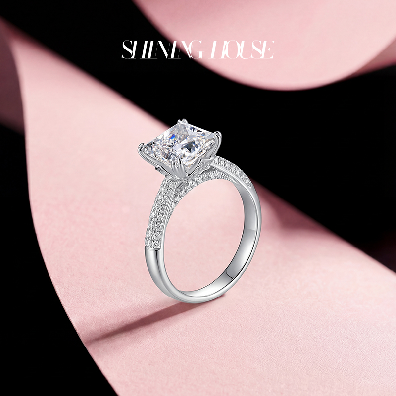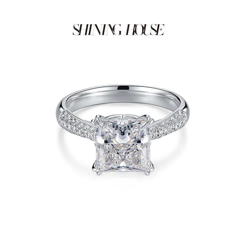 【预售】ShiningHouse[培育] 18k金钻石戒指 公主方形2克拉钻人工真钻人造钻石K金戒指时尚钻石戒指悦己送礼臻选【此商品不支持7天无理由退货退款】预计3日发货