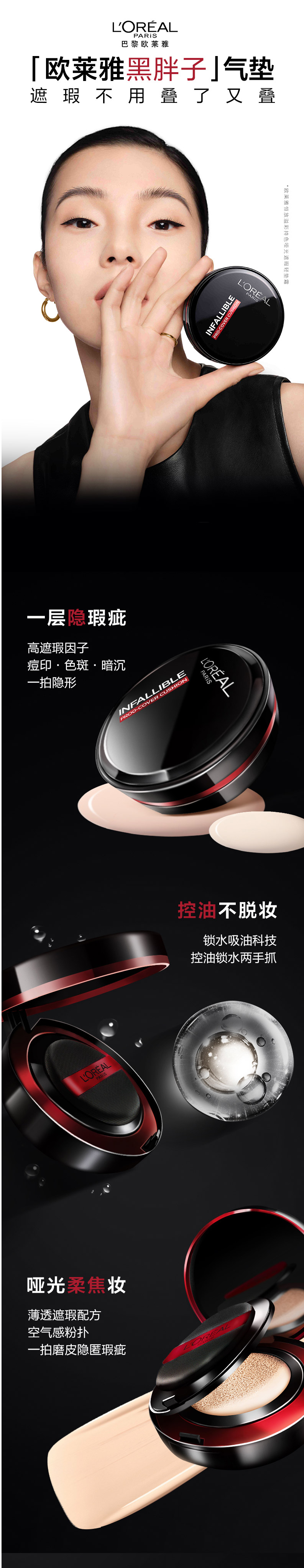 欧莱雅L’OREAL 黑胖子气垫bb霜轻垫霜 14G+14G