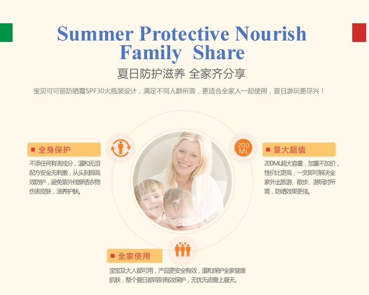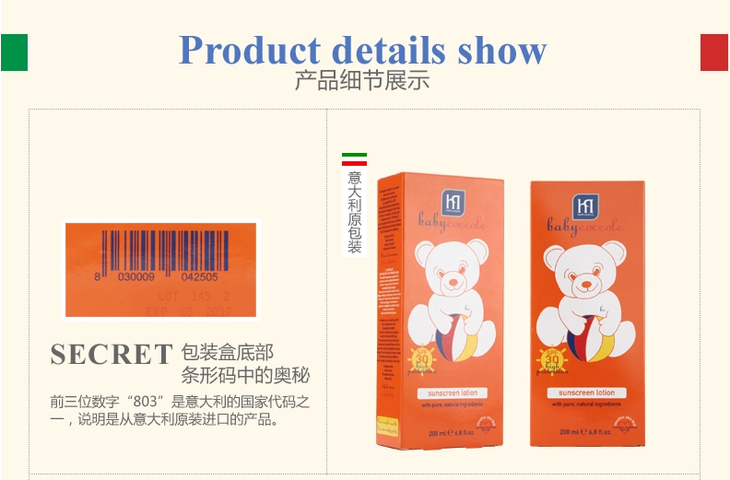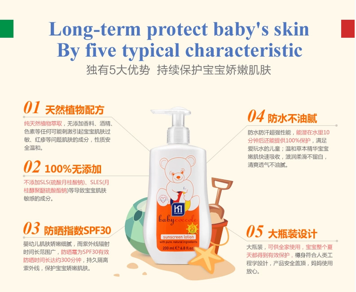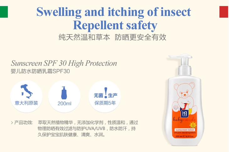 意大利宝贝可可丽防晒乳液SPF30200ml【YJQ】