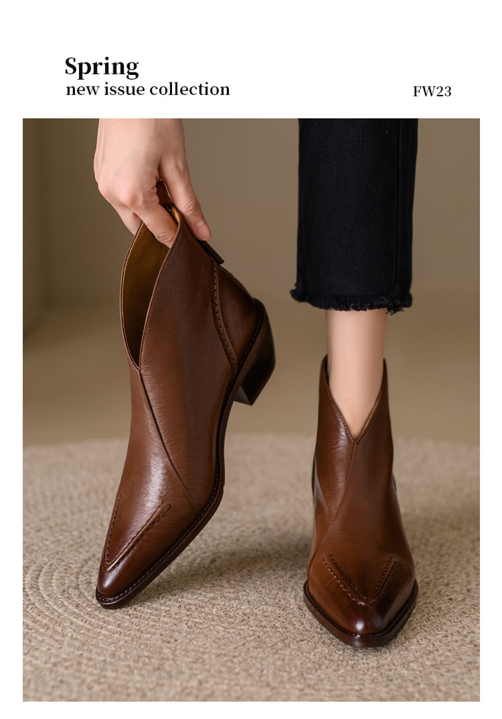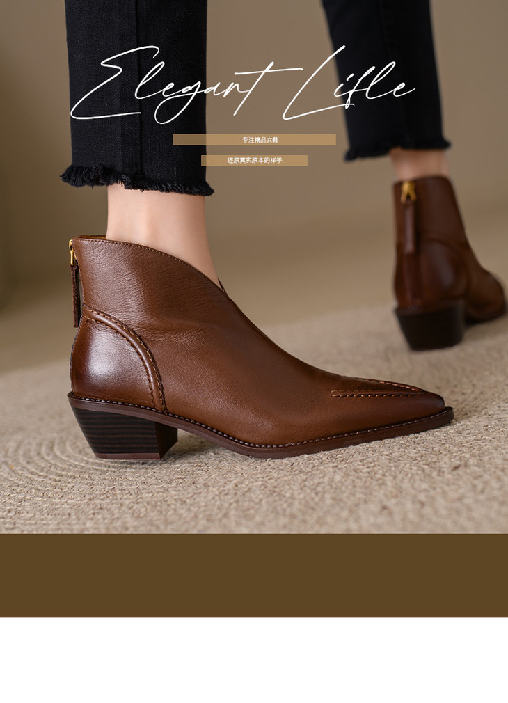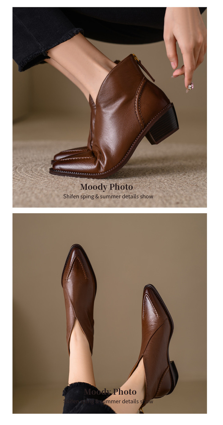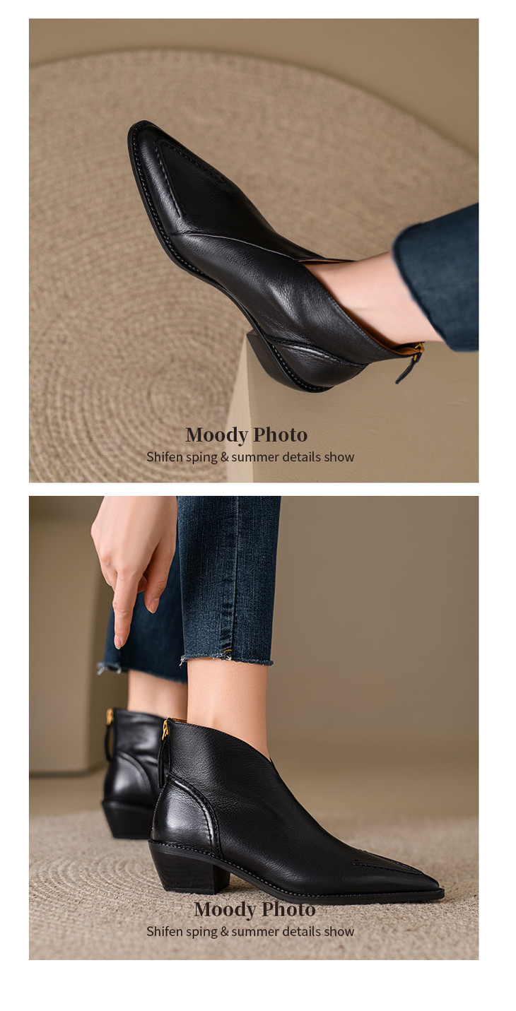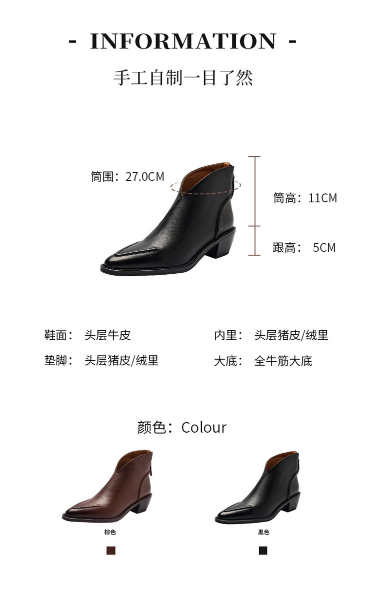 【预售5天】头层牛皮尖头粗跟短靴MLNS*F7102