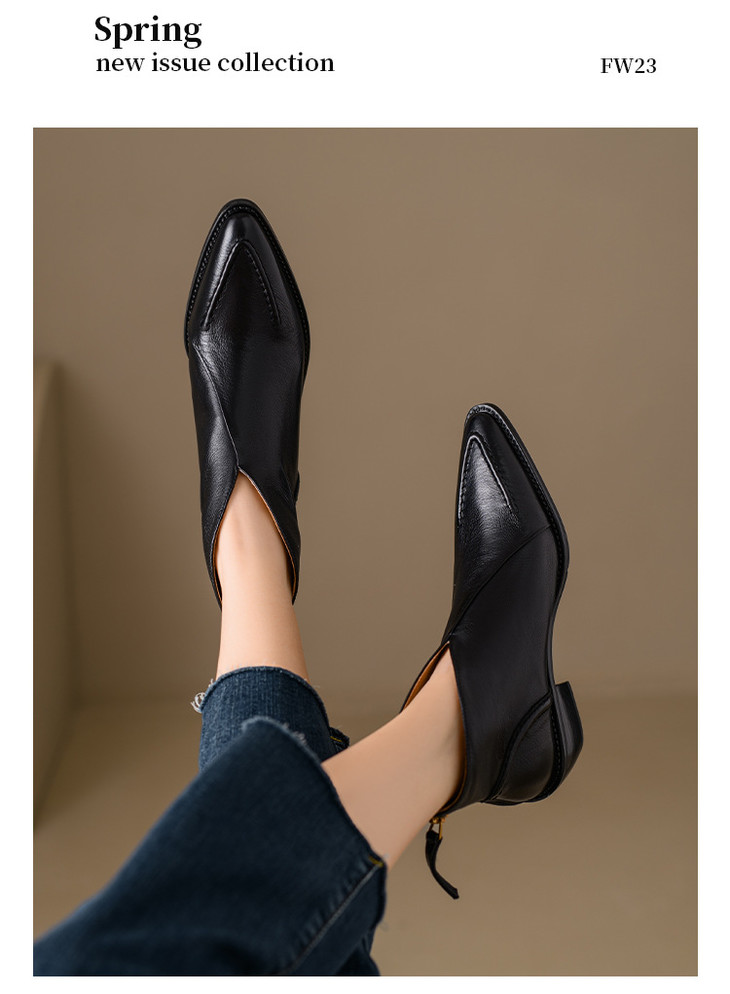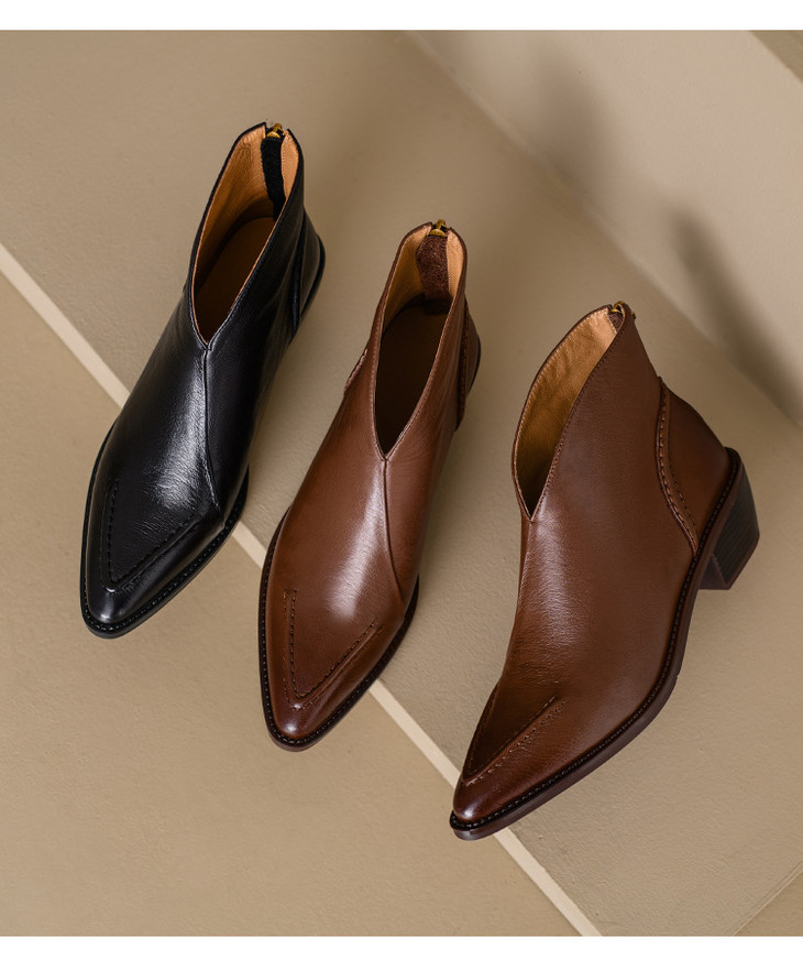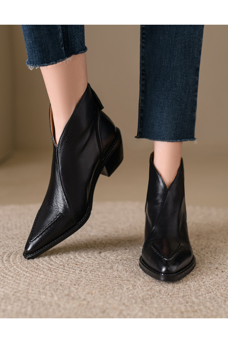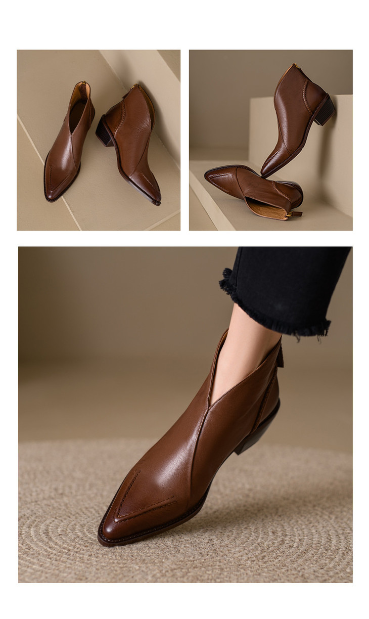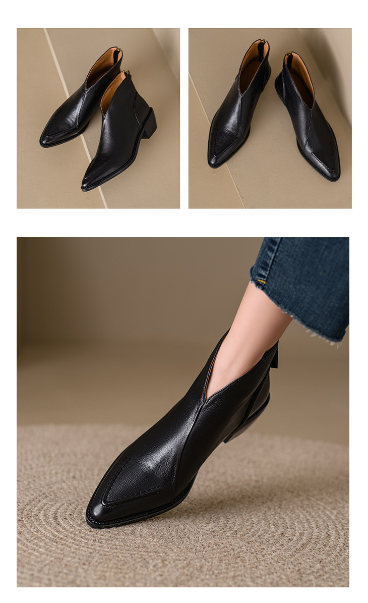 【预售5天】头层牛皮尖头粗跟短靴MLNS*F7102