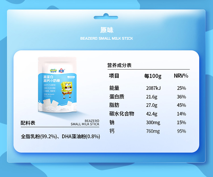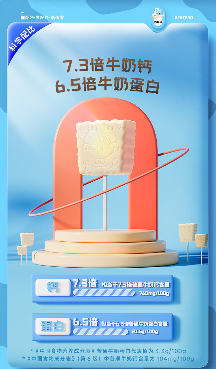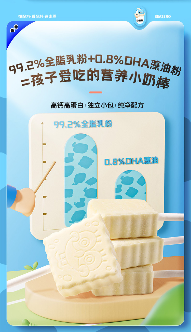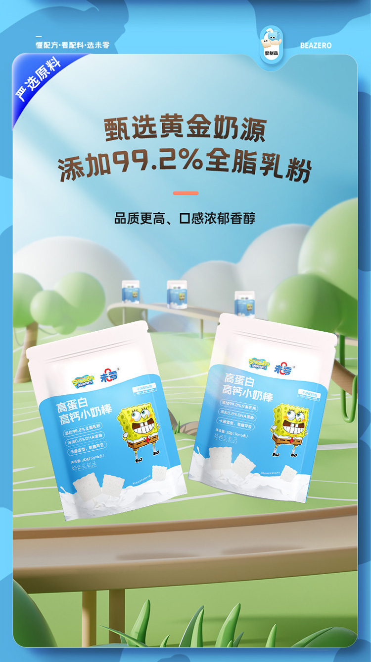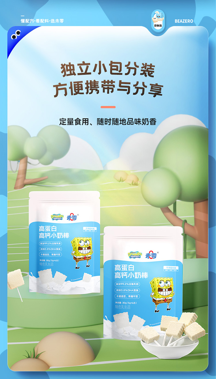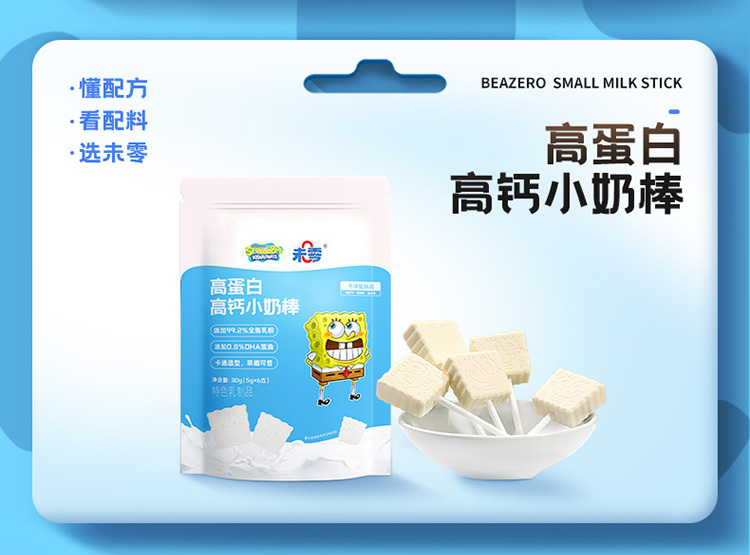 【未零】高蛋白高钙小奶棒vc果棒糖 海绵宝宝儿童奶片棒棒糖vc水果糖