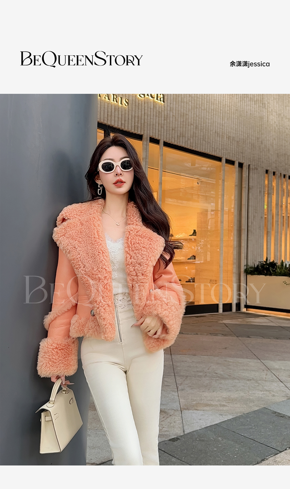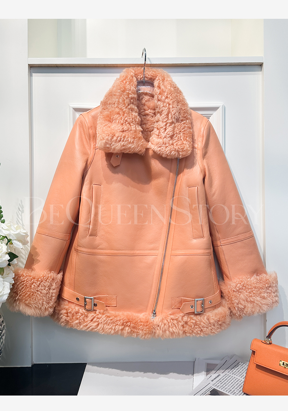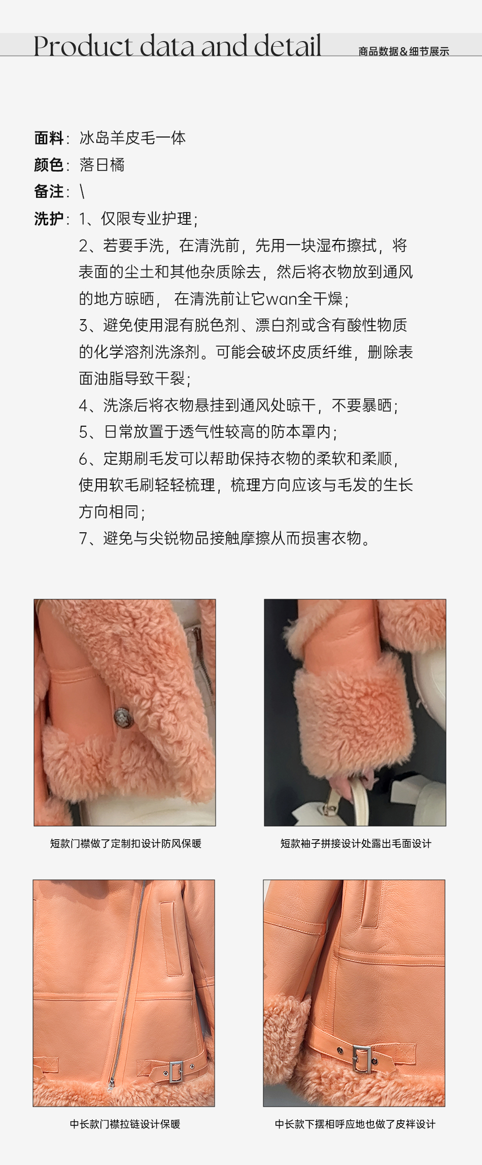 余潇潇红人上新【落日橘海】保暖耐寒落日橘冰岛皮毛一体机车皮草