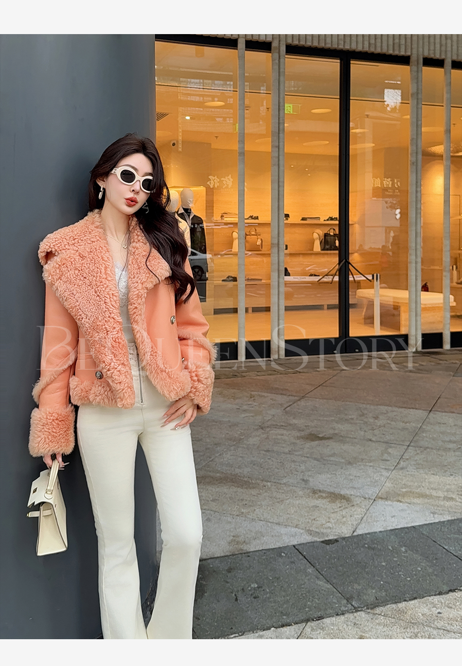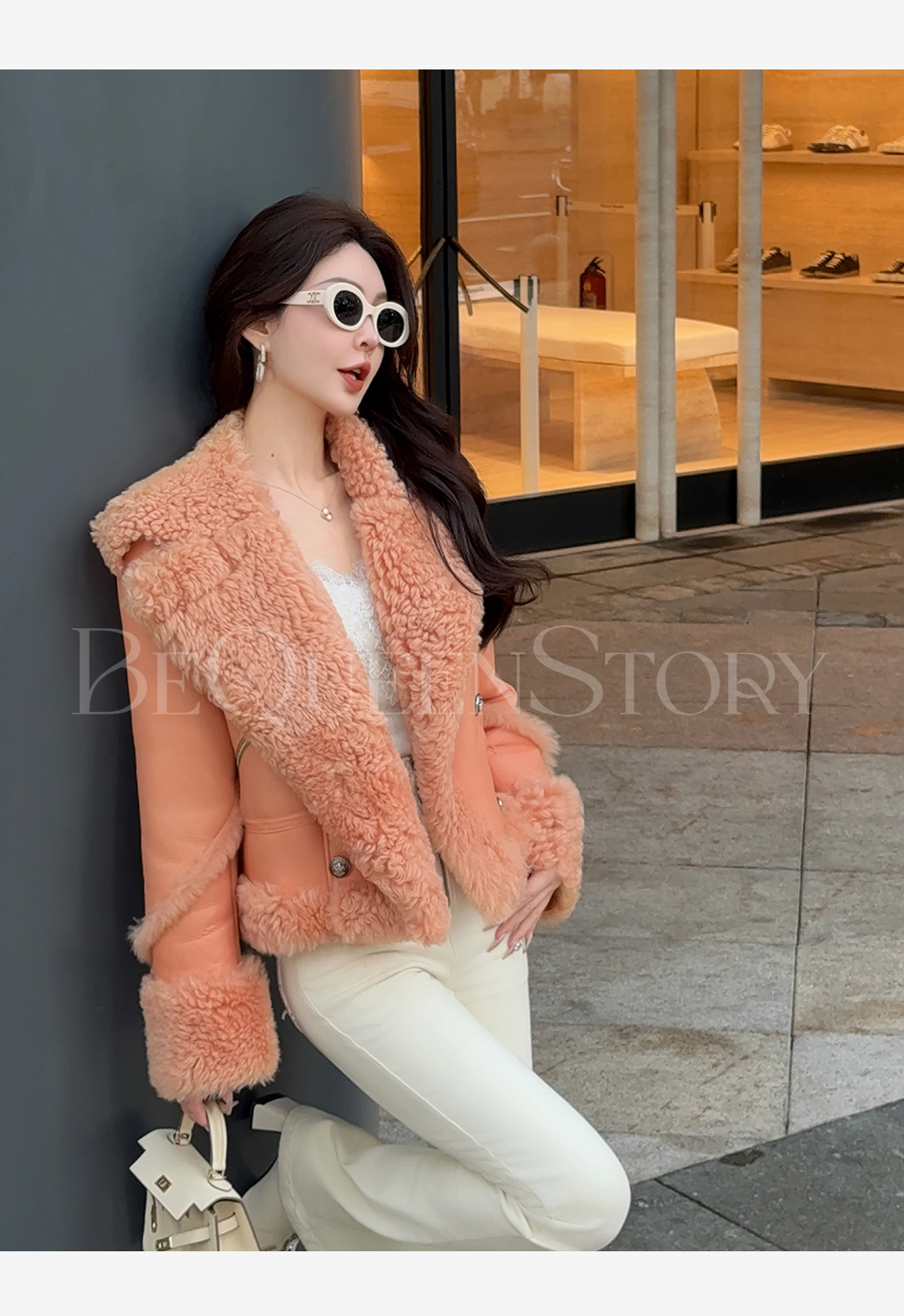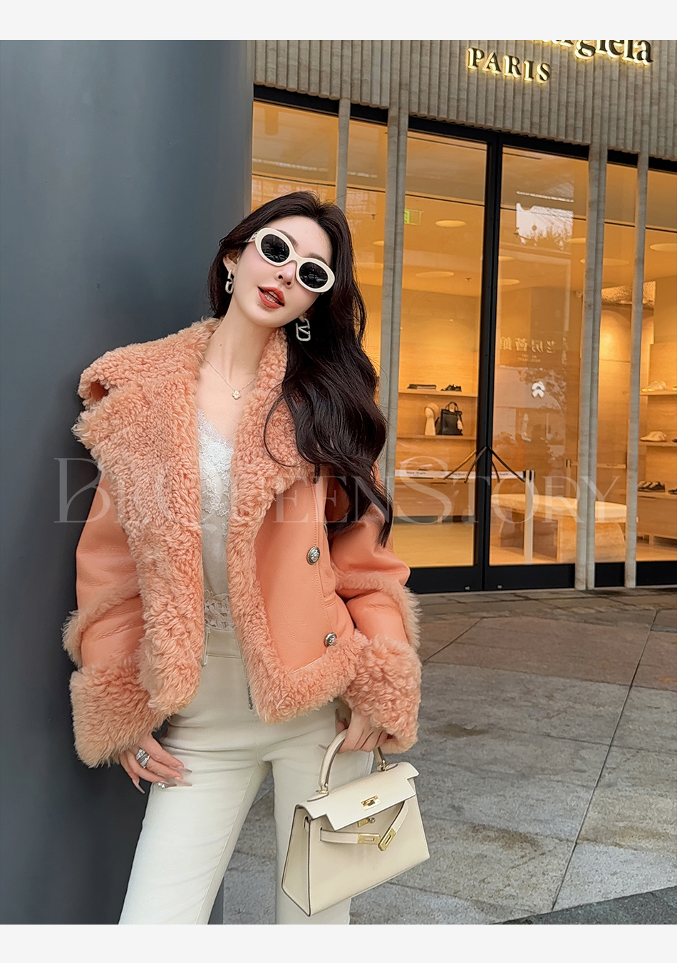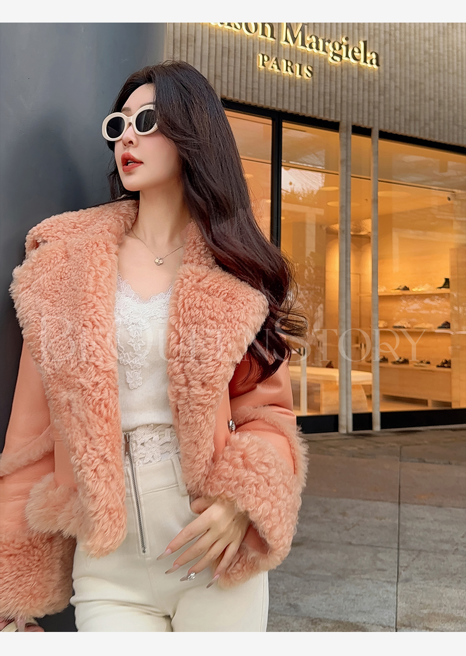 余潇潇红人上新【落日橘海】保暖耐寒落日橘冰岛皮毛一体机车皮草