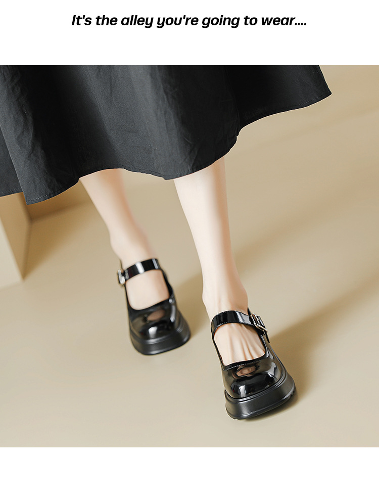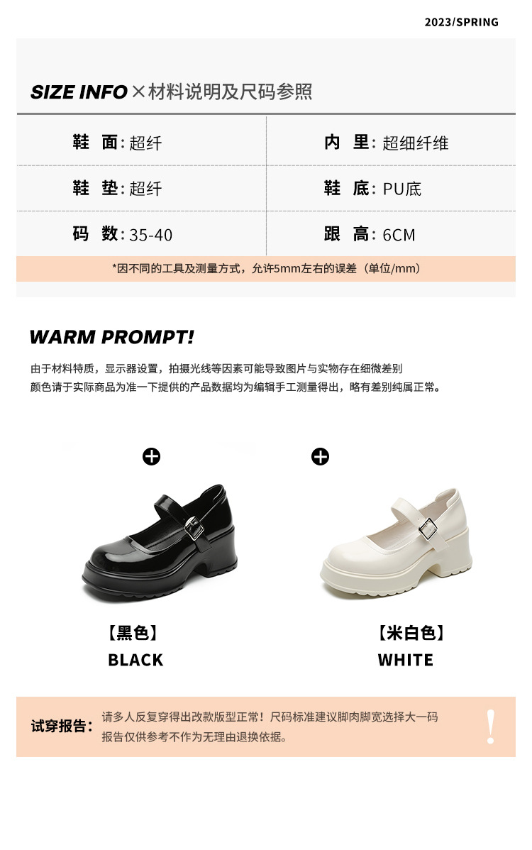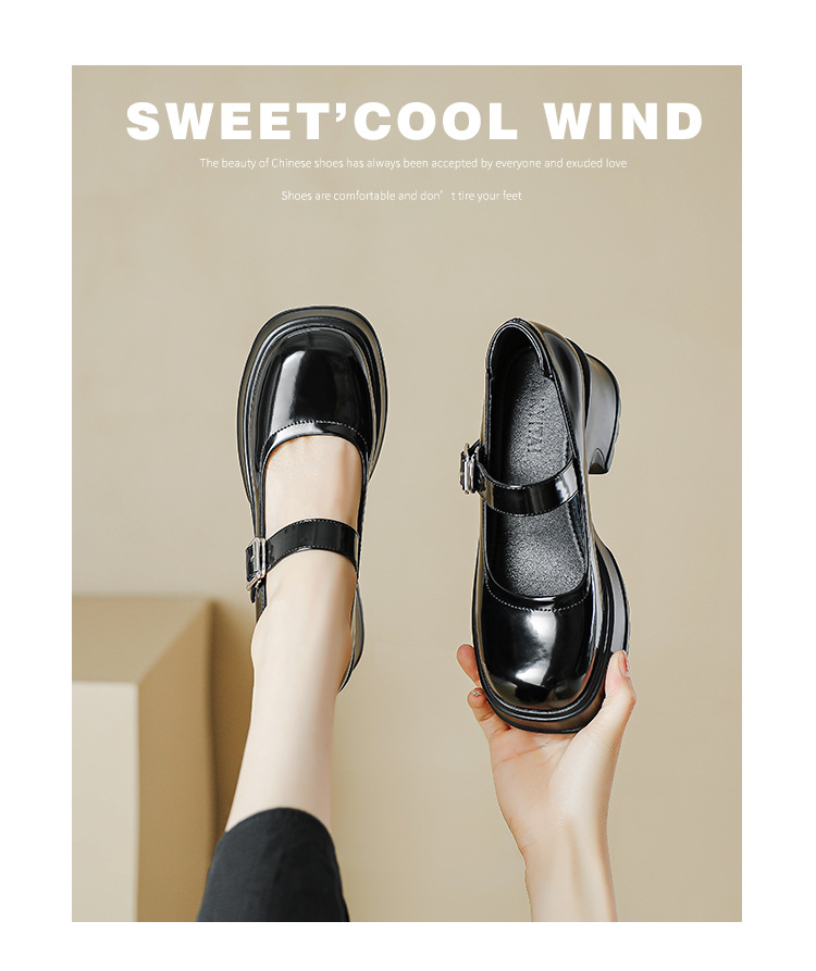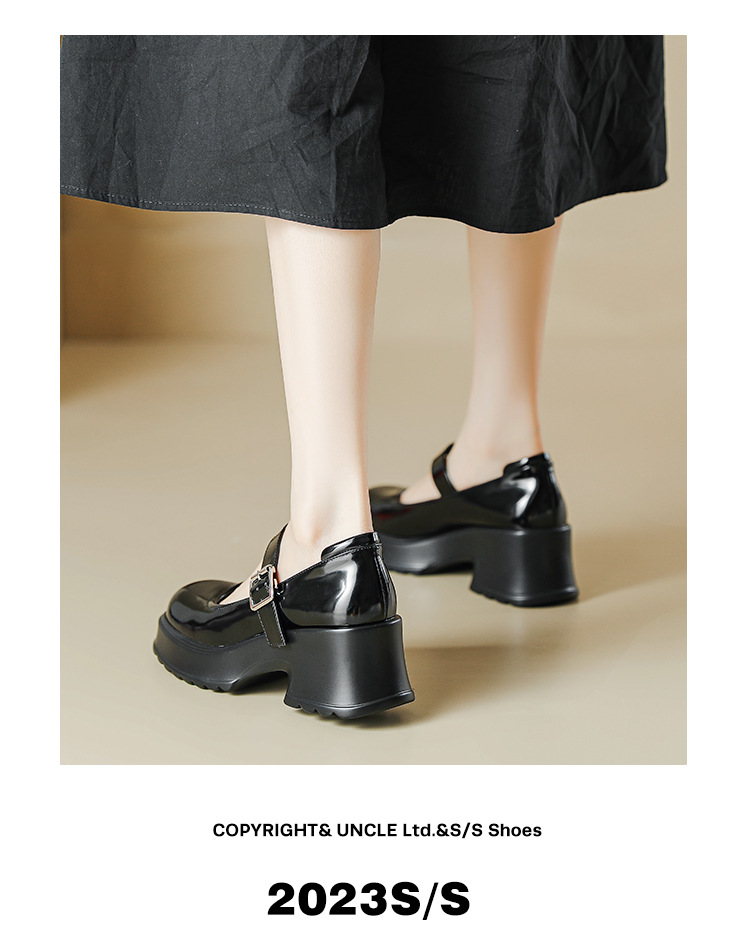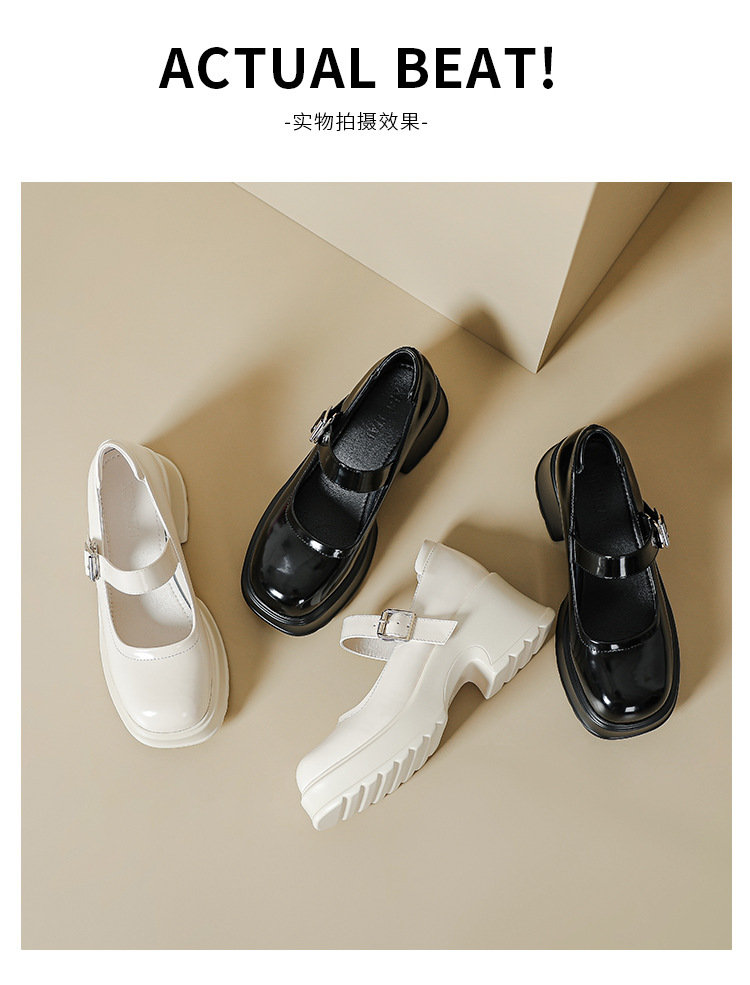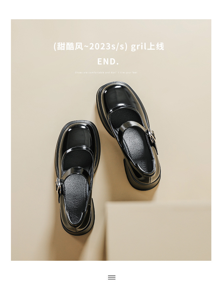 甜酷风玛丽珍鞋女2023新款粗跟高跟女生单鞋复古百搭厚底小皮鞋