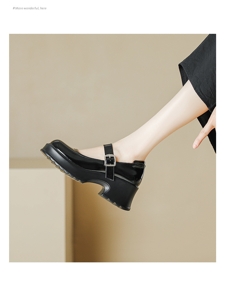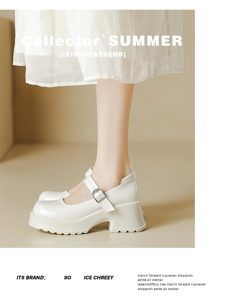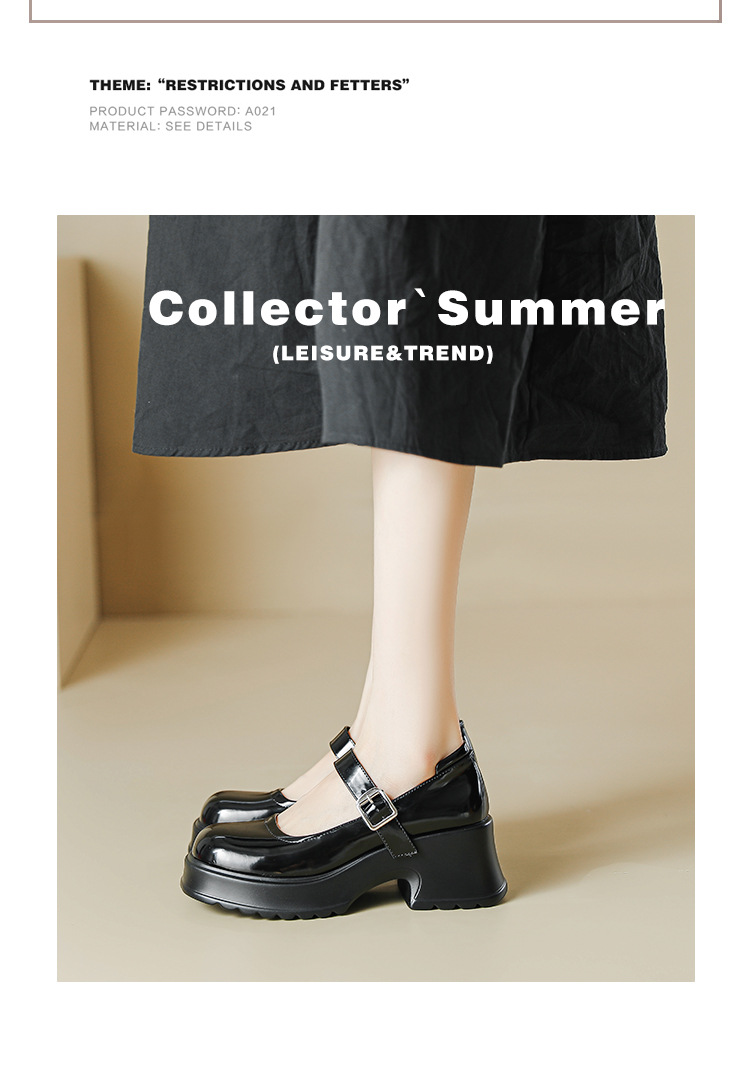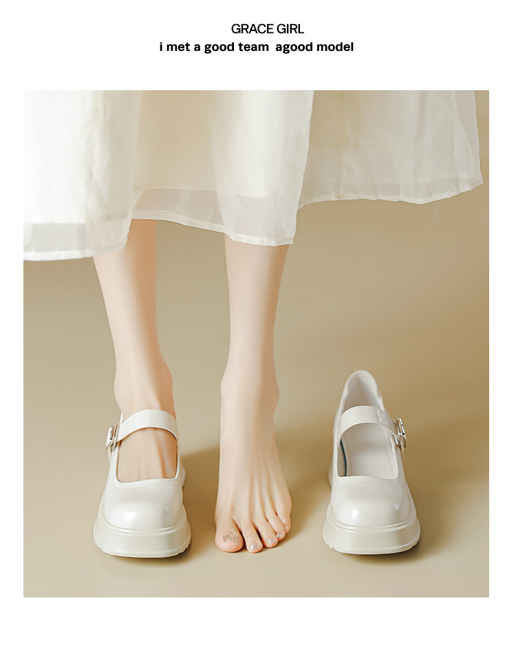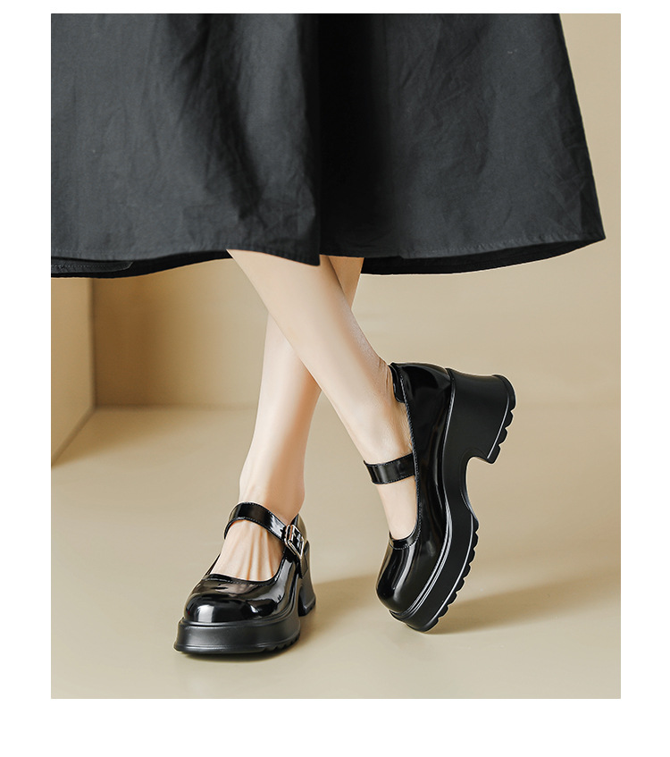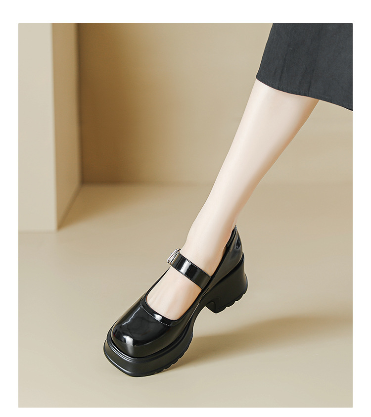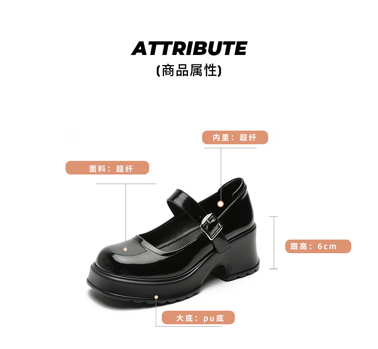 甜酷风玛丽珍鞋女2023新款粗跟高跟女生单鞋复古百搭厚底小皮鞋