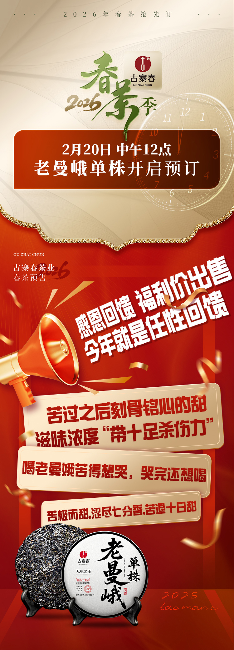 最后十几名!即将涨价【老曼峨苦/甜茶单株】2026年春茶预售苦过之后刻骨铭心的甜 滋味浓度“带十足杀伤力”,357克/饼