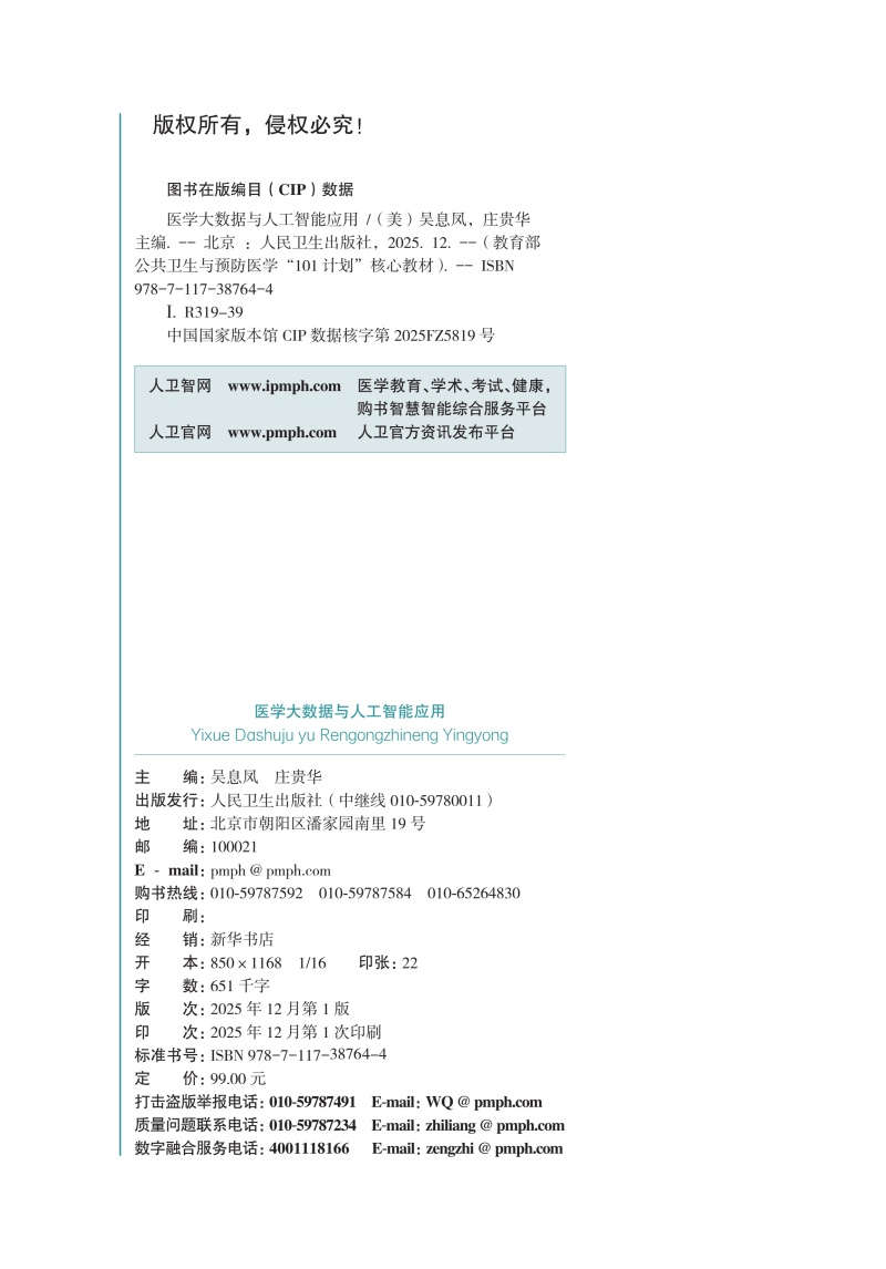 医学大数据与人工智能应用 十四五划规教材全国高等学校教材 吴息凤 庄贵华 供预防医学类专业用 9787117387644 人民卫生出版社