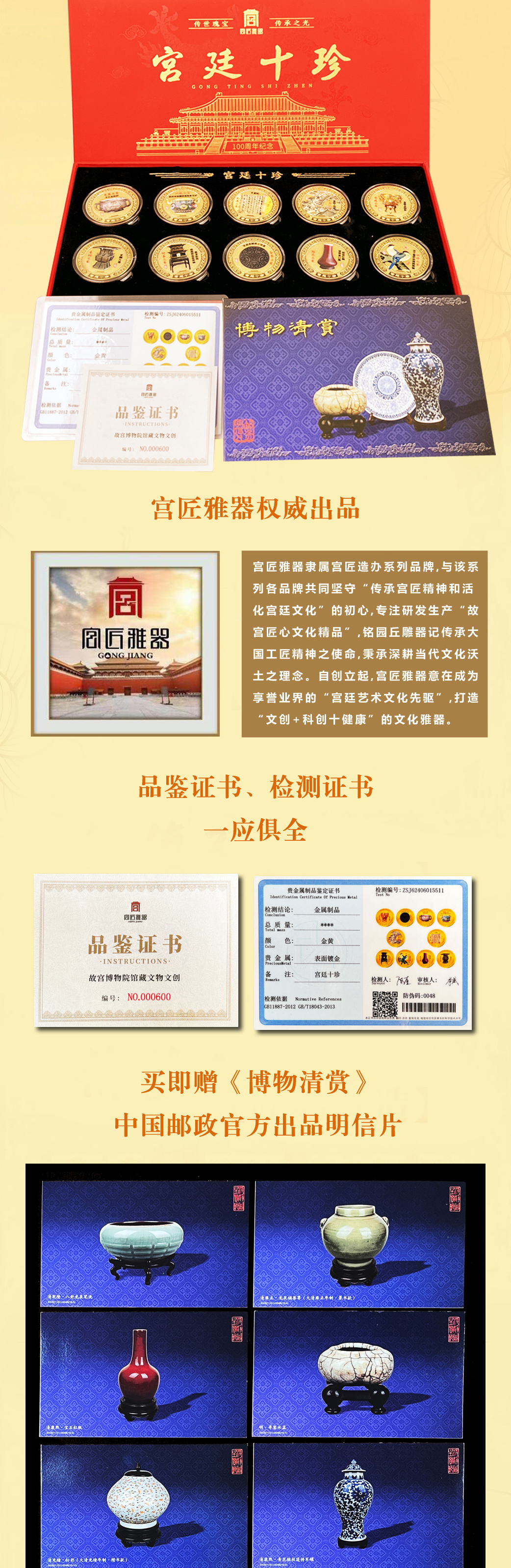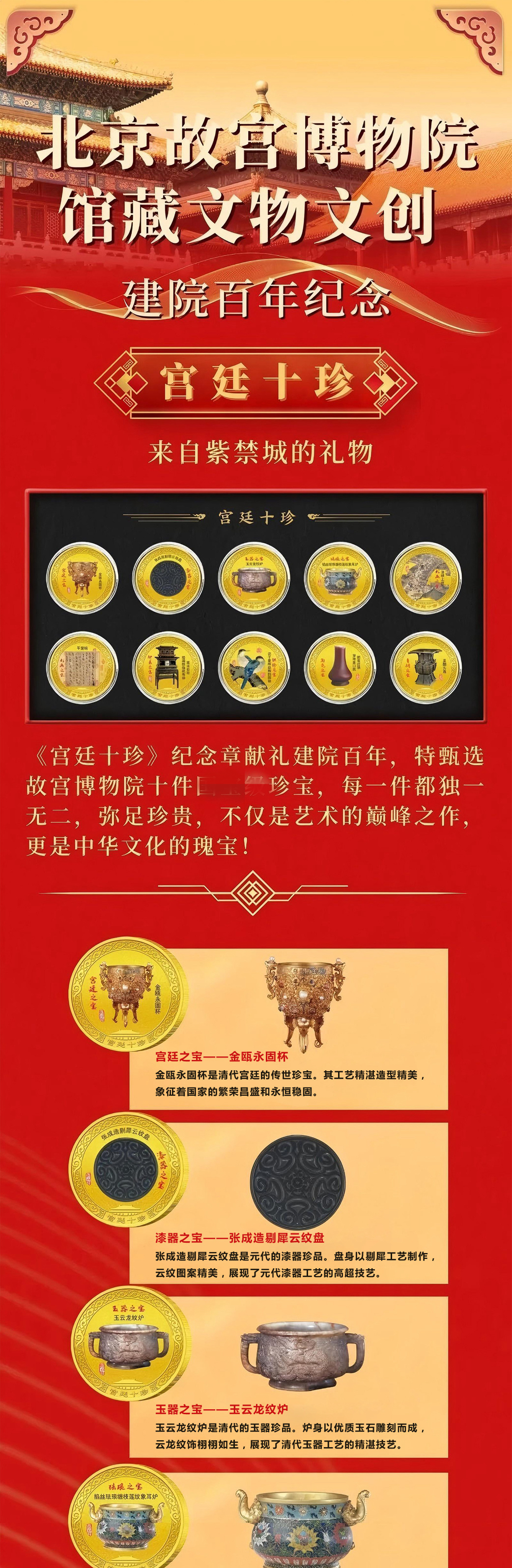 热卖中!!【故宫博物馆建馆100周年华诞】宫廷十珍纪念章(精美封装)