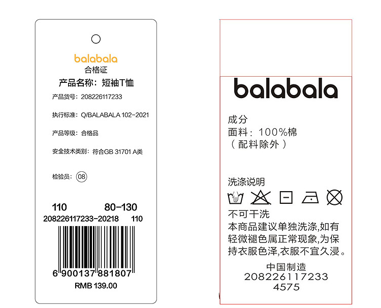 【balaOne】巴拉巴拉童装儿童短袖t恤男女童2026新款夏装纯棉上衣