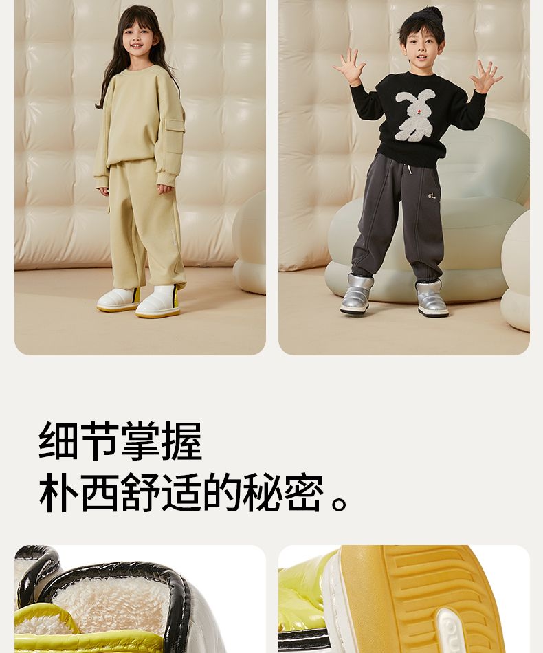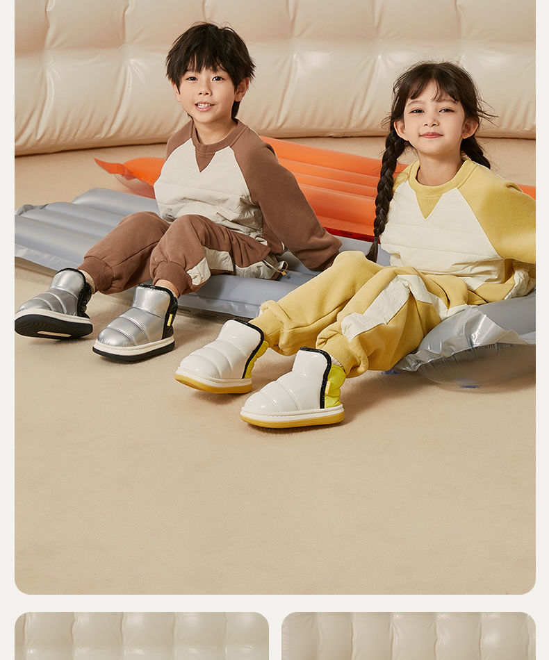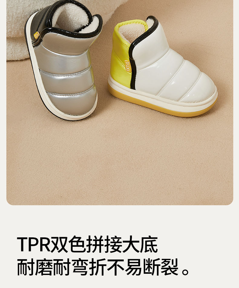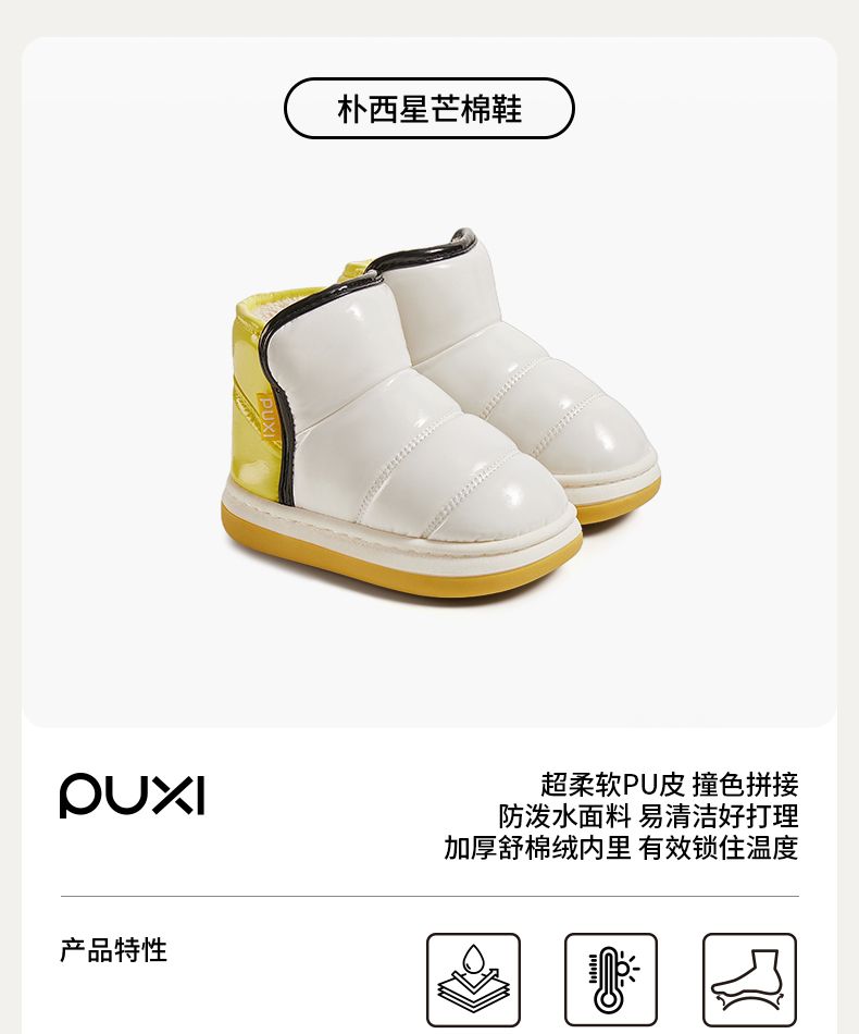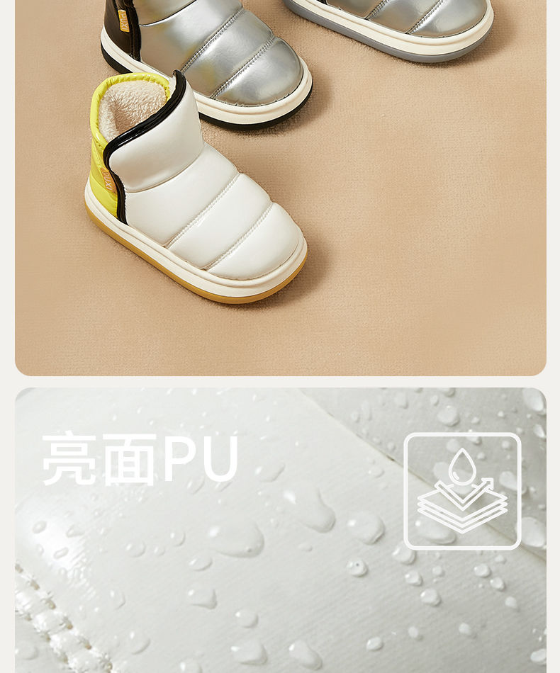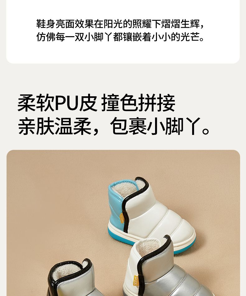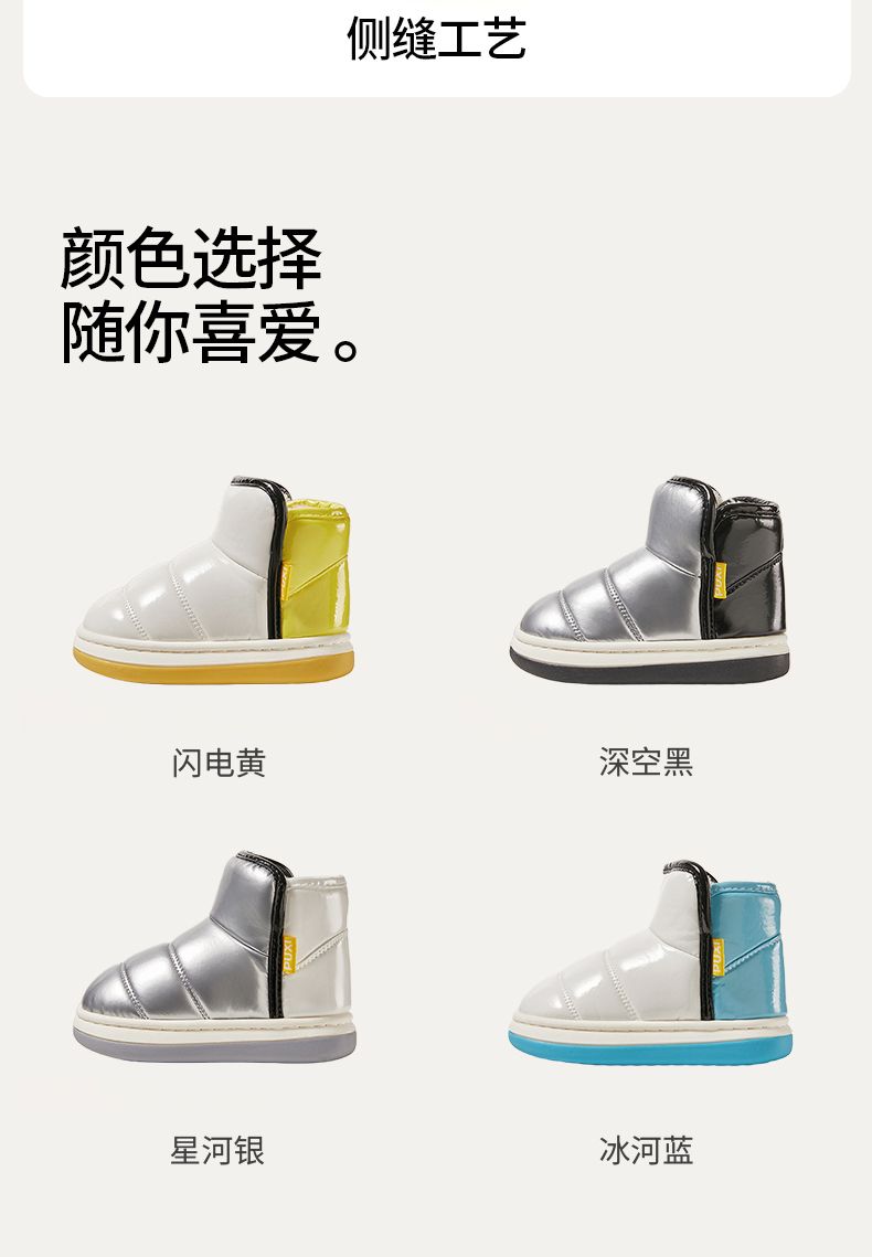 朴西星芒儿童棉鞋防水冬季加厚保暖亮面短靴室外男童女童软底靴子