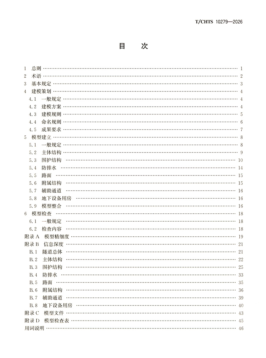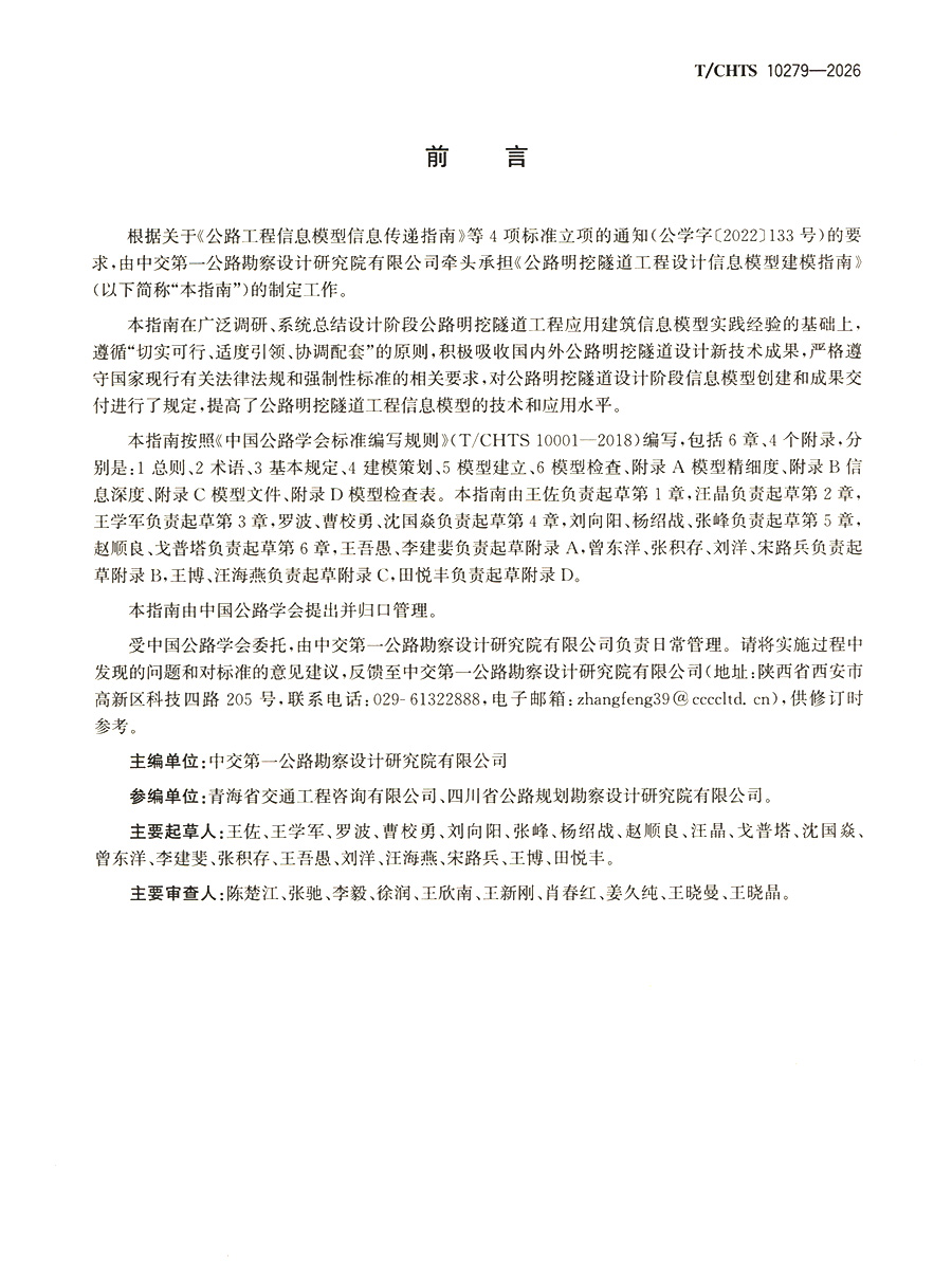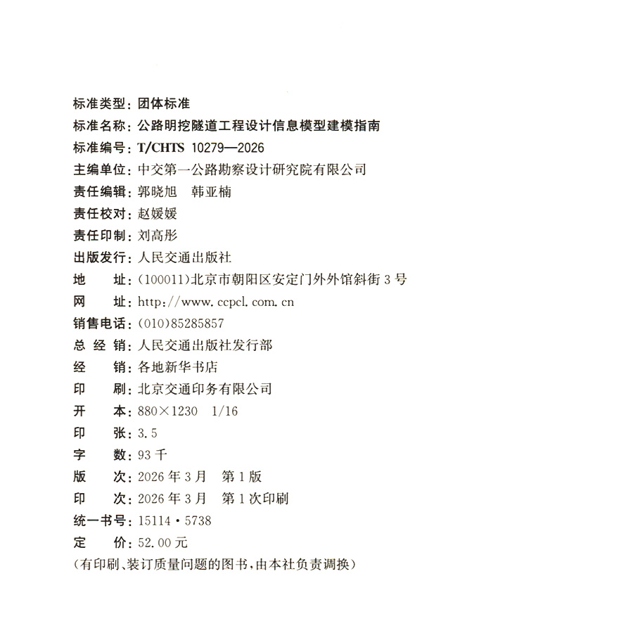 书名:公路明挖隧道工程设计信息模型建模指南(T/CHTS 10279—2026)