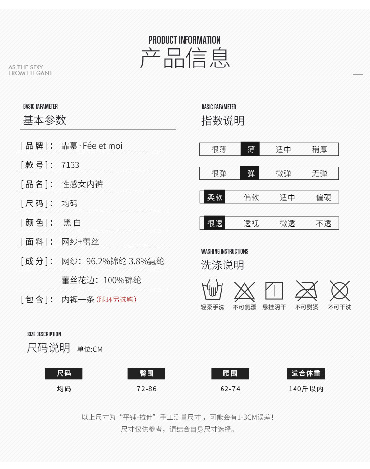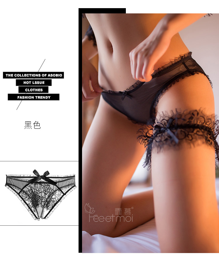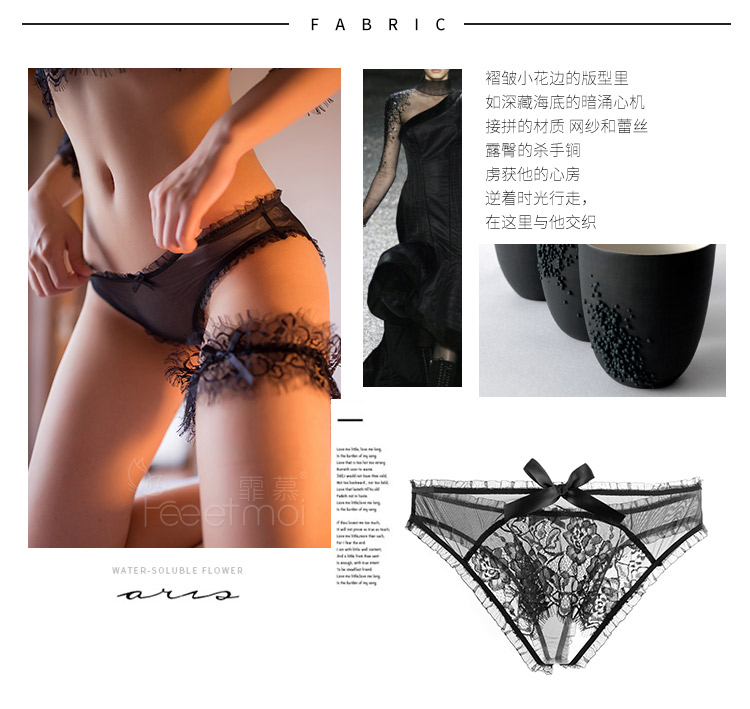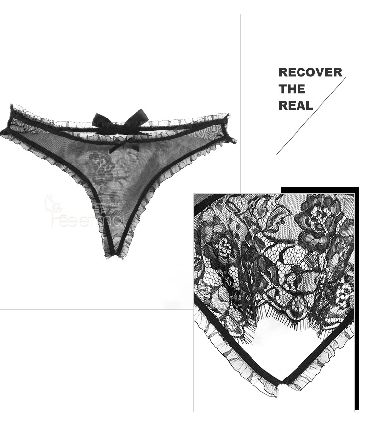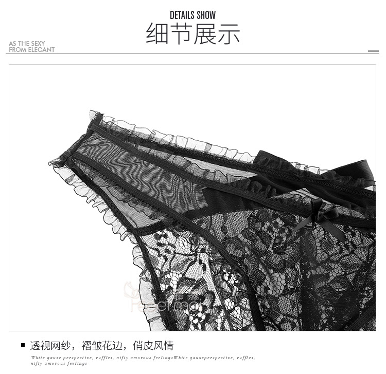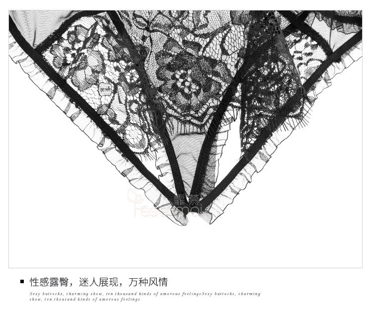 霏慕网纱蕾丝内裤7133 激情性感网纱露臀黑色网纱