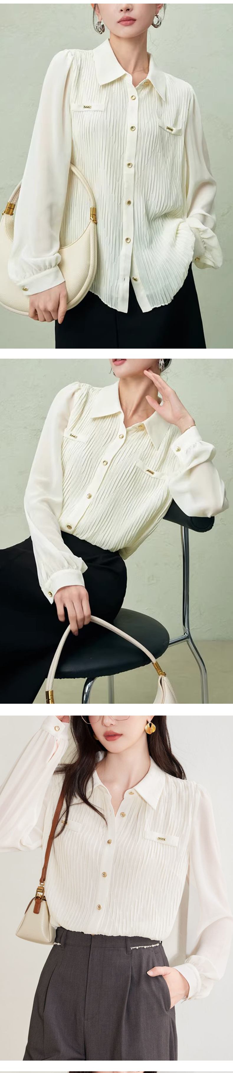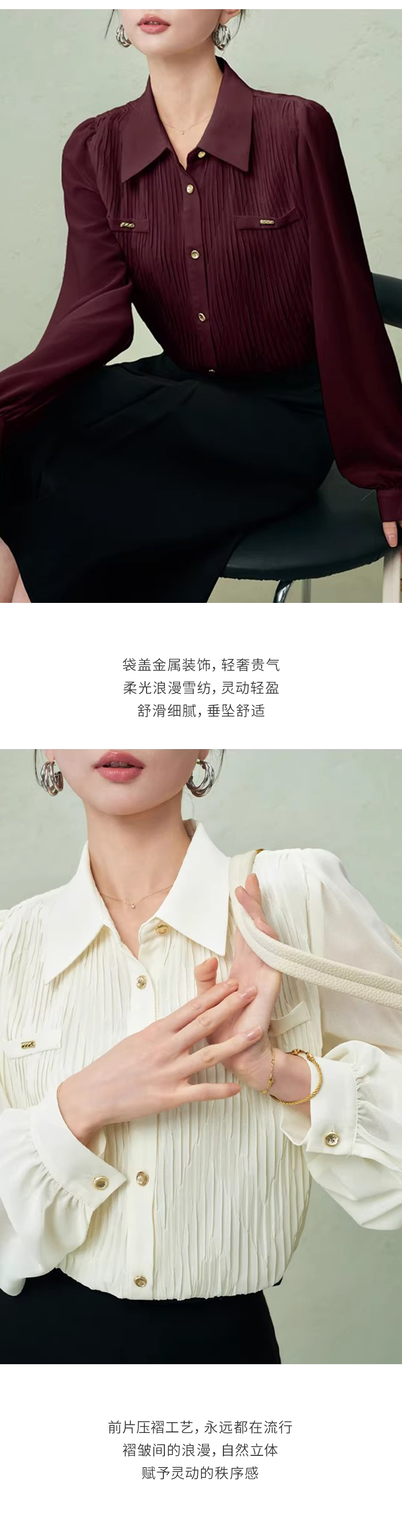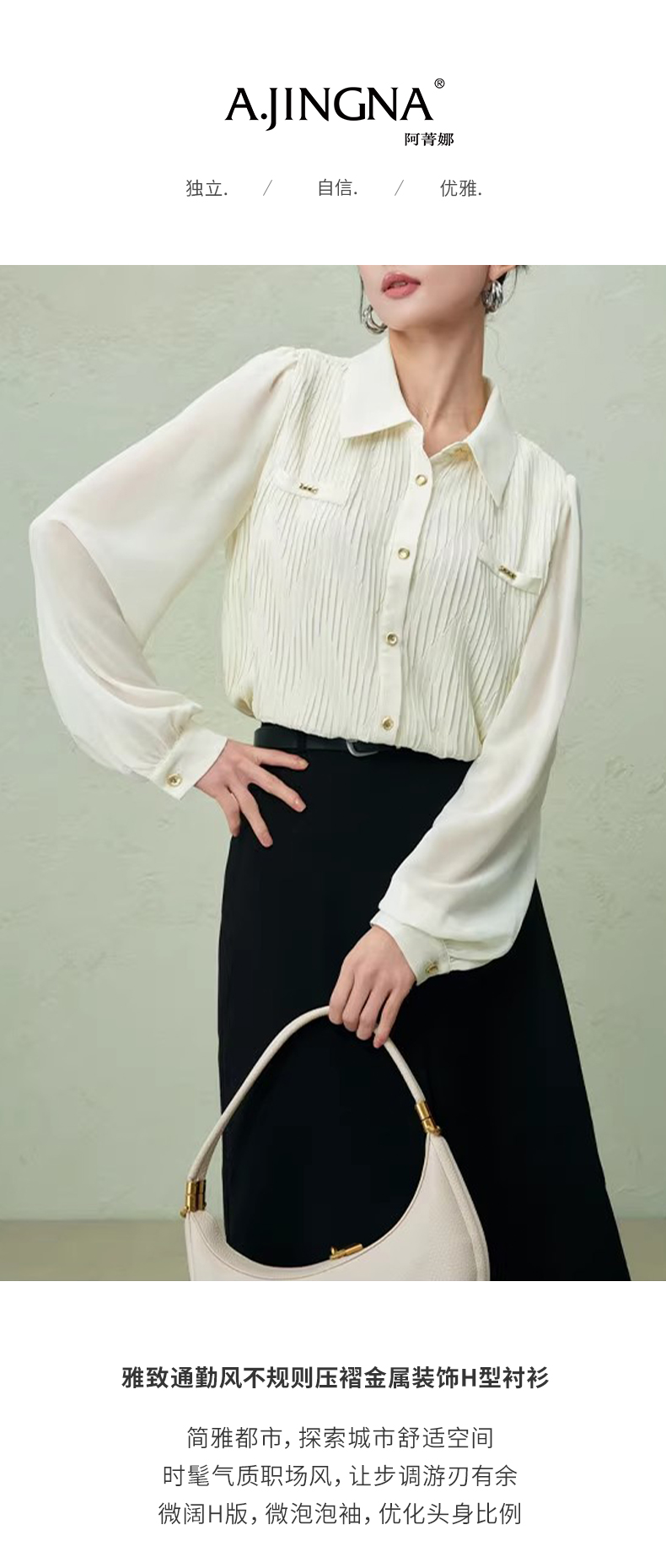 【雅致通勤风】阿菁娜不规则压褶金属装饰H型衬衫F30C202031