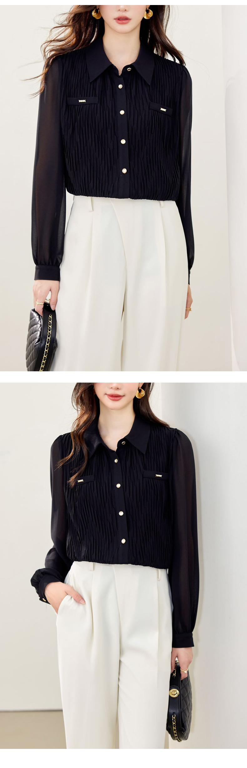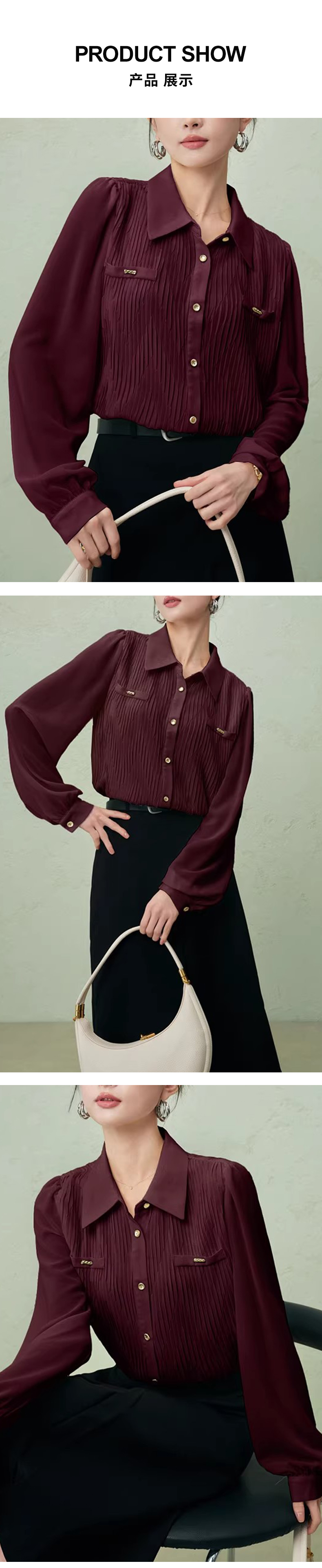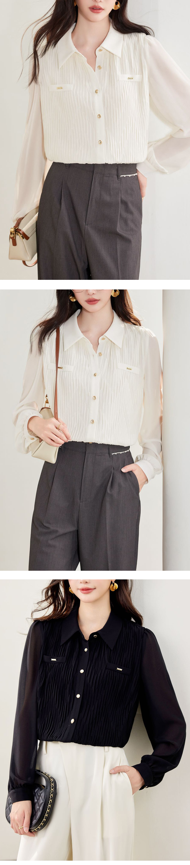 【雅致通勤风】阿菁娜不规则压褶金属装饰H型衬衫F30C202031