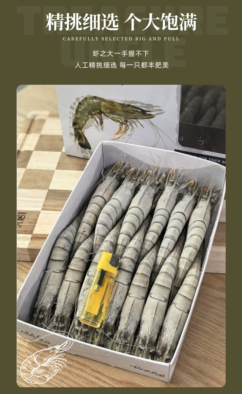 疯抢中!!【原装进口·生冻黑虎虾】肉质紧致丰腴 Q弹饱满 0脂肪高蛋白 500g/盒(12~14头)