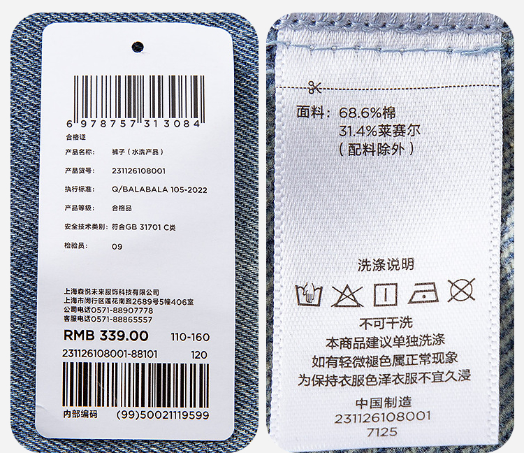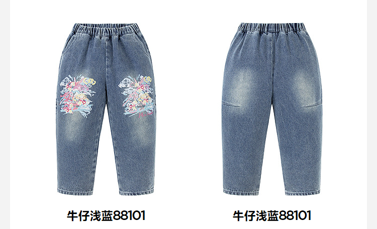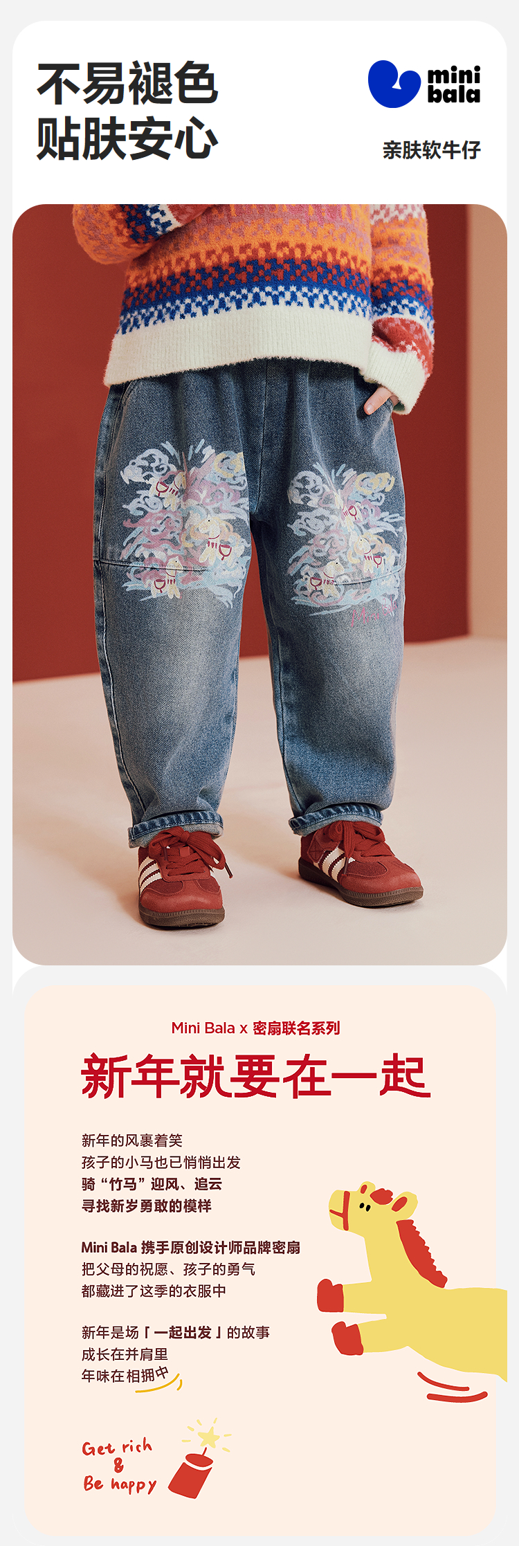 [密扇联名]迷你巴拉女童儿童软牛仔裤冬新年不易褪色长裤