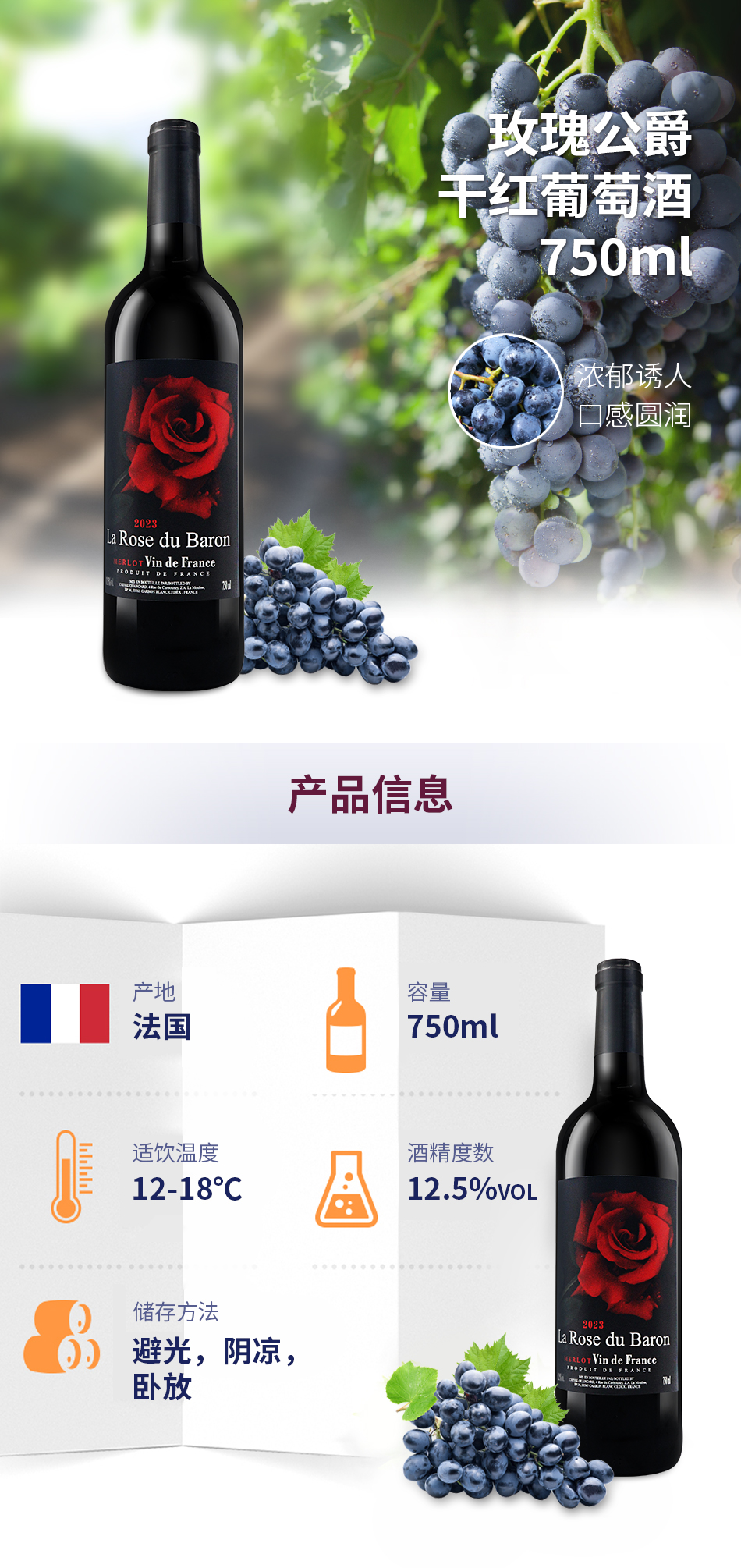 75CL玫瑰公爵干红葡萄酒(酒年份随机发货)